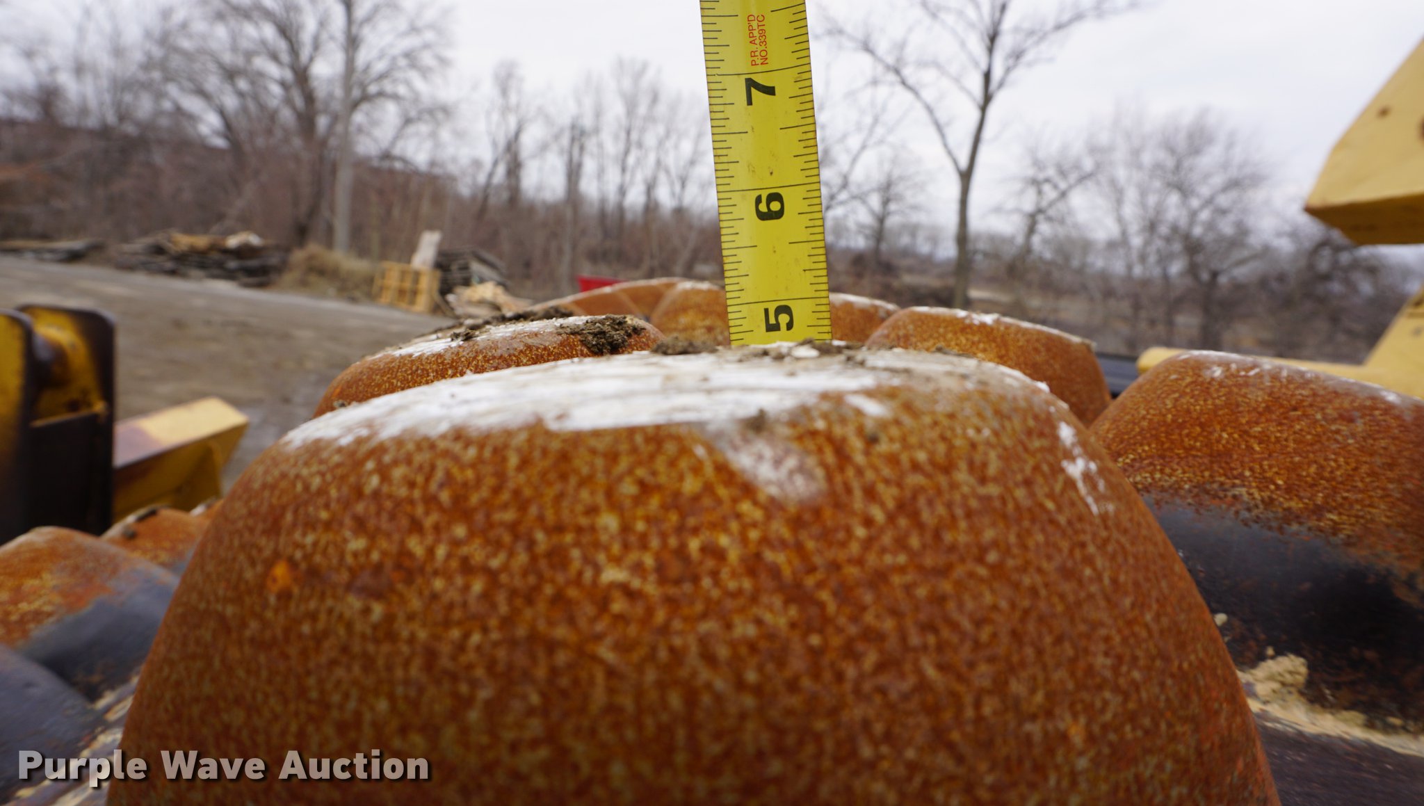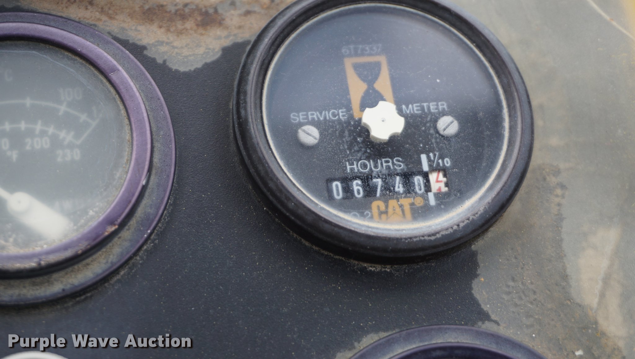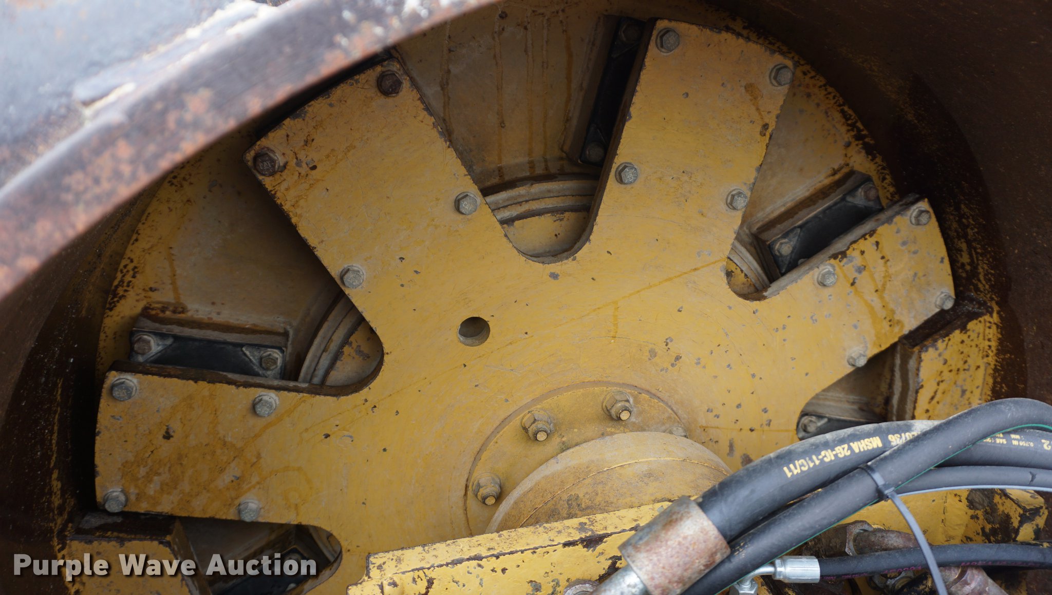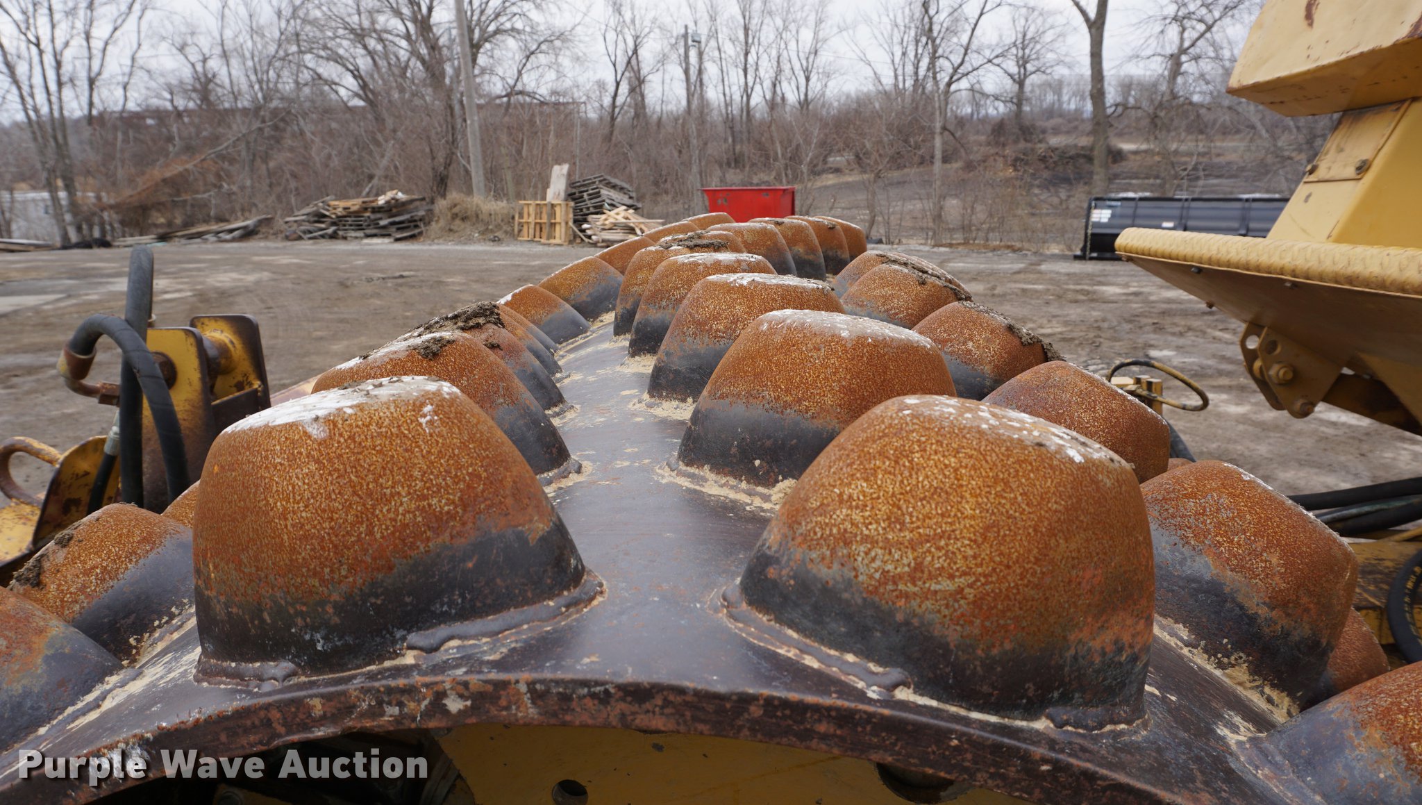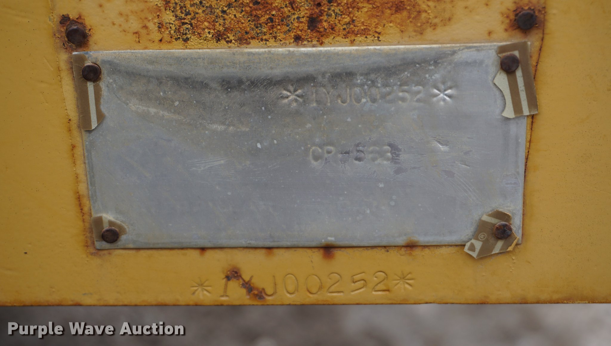 Purple Wave is selling a used Single Drum Roller Compactor in Kansas. This item is a 1992 Caterpillar CP-563 single drum vibratory roller with the following: 6,740 hours on meter, Caterpillar 3116 6.6L six cylinder turbo diesel engine, 145 HP, Hydrostatic transmission, Canopy, Suspension seat, Vandal cover, 7'W padfoot drum, Two speed vibratory system, Front drum scrapers, 9'W front blade, 231-26 tires, Serial 1YJ00252
