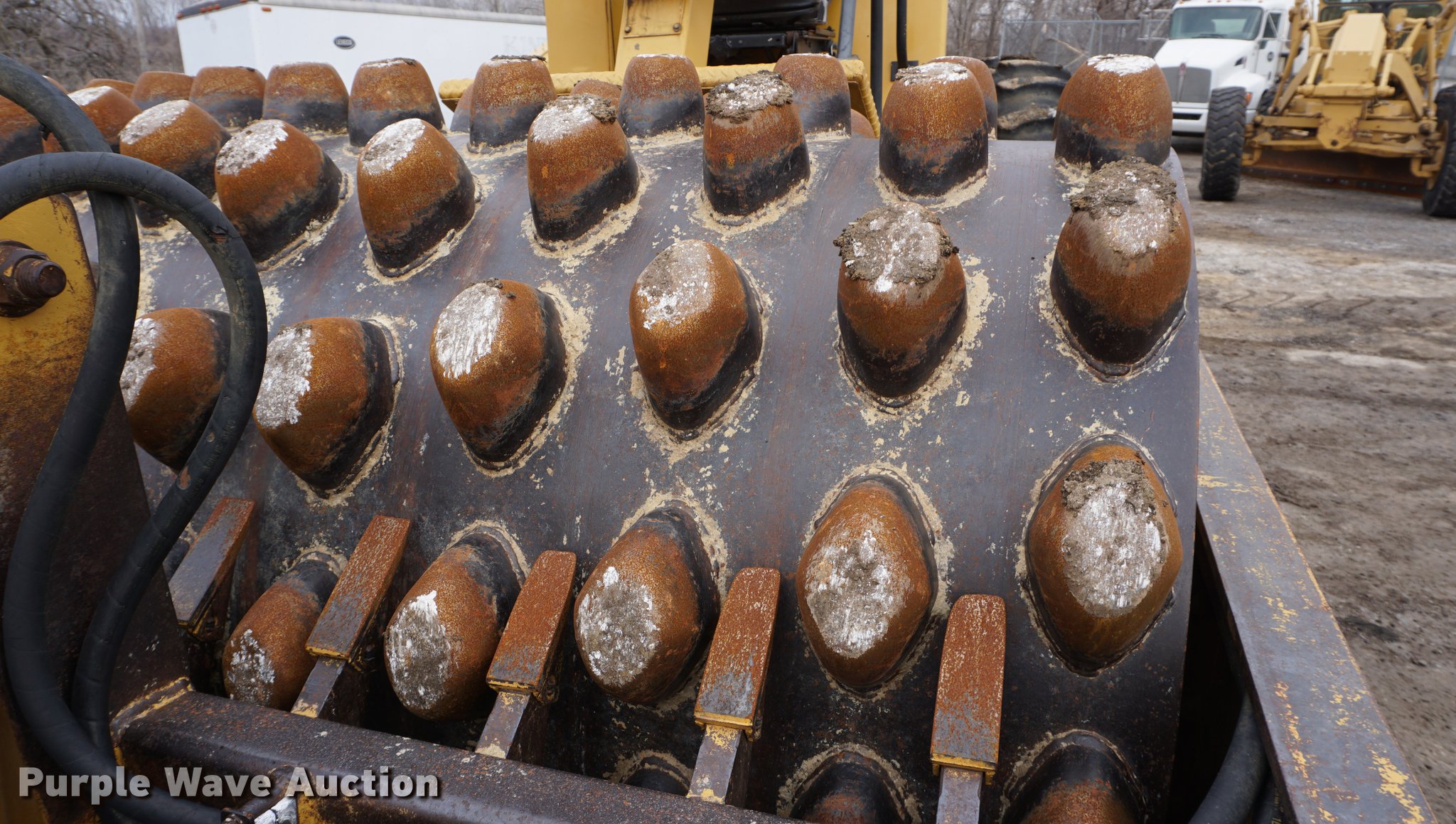 1992 Caterpillar CP-563 single drum vibratory roller. 6,740 hours on meter, Caterpillar 3116 6.6L six cylinder turbo diesel engine 145 HP, Hydrostatic transmission, Canopy, Suspension seat, Vandal cover, 7'W padfoot drum Two speed vibratory system, Front drum scrapers, 9'W front blade, 231-26 tires, Serial 1YJ00252. Lexeco Inc.. 1801 S 2nd St. Leavenworth, KS 66048