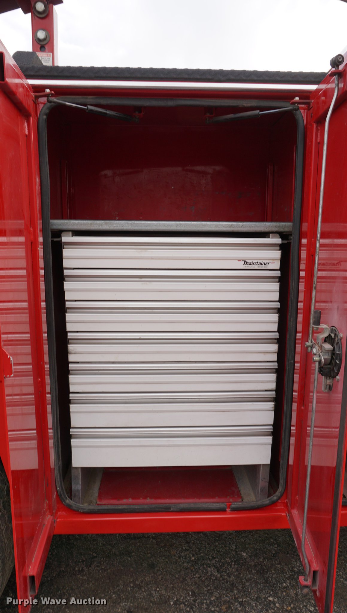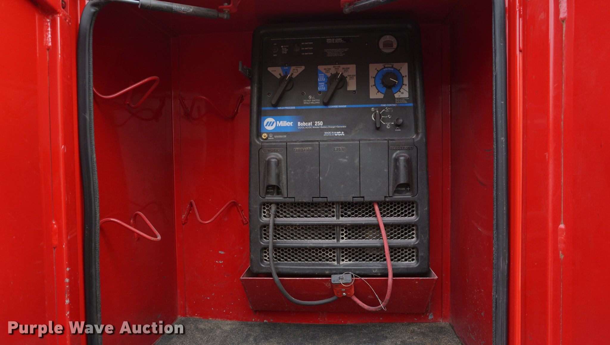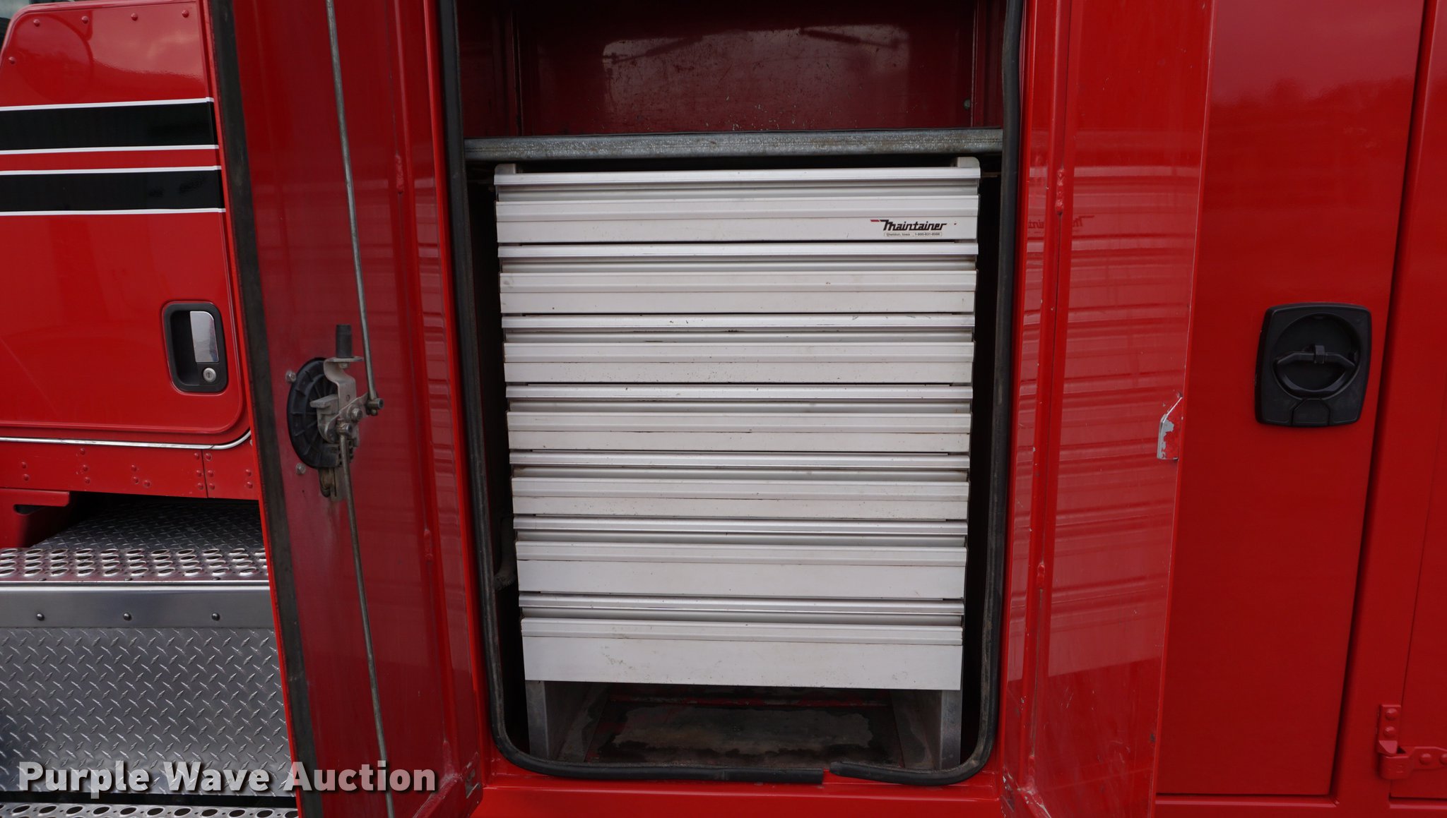 Purple Wave is selling a used Service Truck in Kansas. This item is a 2006 Kenworth T300 service truck with crane with the following: 412,486 miles on odometer, Caterpillar C7 7.2L L6 turbo diesel engine, 250 HP, Serial SAP95118, Automatic transmission, Single axle, AC and heat, Cruise, AM/FM, Heated mirrors, Air suspension seat, Beacon light, PTO, Maintainer service bed, 16.5'L, 14.5'L box, 2' rear platform, Shelving, Slideout drawers, Work lights, Mounded vise, Maintainer 10000 Series crane, 26' boom length, 10,000 lbs maximum lift capacity, Remote control, (2) outriggers, Miller Bobcat 250 welder/generator, 419 hours on meter, Gas engine, (4) 120V outlets, 240V outlet, CV, AC/DC capable, 10,000 watt generator, Air compressor, Hose reel, Single exhaust stack, Single fuel tank, 4:78 gear ratio, Air suspension, Air brakes, Engine brake, 11R22.5 tires, GVWR 33,000 lbs
