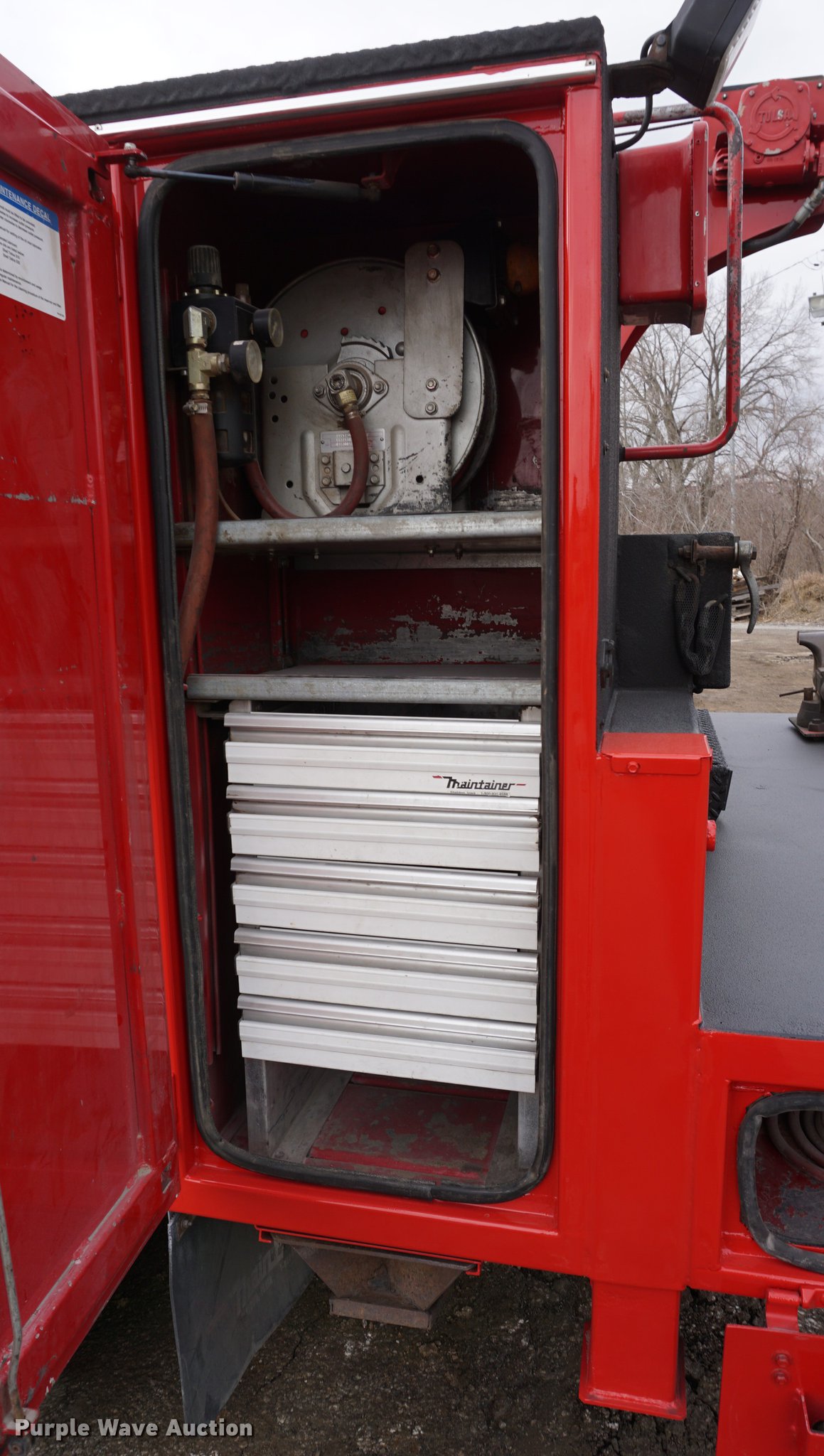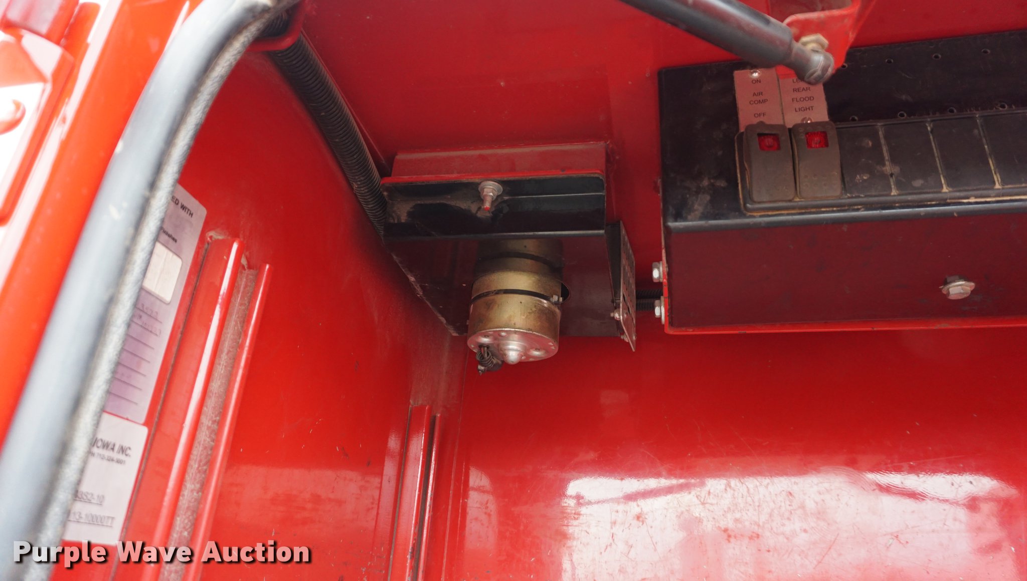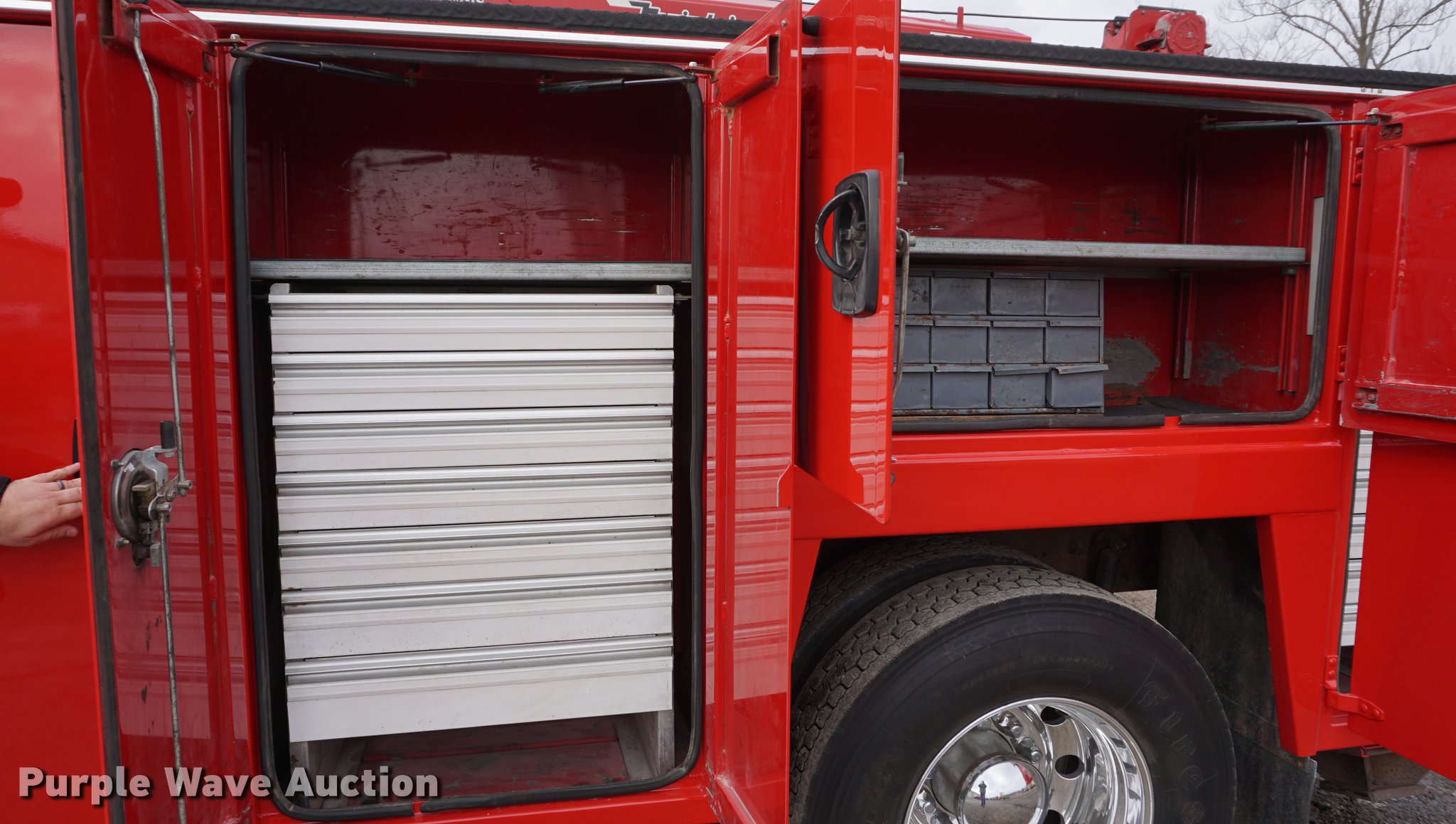 Purple Wave is selling a used Service Truck in Kansas. This item is a 2006 Kenworth T300 service truck with crane with the following: 412,486 miles on odometer, Caterpillar C7 7.2L L6 turbo diesel engine, 250 HP, Serial SAP95118, Automatic transmission, Single axle, AC and heat, Cruise, AM/FM, Heated mirrors, Air suspension seat, Beacon light, PTO, Maintainer service bed, 16.5'L, 14.5'L box, 2' rear platform, Shelving, Slideout drawers, Work lights, Mounded vise, Maintainer 10000 Series crane, 26' boom length, 10,000 lbs maximum lift capacity, Remote control, (2) outriggers, Miller Bobcat 250 welder/generator, 419 hours on meter, Gas engine, (4) 120V outlets, 240V outlet, CV, AC/DC capable, 10,000 watt generator, Air compressor, Hose reel, Single exhaust stack, Single fuel tank, 4:78 gear ratio, Air suspension, Air brakes, Engine brake, 11R22.5 tires, GVWR 33,000 lbs