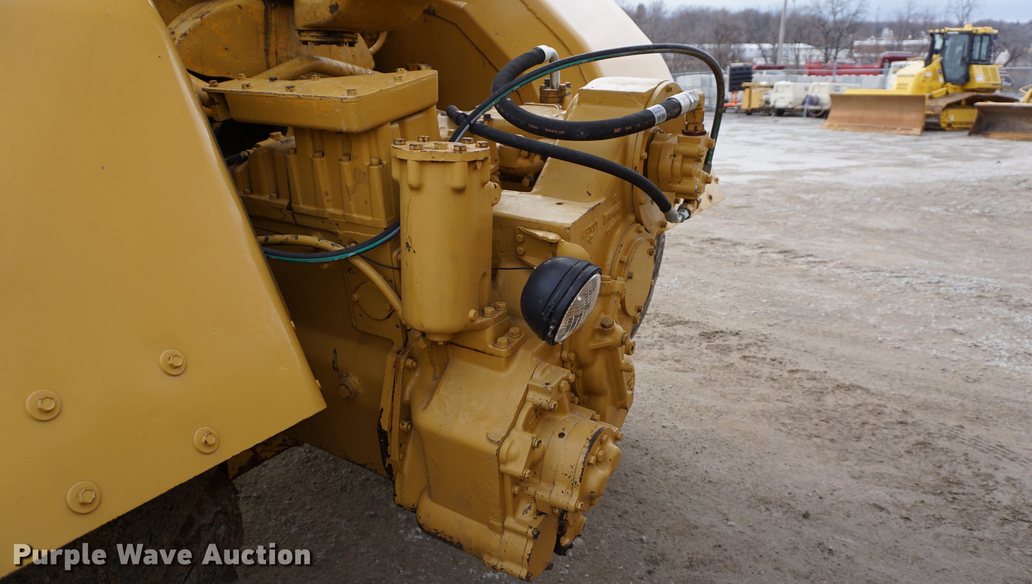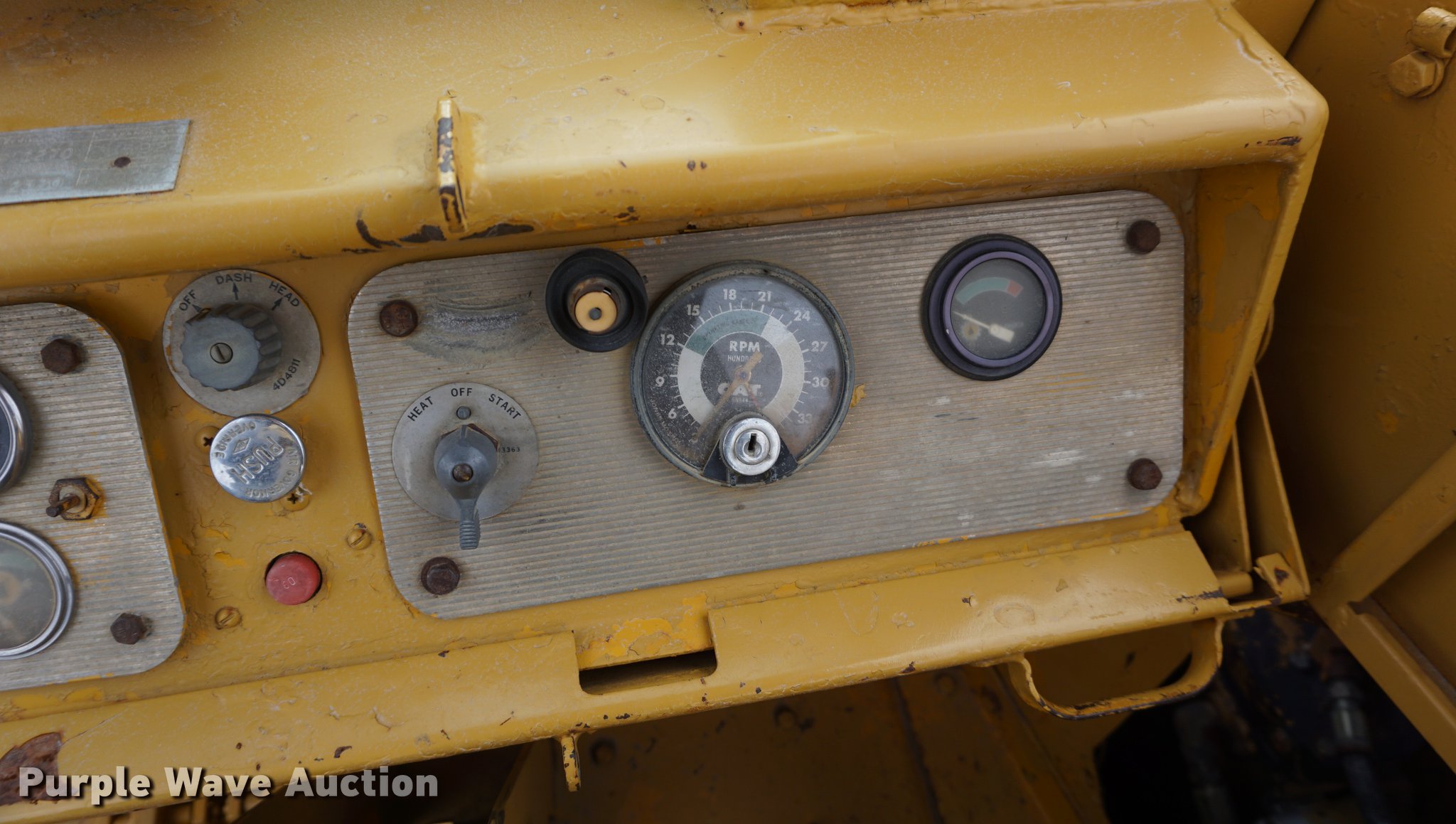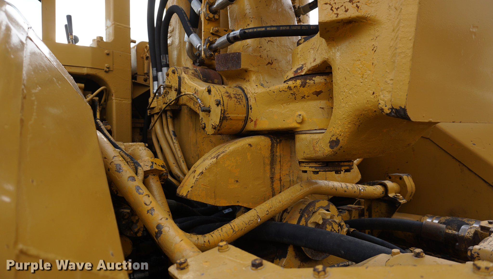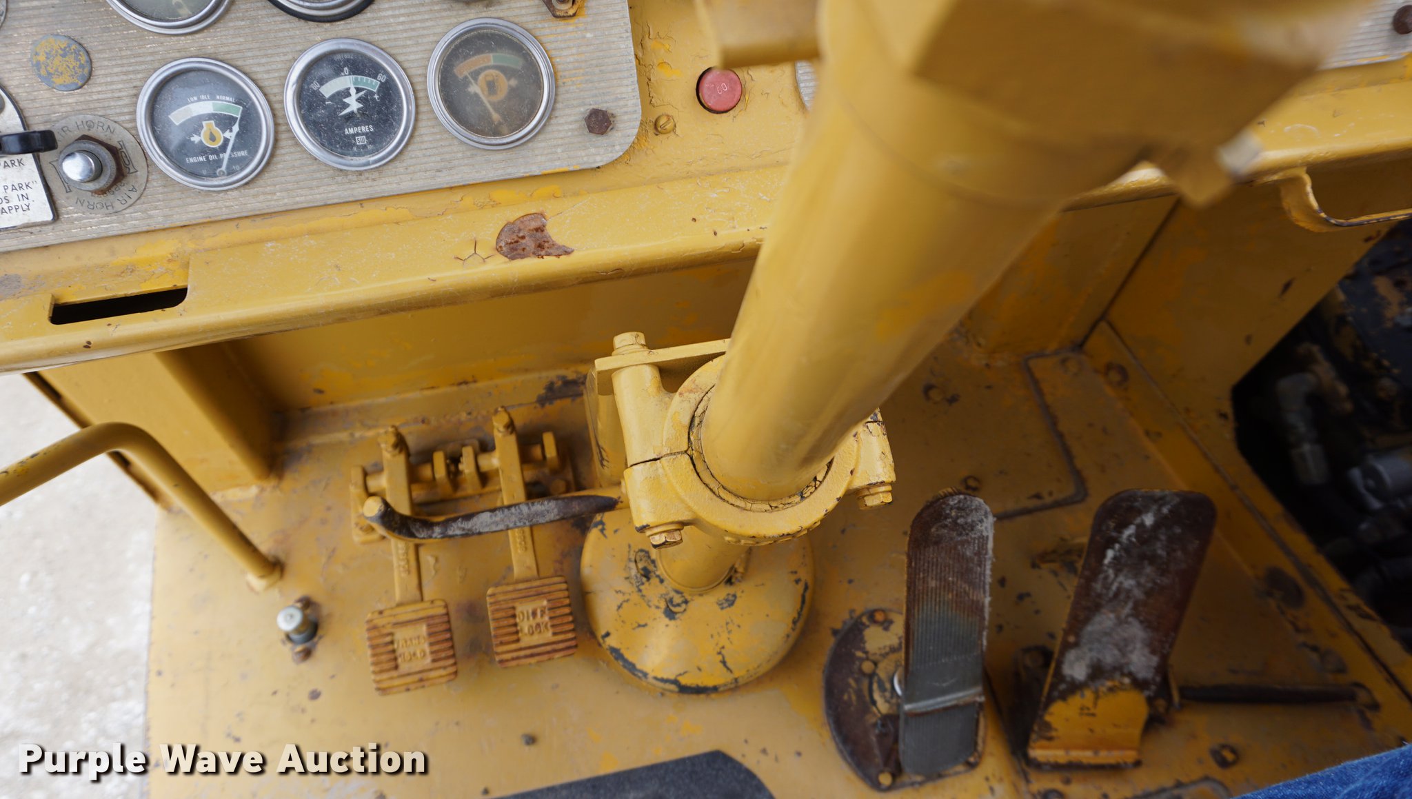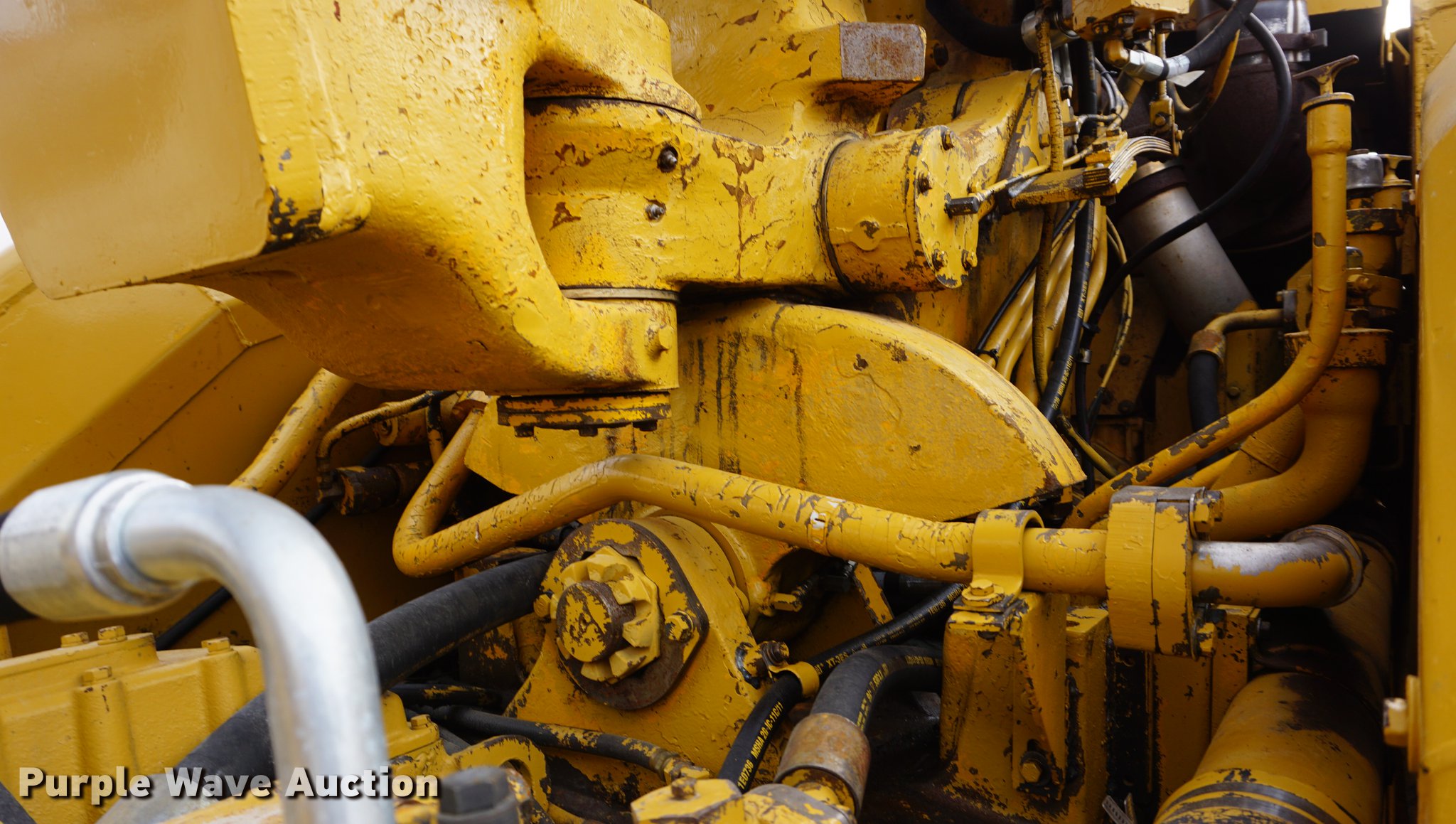 Purple Wave is selling a used Conventional Scraper in Kansas. This item is a 1976 Caterpillar 621B conventional scraper with the following: 3,869 hours on meter, Caterpillar 3406 14.6L six cylinder turbo diesel engine, 330 HP, Serial 70V2520, Powershift transmission, 8F-1R gears, OROPS, Suspension seat, Backup alarm, 20 cu.yd. capacity, Hydraulic lift, Cushion hitch, Three lever controls, Rear push block, Air brakes, Front work lights, 33.25-29 E-3 front tires, 29.5-29 E-3 rear tires, Serial 45P1270
