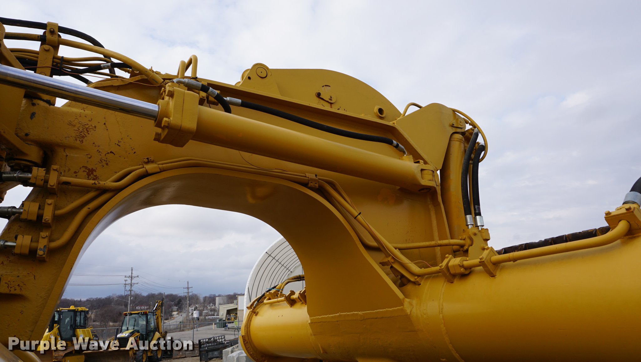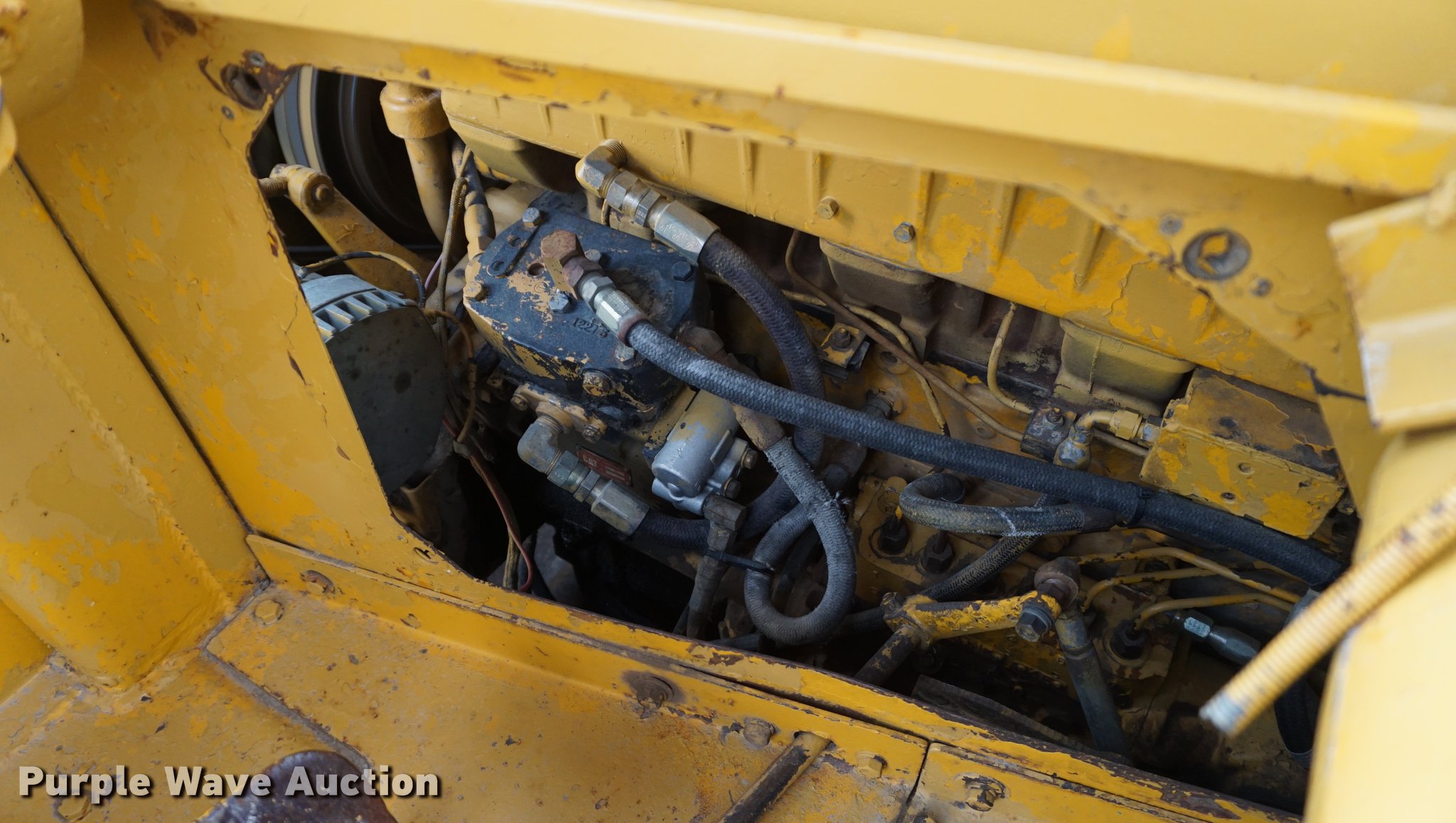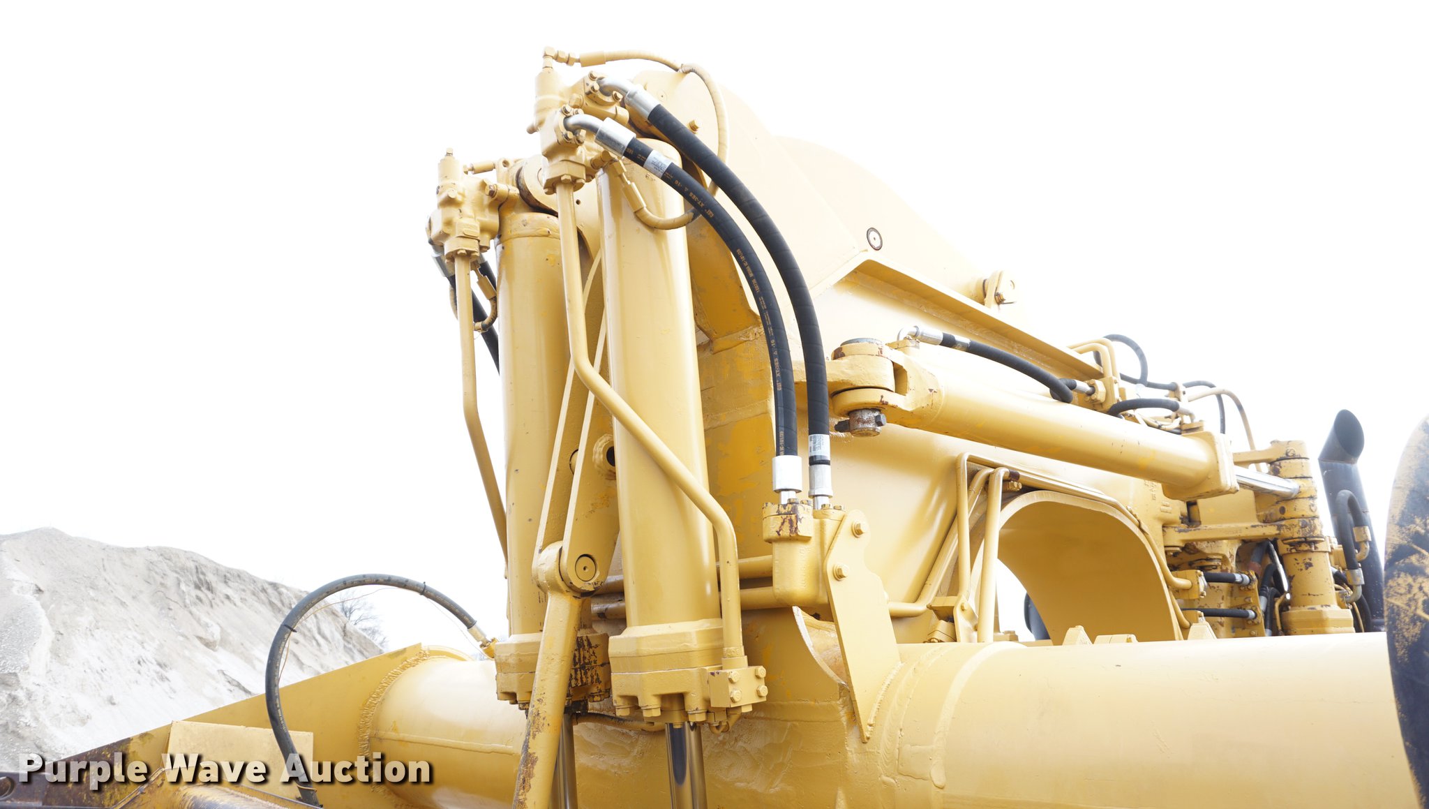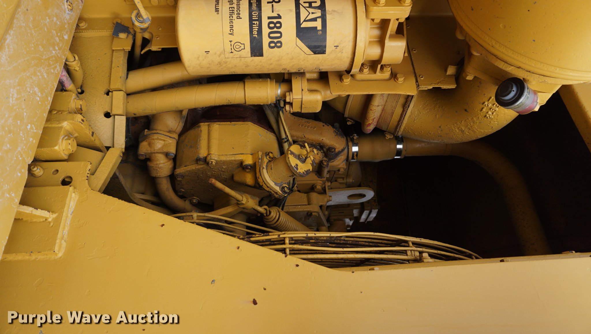 Purple Wave is selling a used Conventional Scraper in Kansas. This item is a 1976 Caterpillar 621B conventional scraper with the following: 3,869 hours on meter, Caterpillar 3406 14.6L six cylinder turbo diesel engine, 330 HP, Serial 70V2520, Powershift transmission, 8F-1R gears, OROPS, Suspension seat, Backup alarm, 20 cu.yd. capacity, Hydraulic lift, Cushion hitch, Three lever controls, Rear push block, Air brakes, Front work lights, 33.25-29 E-3 front tires, 29.5-29 E-3 rear tires, Serial 45P1270