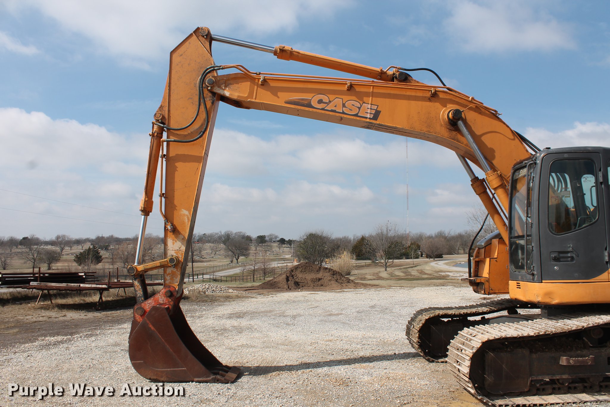 Purple Wave is selling a used Hydraulic Excavator in Oklahoma. This item is a 2005 Case CX225SR excavator with the following: 5,817 hours on meter, Isuzu BB-6BG1 6.5L six cylinder turbo diesel engine, 140 HP, Serial 6BG1-205283, Two speed hydrostatic transmission, Enclosed cab, AC and heat, AM/FM, Suspension seat, Wipers, Standard boom, 9'10" stick length, Auxiliary hydraulics, 32"W bucket, Weld-on cutting edge, (4) bolt-on teeth, Eight bottom rollers, 31.5"W steel triple grouser track pads, Serial DAC251277