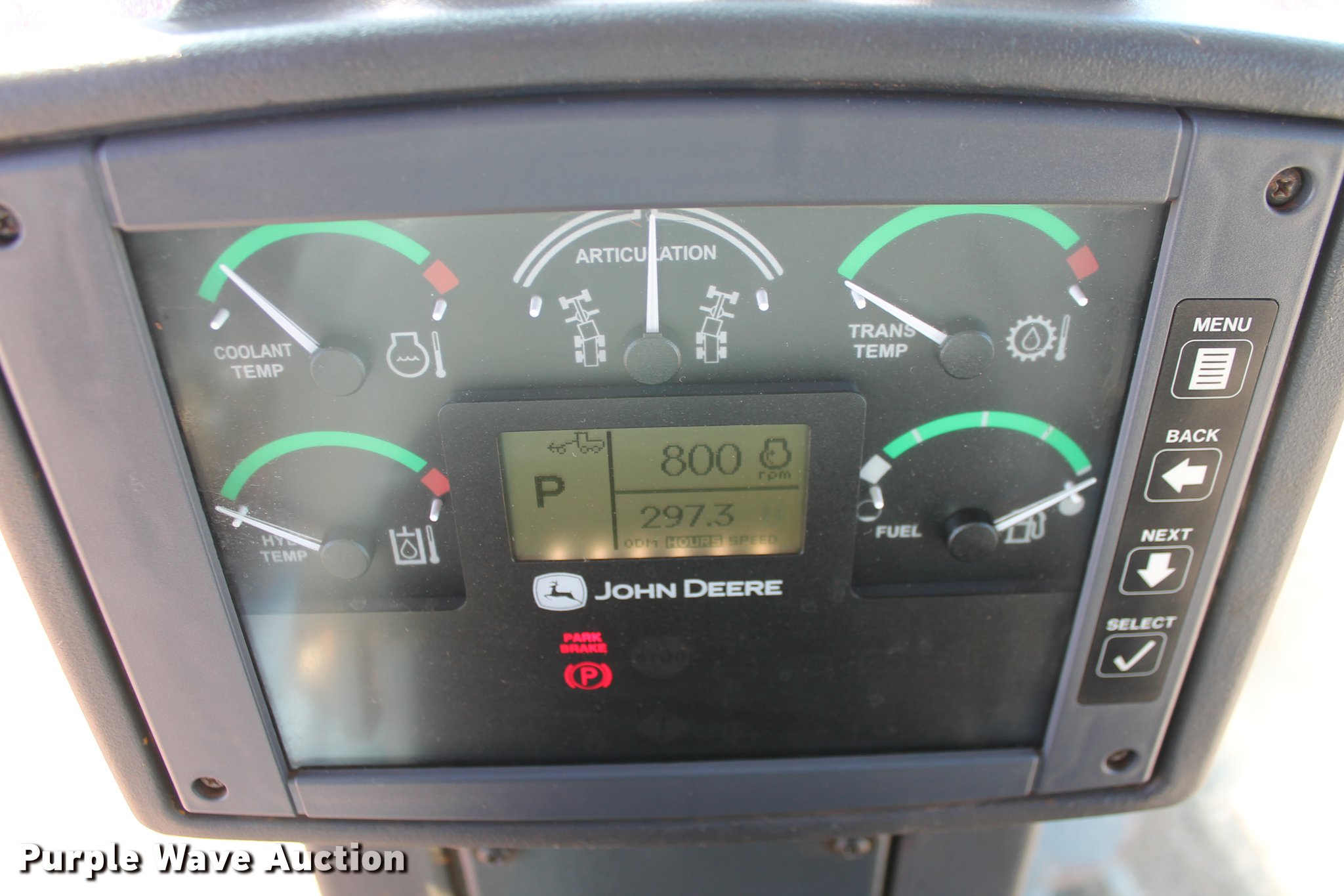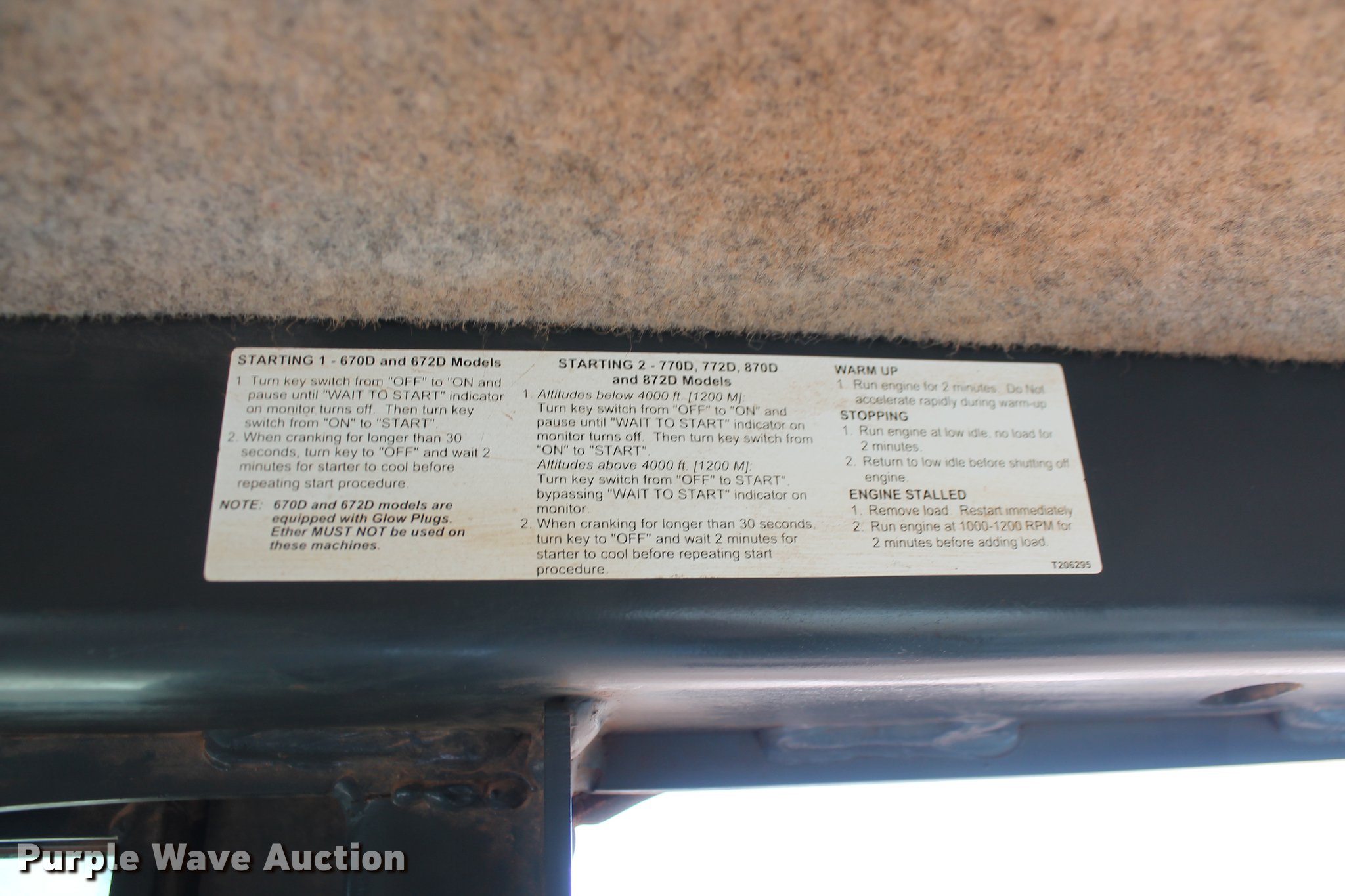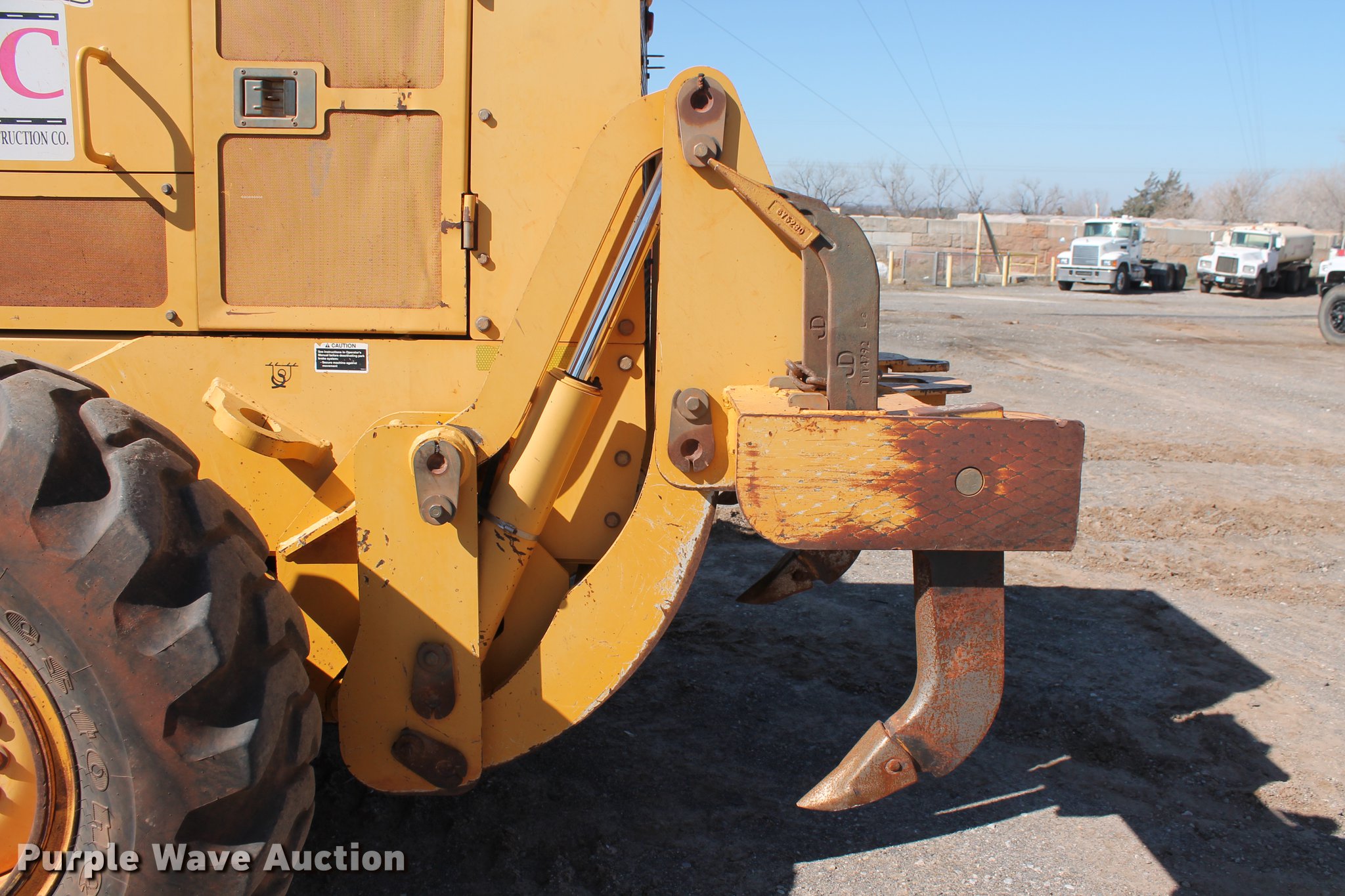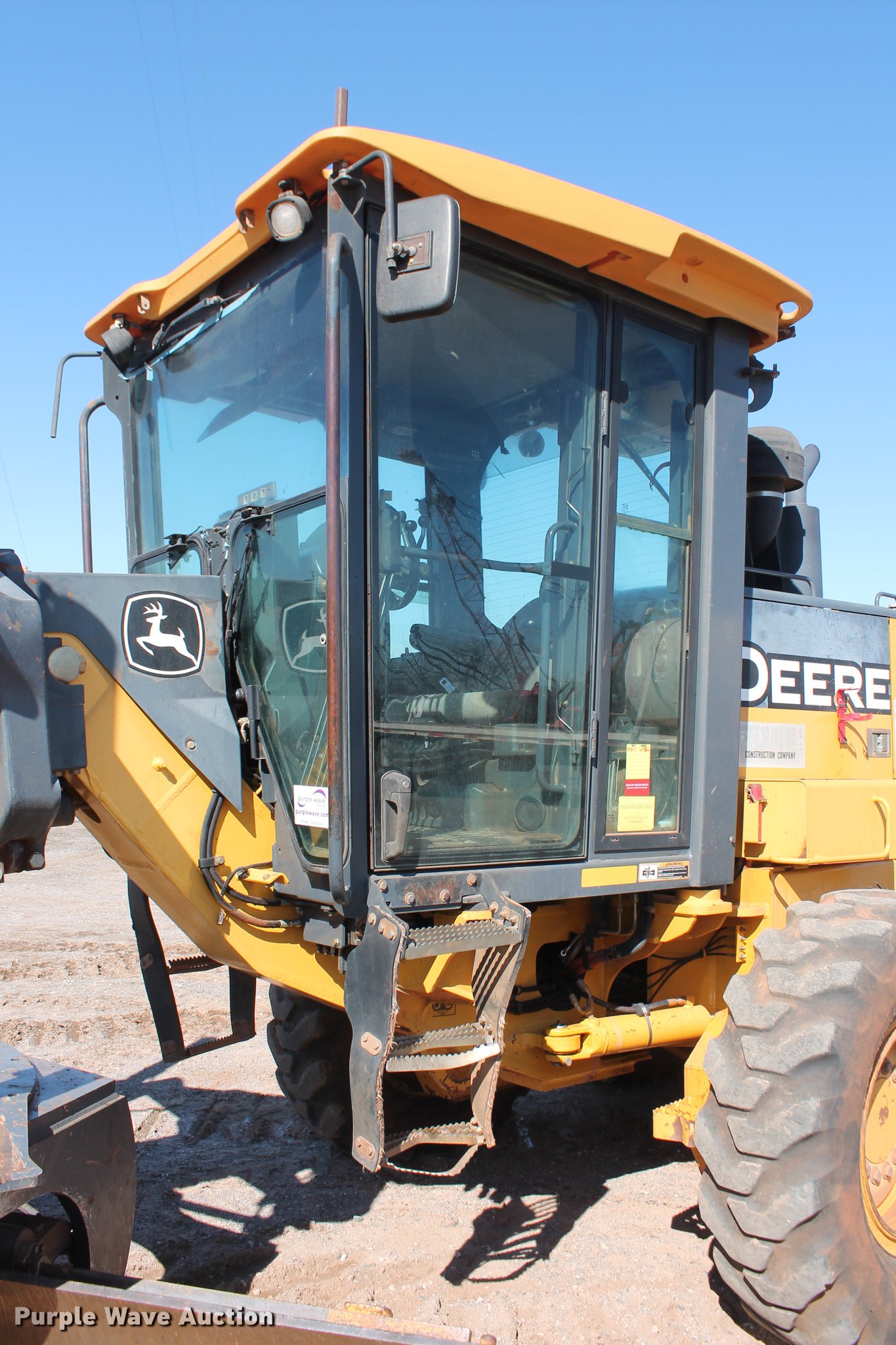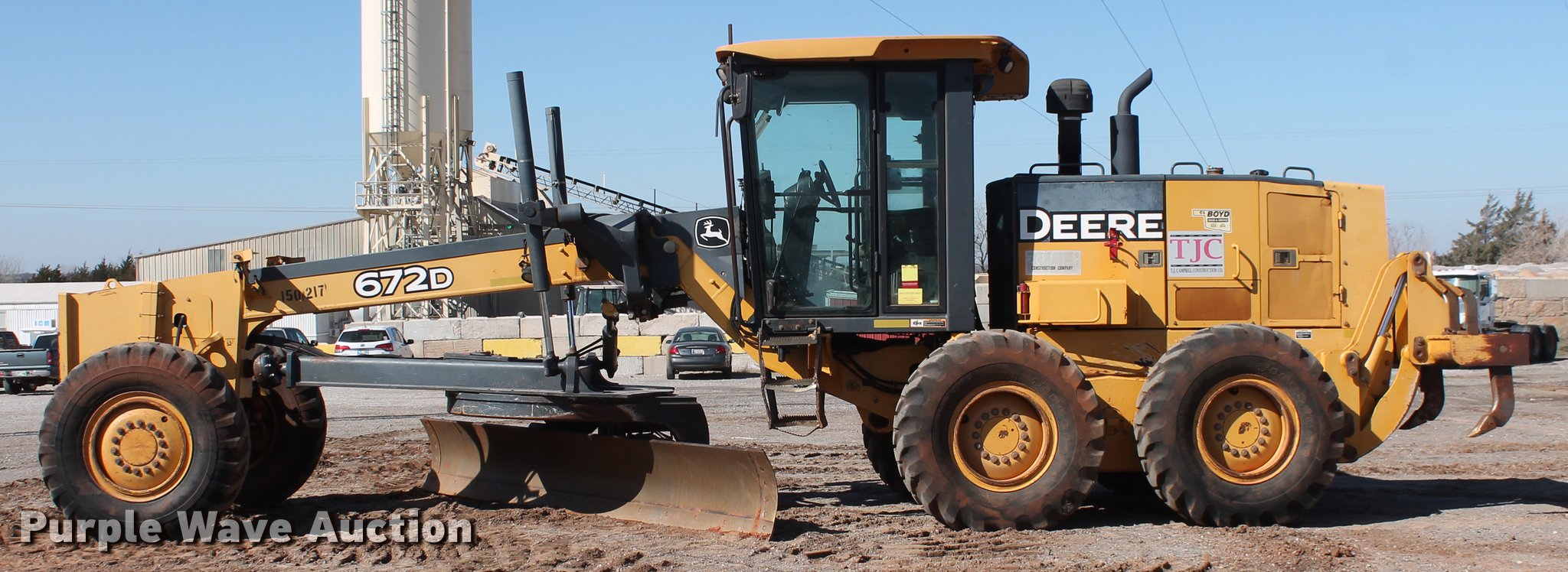 Purple Wave is selling a used Motor Grader in Oklahoma. This item is a 2005 John Deere 672D motor grader with the following: 297 hours on meter, 537 miles on odometer, John Deere 6068HDW61 six cylinder turbo diesel engine, Serial PE6068H415356, Powershift transmission, 8F-8R gears, All wheel drive, Differential lock, EROPS, AC and heat, AM/FM, Suspension seat, Nine control valves, Front and rear work lights, 14'W moldboard, Tip control, Side shift, Circle slip clutch, Front mounted push block, Rear ripper, (3) shanks, (5) teeth, (7) tooth capacity, 14.00-24 tires, Transmission weak in first and second gears, Serial DW672DX596130, Unit# 150.217