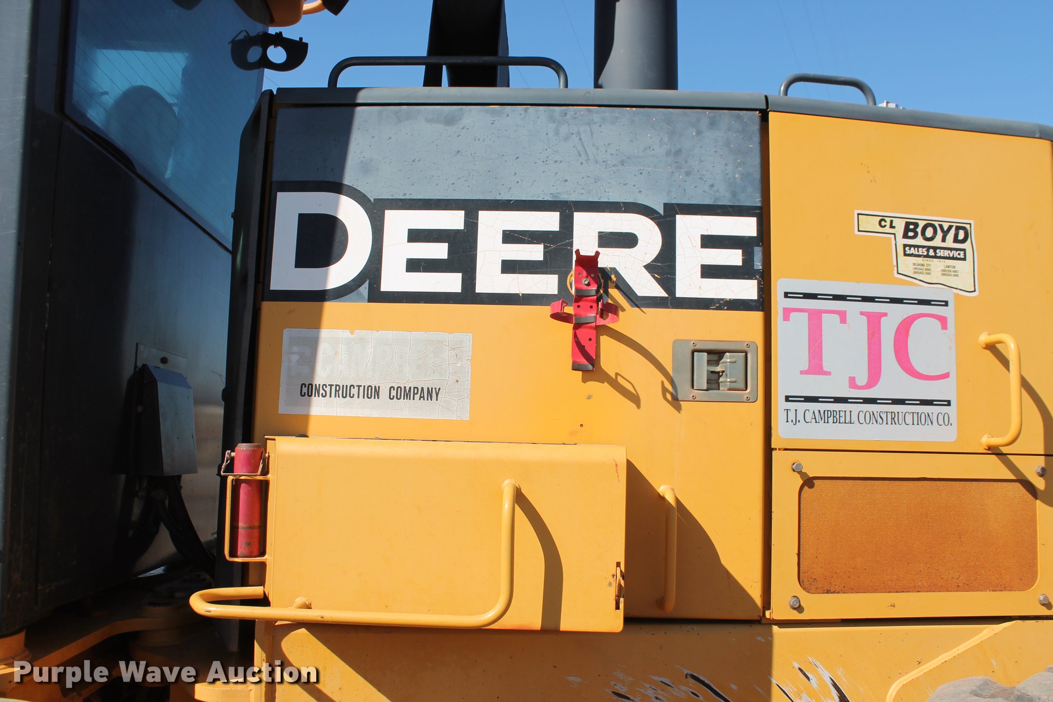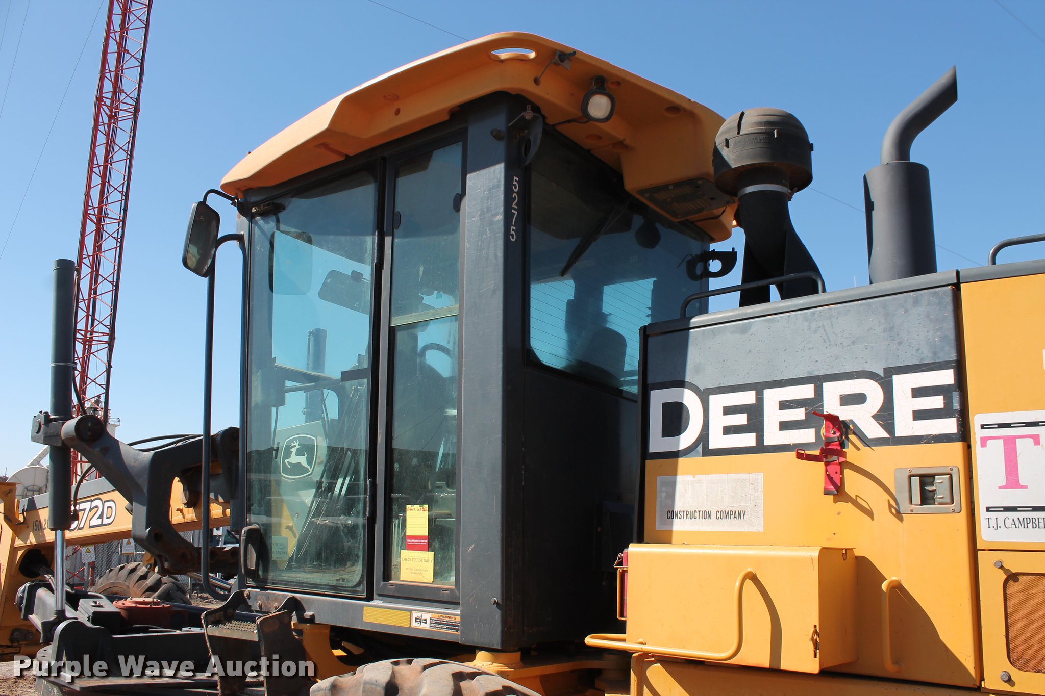 2005 John Deere 672D motor grader. 297 hours on meter, 537 miles on odometer, John Deere 6068HDW61 six cylinder turbo diesel engine Serial PE6068H415356, Powershift transmission 8F-8R gears, All wheel drive, Differential lock, EROPS, AC and heat, AM/FM, Suspension seat, Nine control valves, Front and rear work lights, 14'W moldboard Tip control, Side shift, Circle slip clutch, Front mounted push block, Rear ripper (3) shanks, (5) teeth, (7) tooth capacity, 14.00-24 tires, Transmission weak in first and second gears, Serial DW672DX596130, Unit# 150.217. Duit Holdings Inc.. 7183 E Waterloo Industrial Rd. Edmond, OK 73034