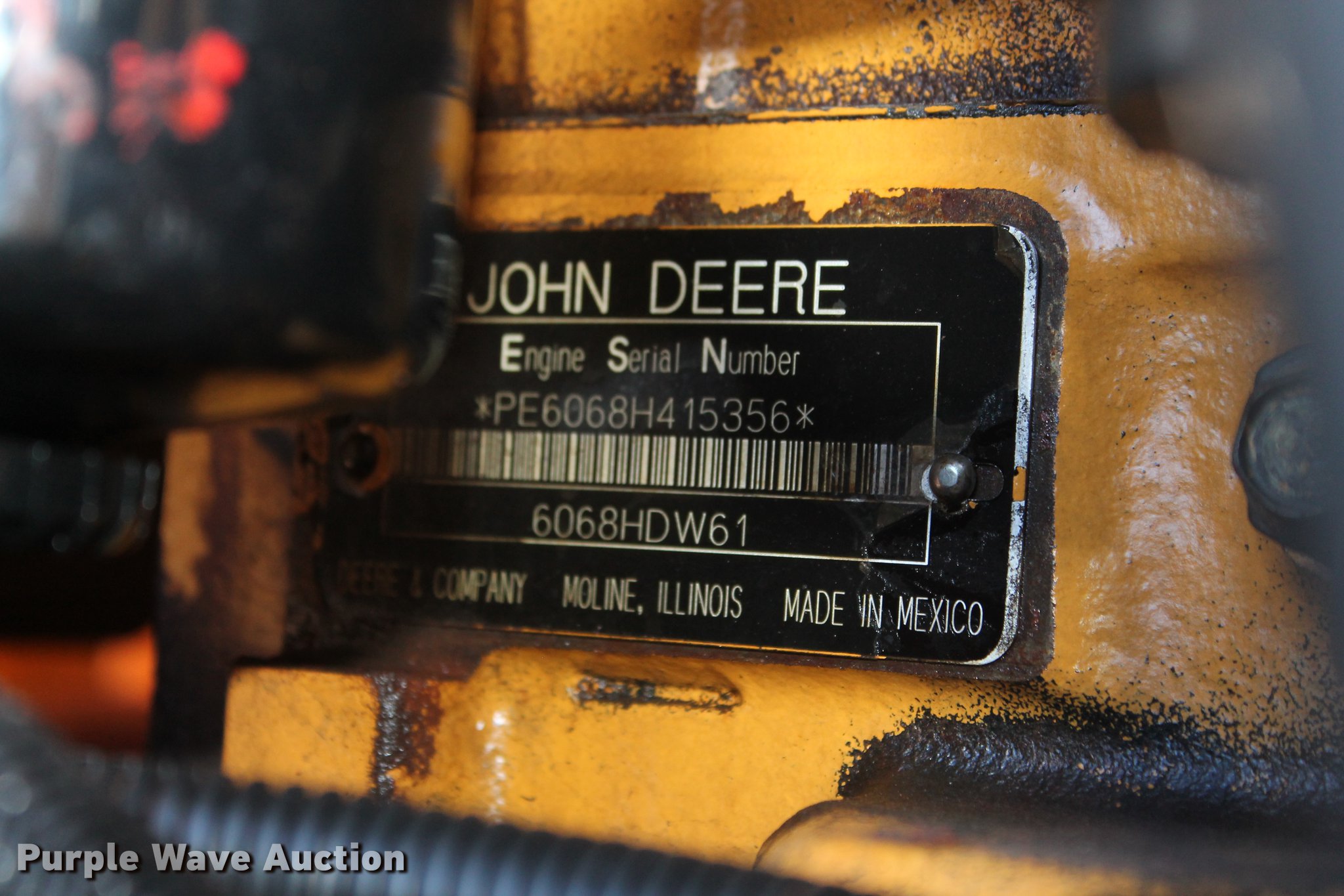 - John Deere 6068HDW61 six cylinder turbo diesel engine