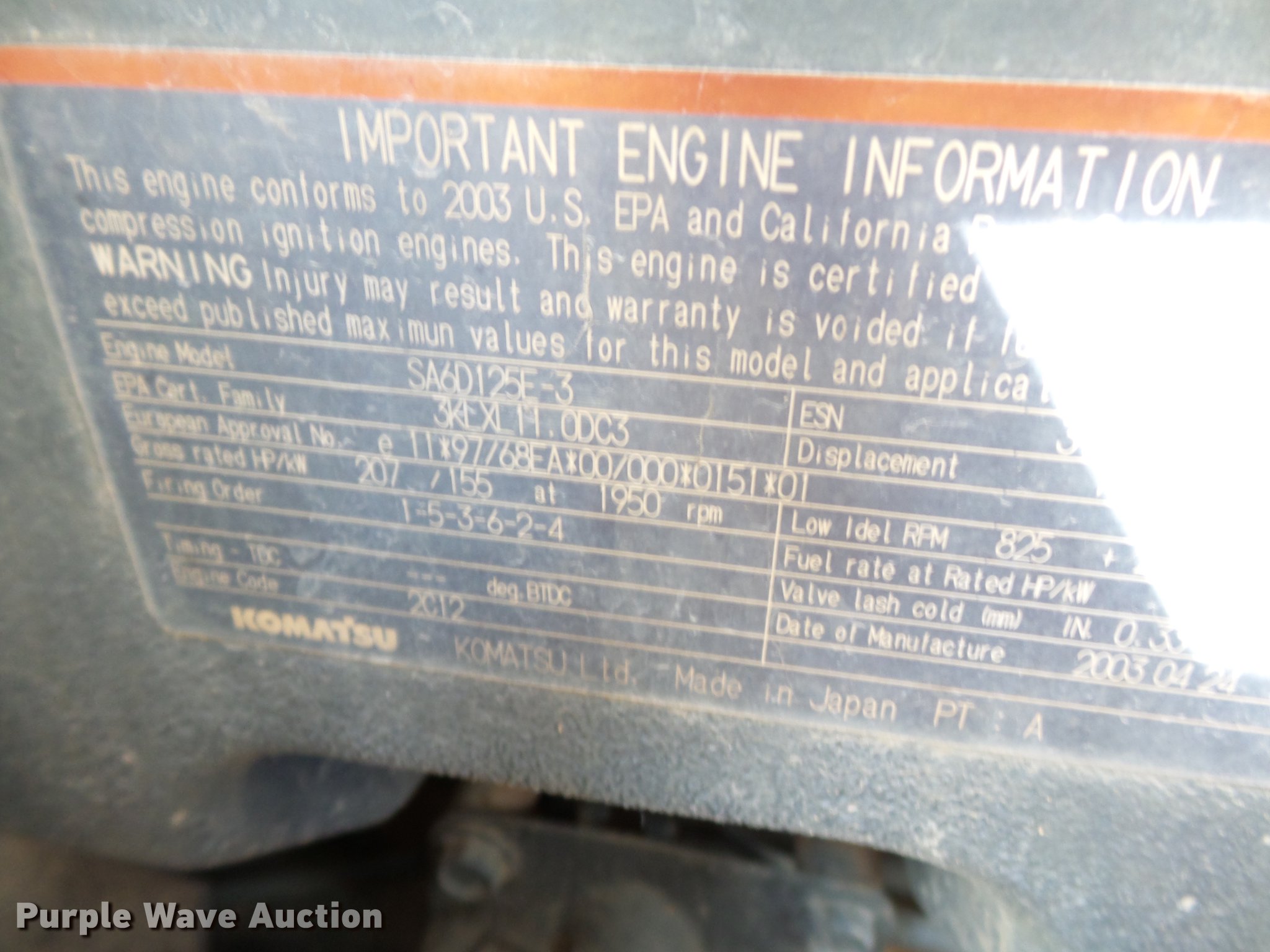- Komatsu SA6D125E3 11.045L six cylinder turbo diesel engine