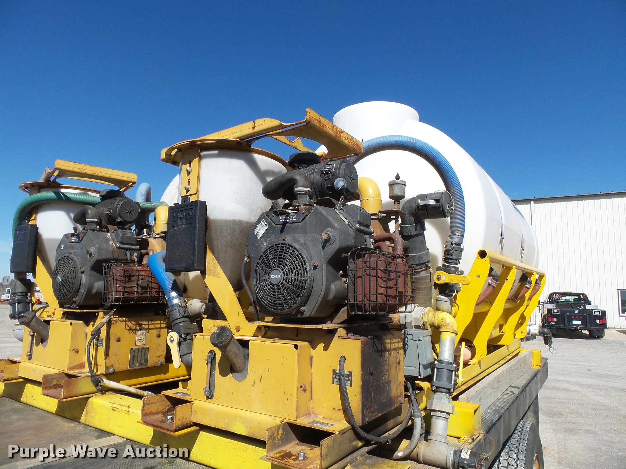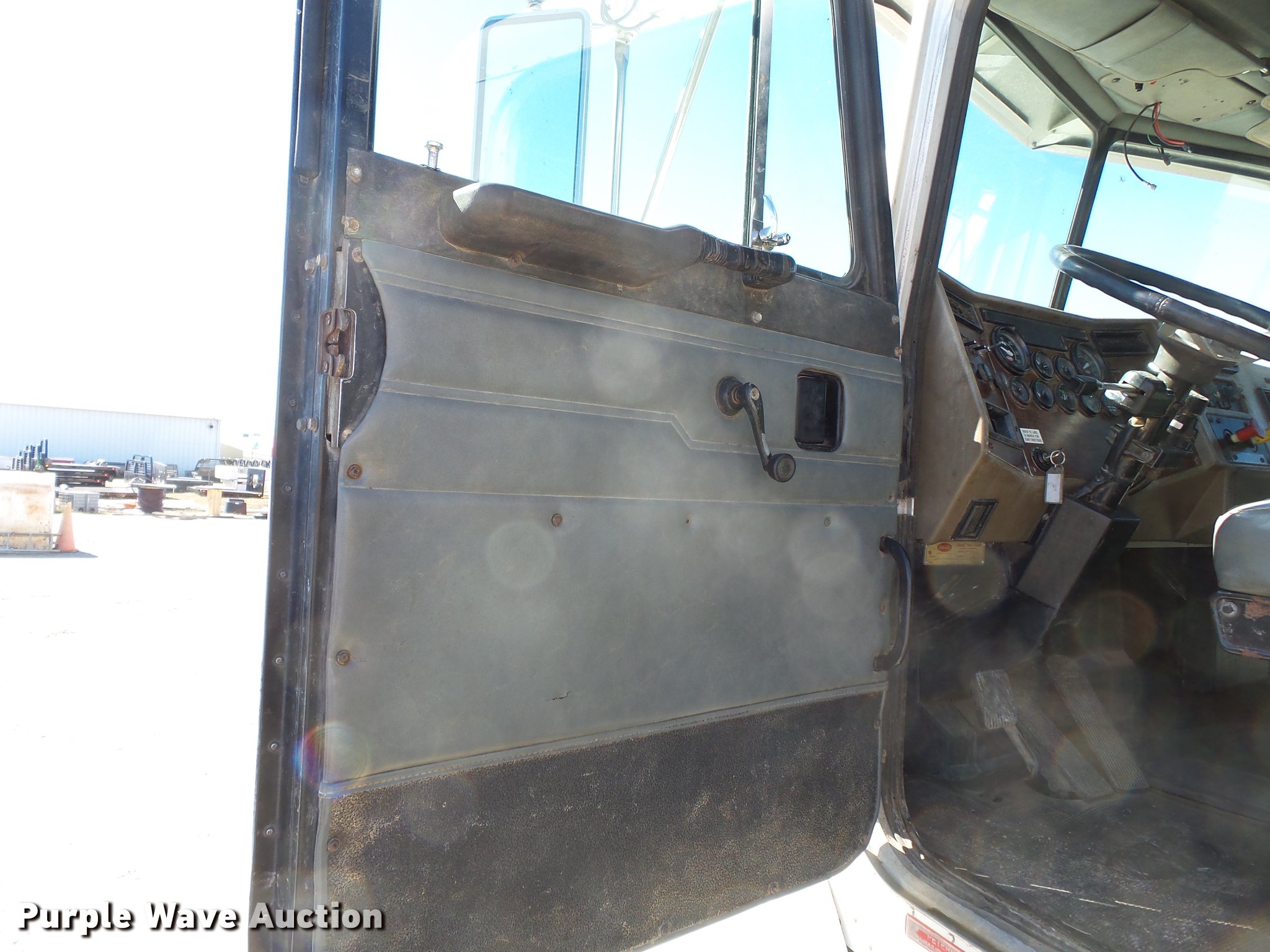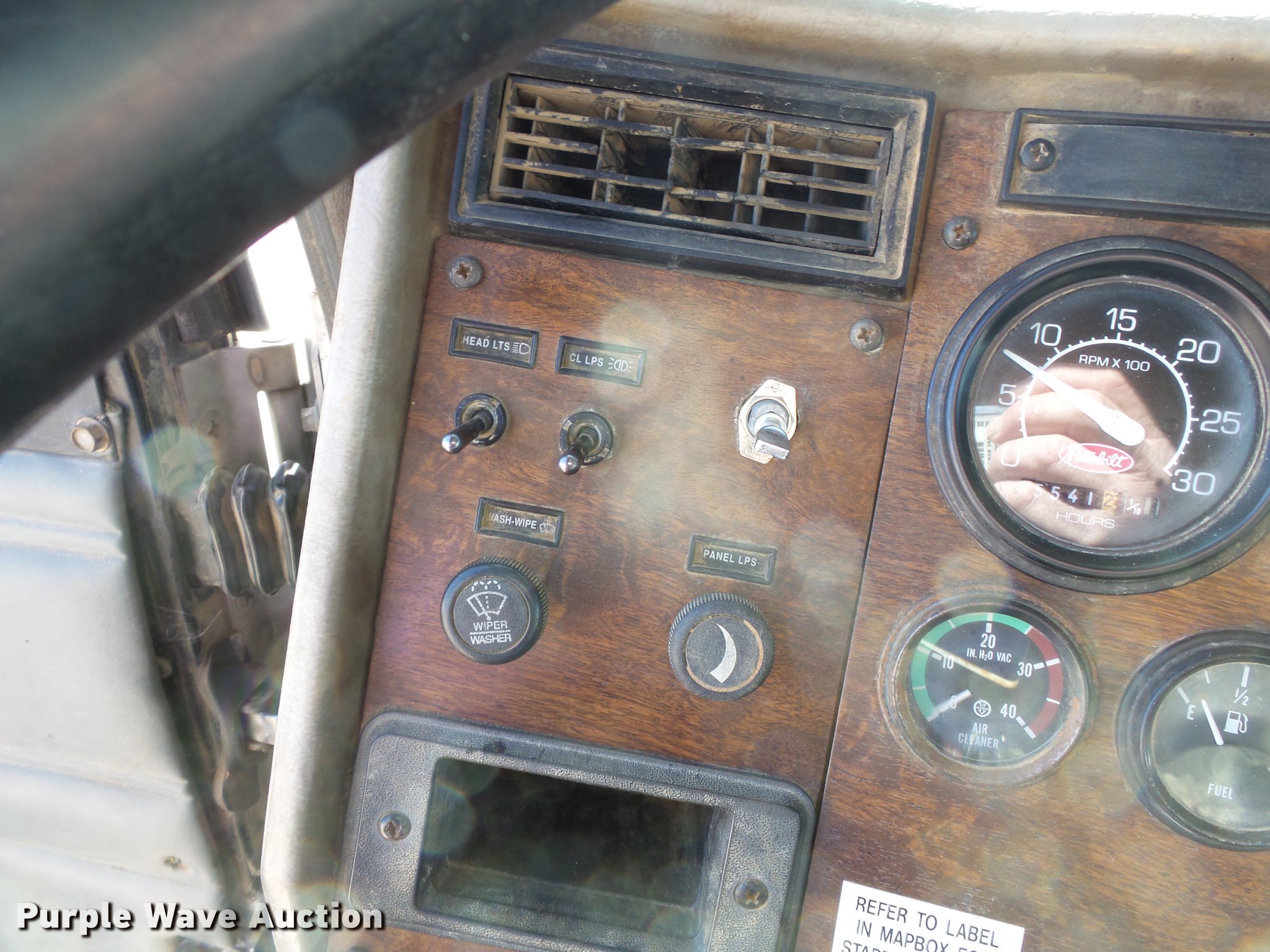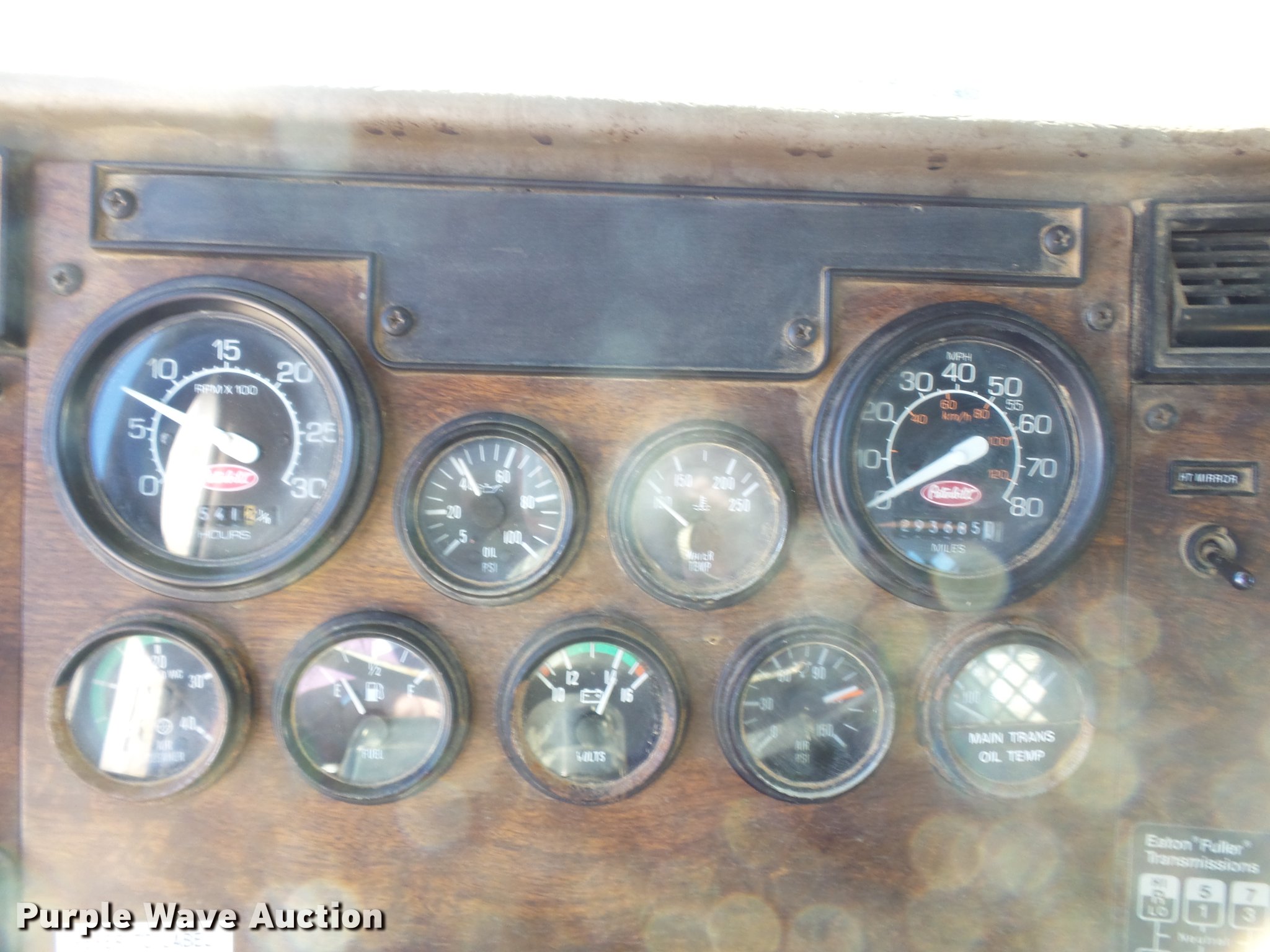 Purple Wave is selling a used Flat Bed Truck in Missouri. This item is a 1997 Peterbilt 330 flatbed truck with mixing system with the following: 293,685 miles on odometer, 15,540 hours on meter, Cummins C 8.3L L6 turbo diesel engine, Serial 45370310, Eaton Fuller nine speed manual transmission, Tandem axle, AC and heat, AM/FM/cassette, Heated mirrors, Air suspension seat, Front tow hooks, Exterior visor, Knapheide flatbed, 18.5'L x 8'W wood deck, Headache rack, Stake side pockets, Toolbox, (2) 2009 Vermeer MX240 mixing systems, 750 gallon poly tanks, Kohler gas engine, 25 HP, Serial 1VR3120P19000726, 1VR6120P19000723, Single exhaust stack, Single fuel tank, Pintle hitch, Trailer wiring, 228" wheelbase, Air suspension, Air brakes, 11R22.5 tires, GVWR 50,000 lbs, AC belt removed, Windshield cracked, Unit# 29
