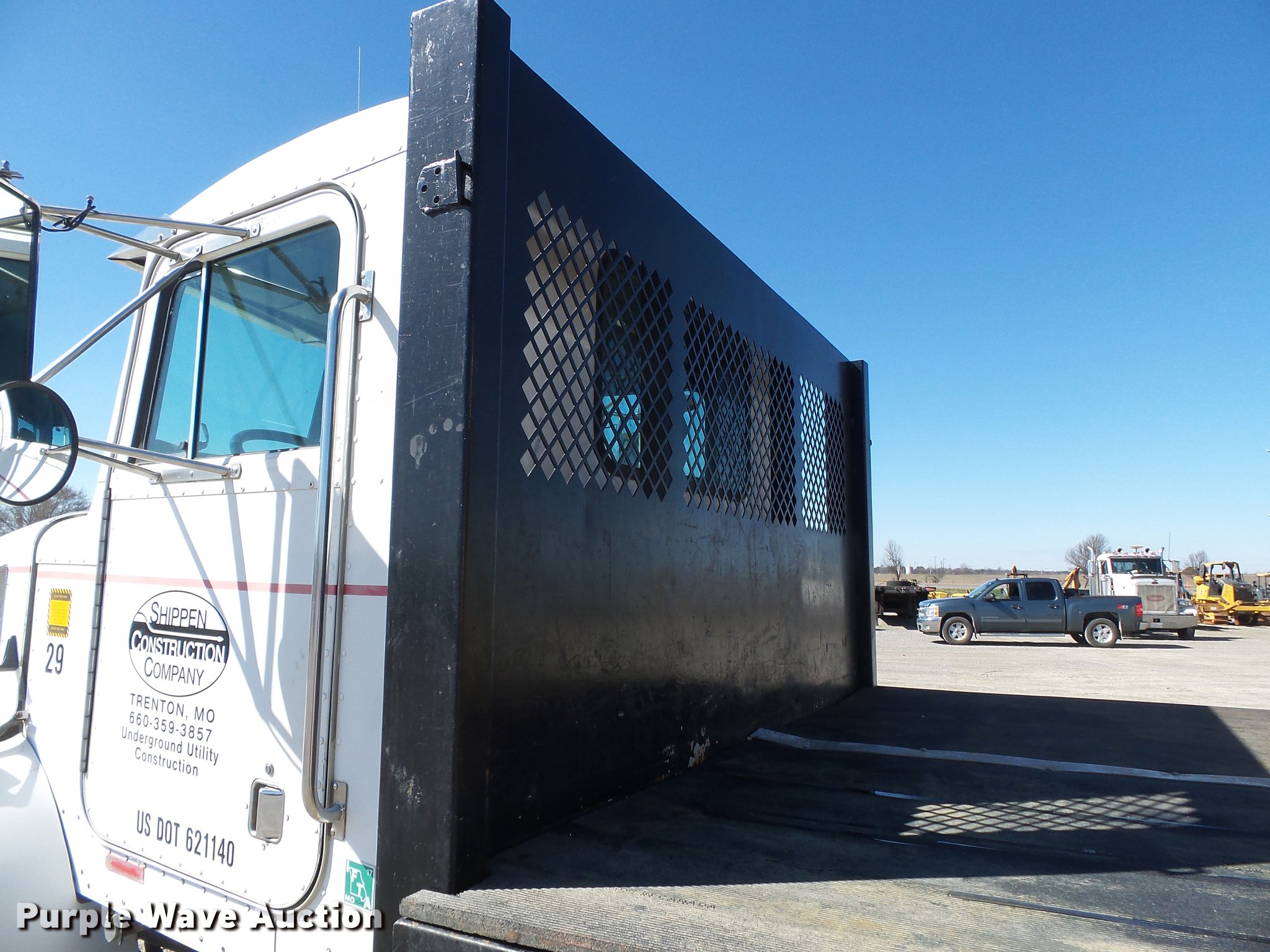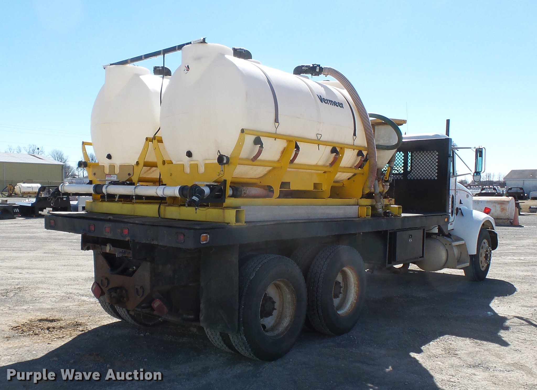 1997 Peterbilt 330 flatbed truck with mixing system. 293,685 miles on odometer, 15,540 hours on meter, Cummins C 8.3L L6 turbo diesel engine Serial 45370310, Eaton Fuller nine speed manual transmission, Tandem axle, AC and heat, AM/FM/cassette, Heated mirrors, Air suspension seat, Front tow hooks, Exterior visor, Knapheide flatbed 18.5'L x 8'W wood deck, Headache rack, Stake side pockets, Toolbox, (2) 2009 Vermeer MX240 mixing systems 750 gallon poly tanks, Kohler gas engine 25 HP, Serial 1VR3120P19000726, 1VR6120P19000723, Single exhaust stack, Single fuel tank, Pintle hitch, Trailer wiring, 228" wheelbase, Air suspension, Air brakes, 11R22.5 tires, GVWR 50,000 lbs, AC belt removed, Windshield cracked, Unit# 29. Missouri title. Seller is a Missouri licensed motor vehicle dealer. Title will be assigned and distributed by the dealer. Please contact the seller for distribution questions. 3BPNL79X7VF427786. Floyd's Inc.. 225 N Interstate Dr. Sikeston, MO 63801