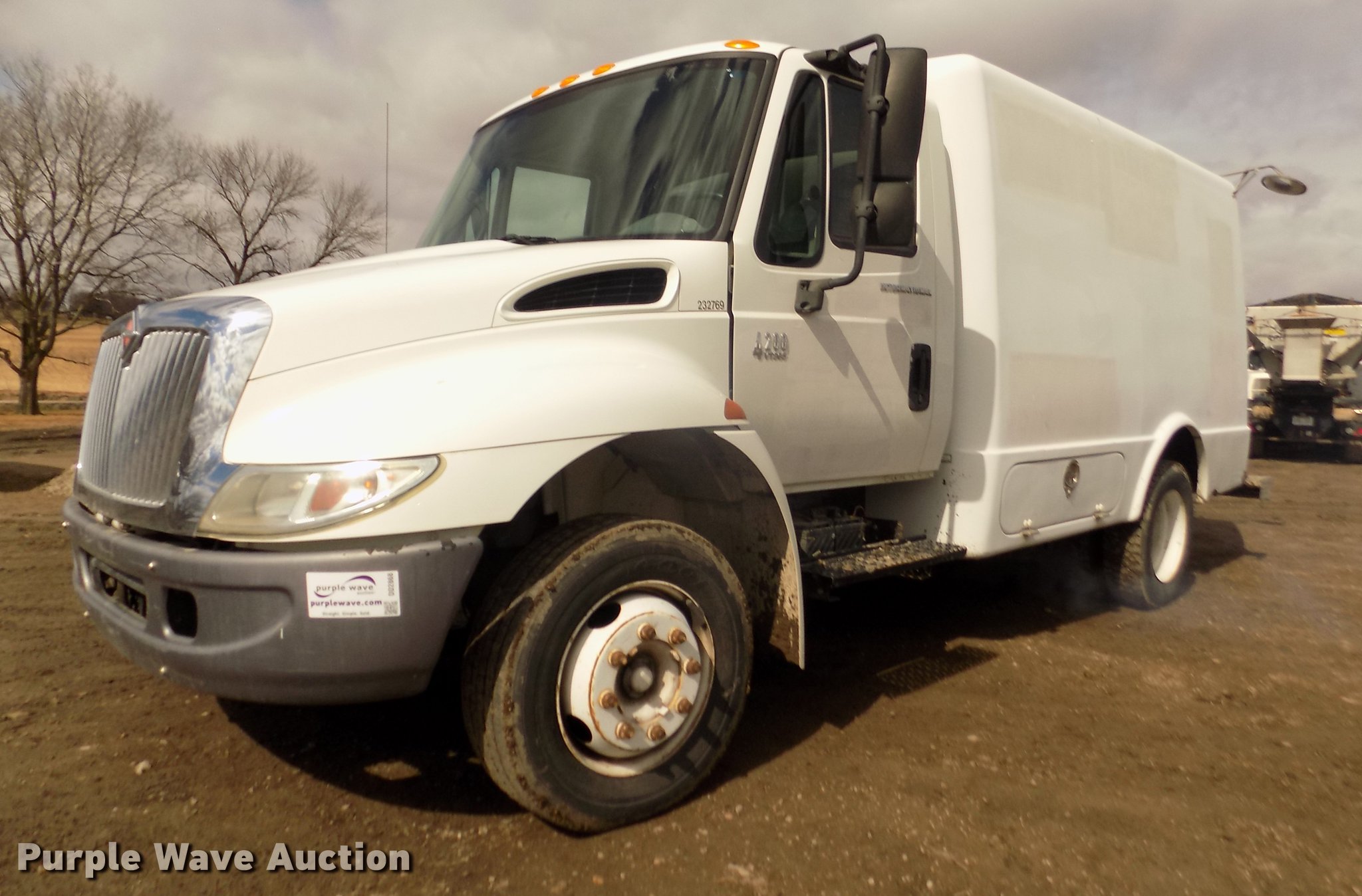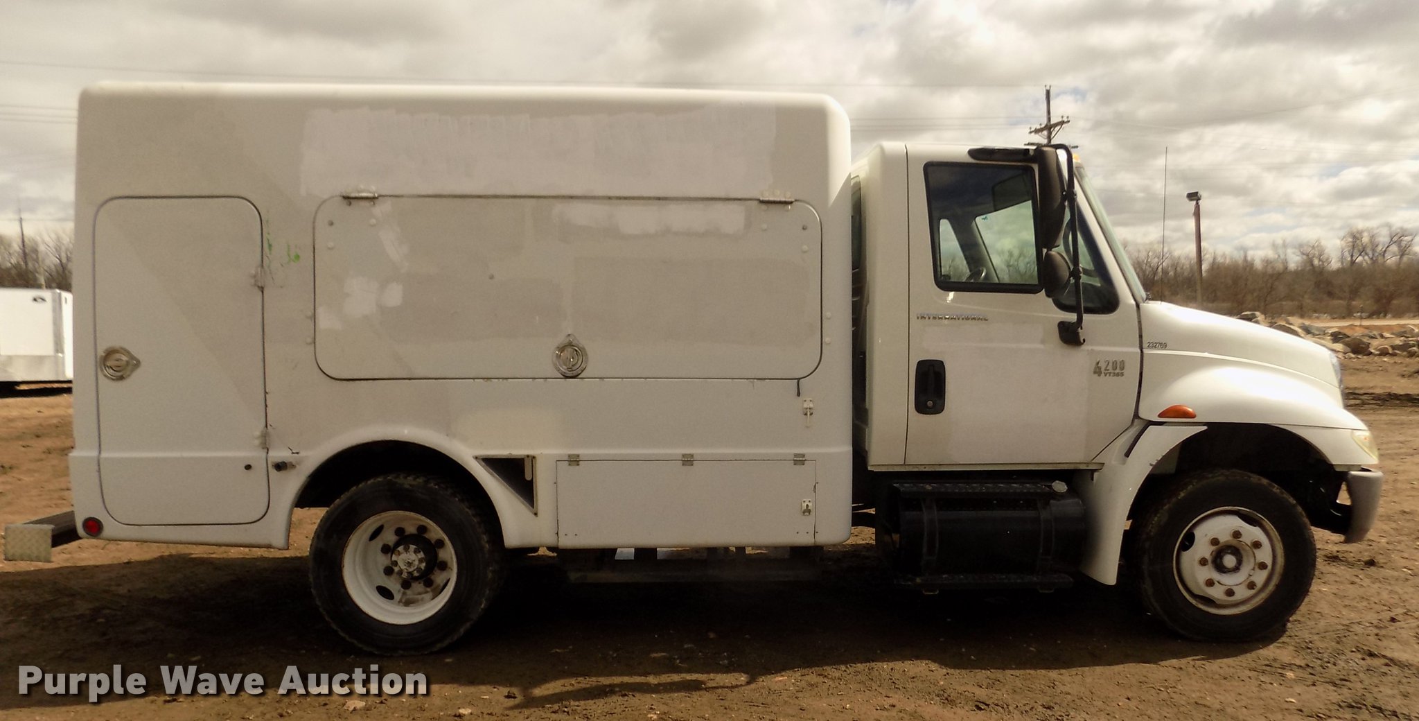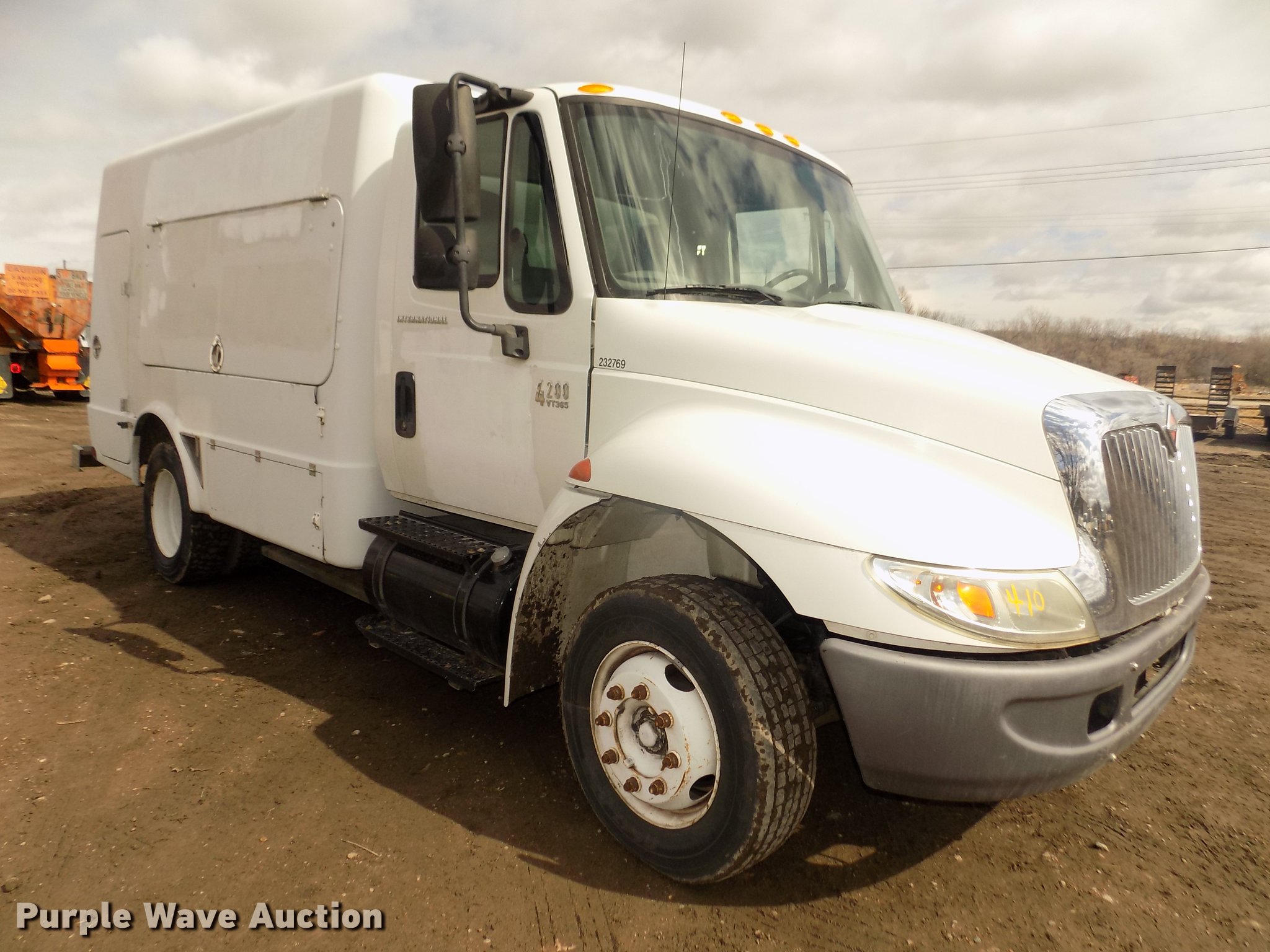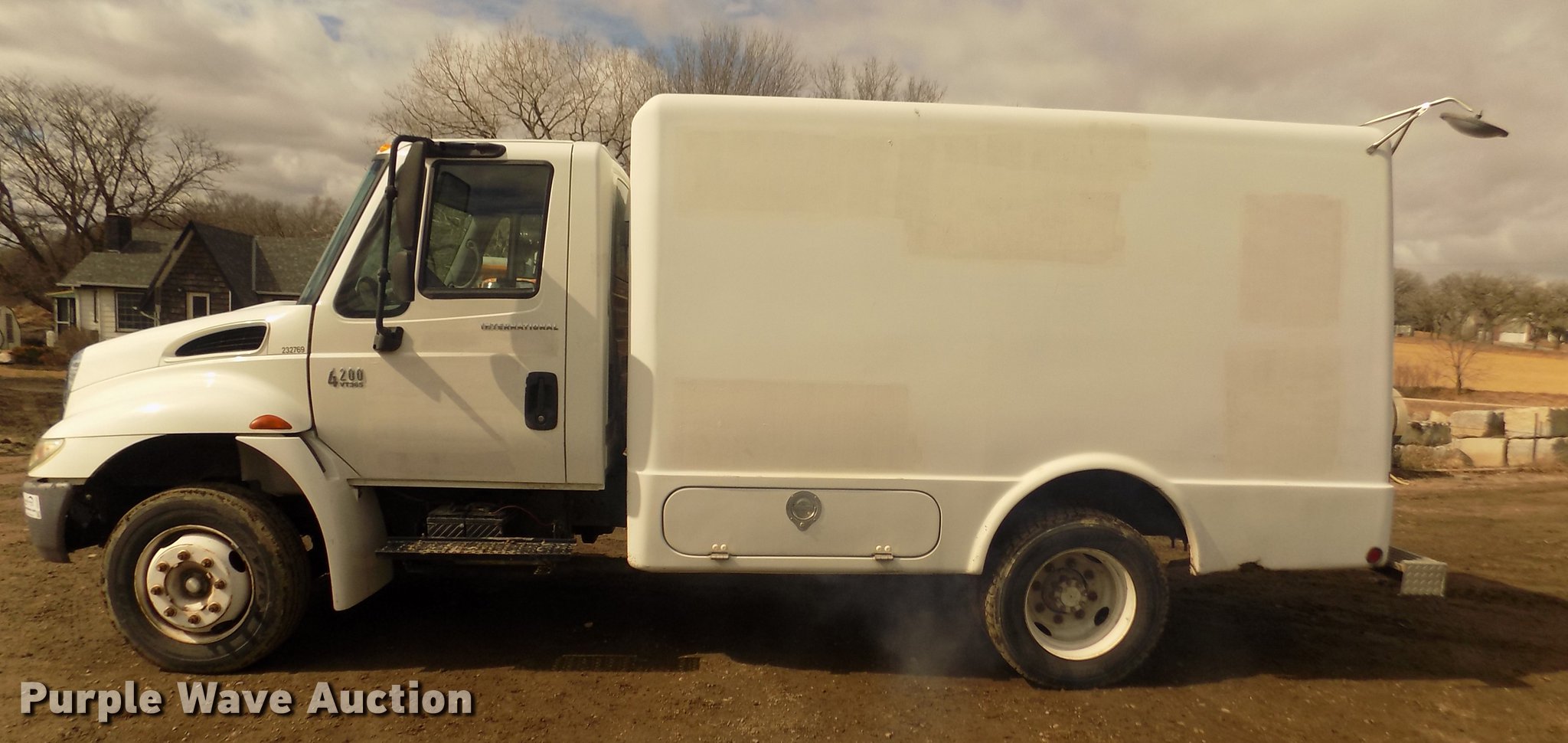 Purple Wave is selling a used Delivery Truck or Van in Nebraska. This item is a 2004 International 4200 liquid distributor truck with the following: 109,856 miles on odometer, 9,928 hours on meter, International VT365 6.0L V8 turbo diesel engine, Automatic transmission, Heat, Tilt, Cruise, AM/FM/cassette, Printer stand, PTO, Supreme Corp body, 11'5"L x 92"W, 7" step bumper, Serial TG1206009640102626, 8'L x 4'W x 4'H poly tank, Three compartments, Dike, Single fuel tank, Spring suspension, Hydraulic brakes, 245/70R19.5 tires, Unit# 232769