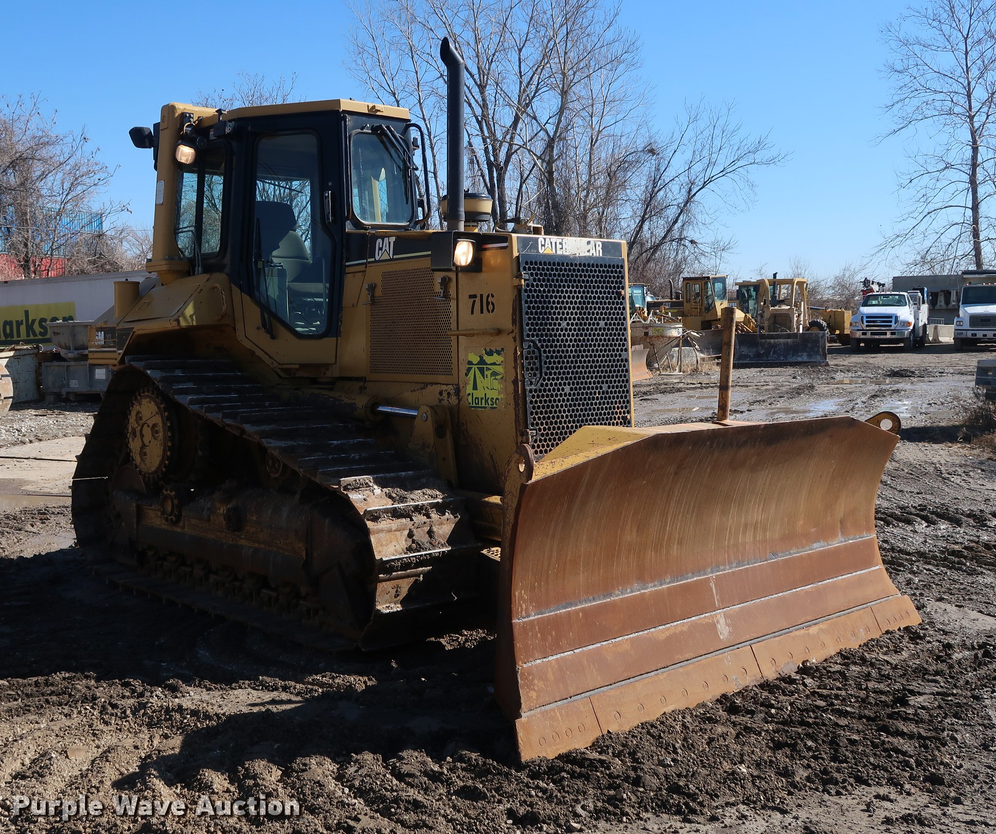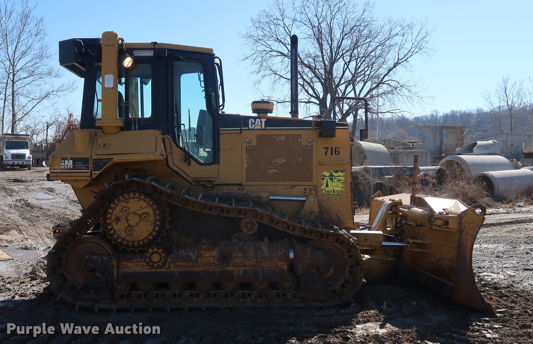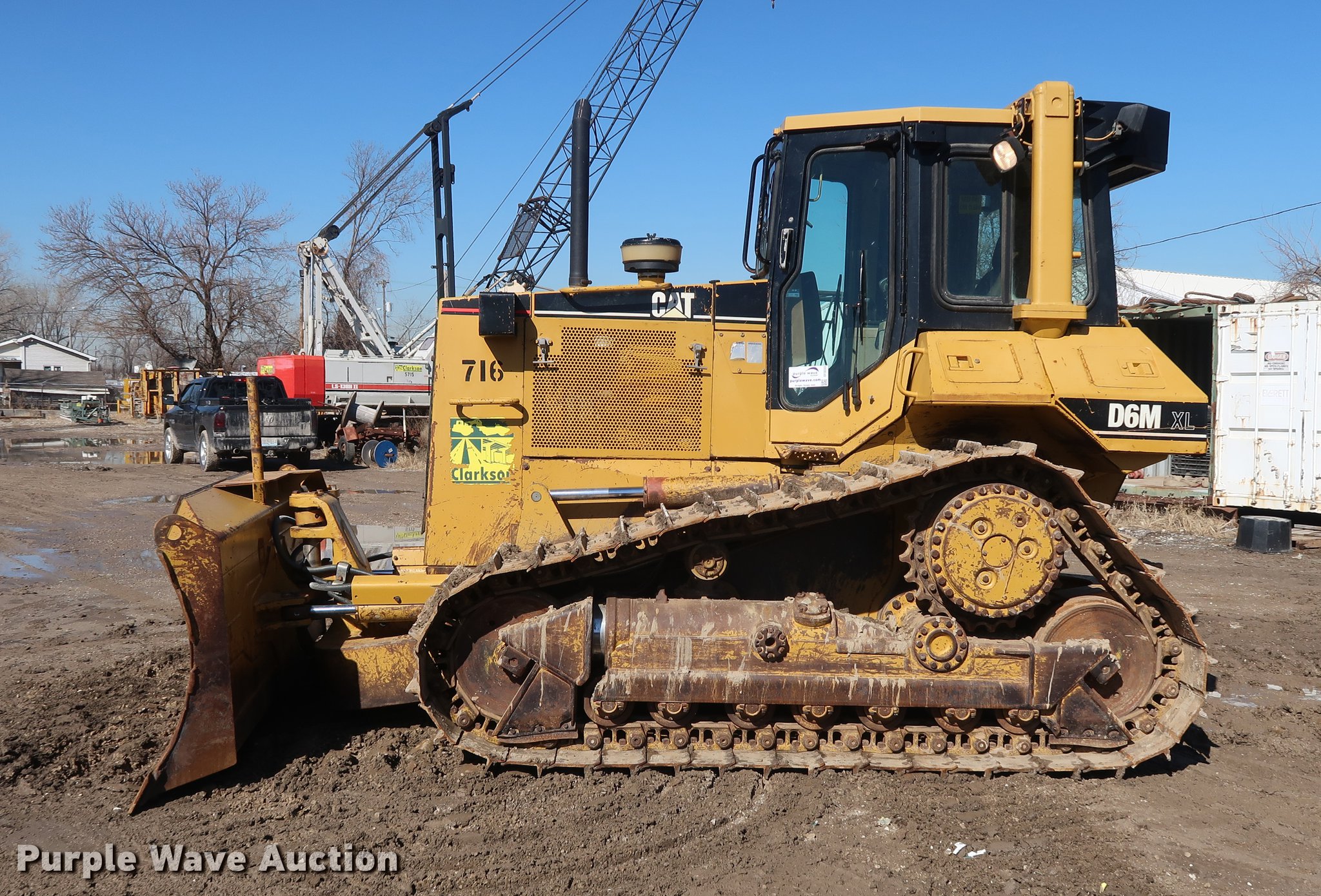 1999 Caterpillar D6M XL dozer. 22,922 hours on meter, Caterpillar six cylinder turbo diesel engine, Powershift transmission 3F-3R gears, Cab, AC and heat, Suspension seat, Fingertip control steering, Front and rear wipers, Front and rear work lights, 120" six-way dozer blade, Rear drawbar, 24"W single grouser track pads, Machine rebuilt at 13,522 hours, Serial 3WN01917, Unit# 716. View repairs. Clarkson Construction. 4133 Gardner Ave. Kansas City, MO 64120