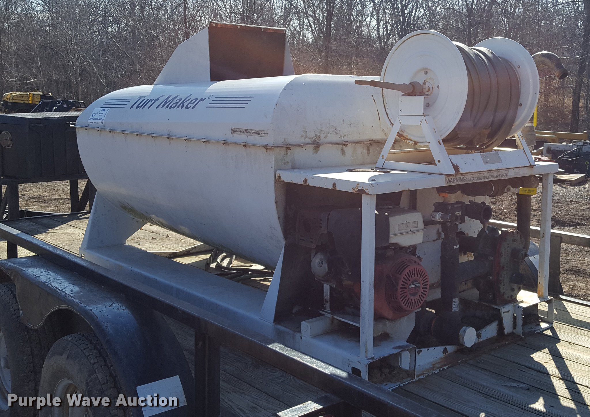 Purple Wave is selling a used Hydro Seeder/ Mulcher in Missouri. This item is a Turf Maker hydroseeder with the following: Honda GX390 gas engine, 13 HP, Hose reel, 8'L x 4'W, Trailer not included