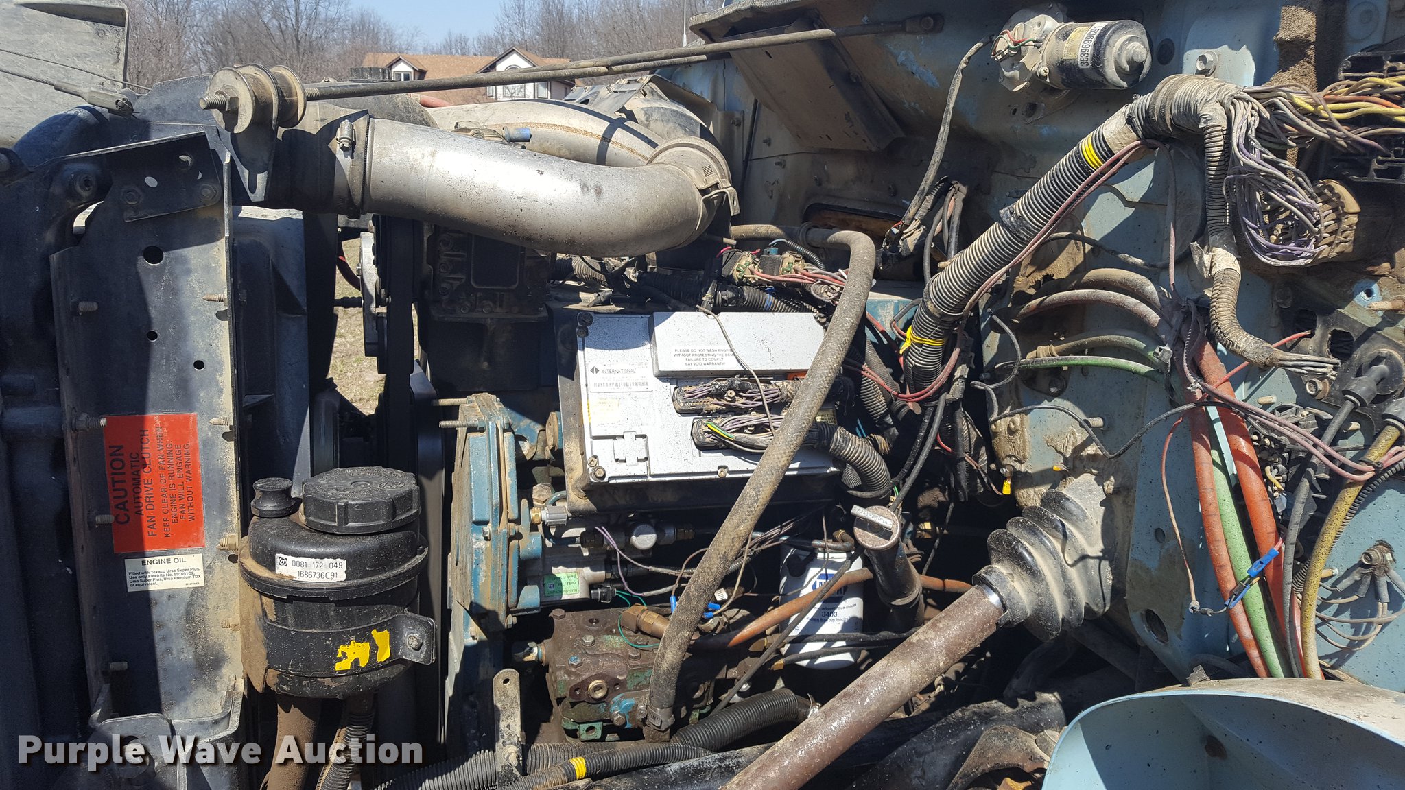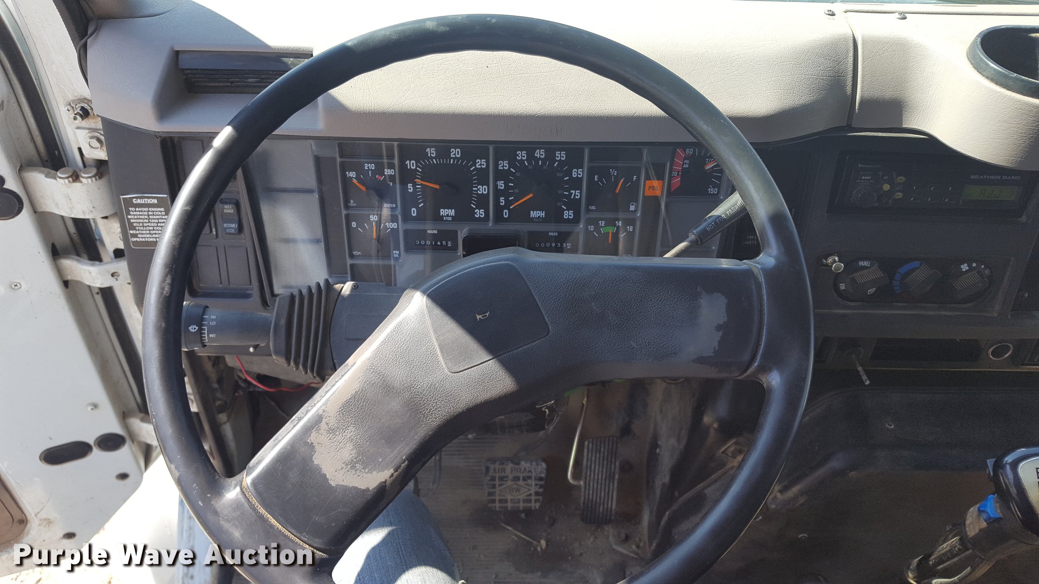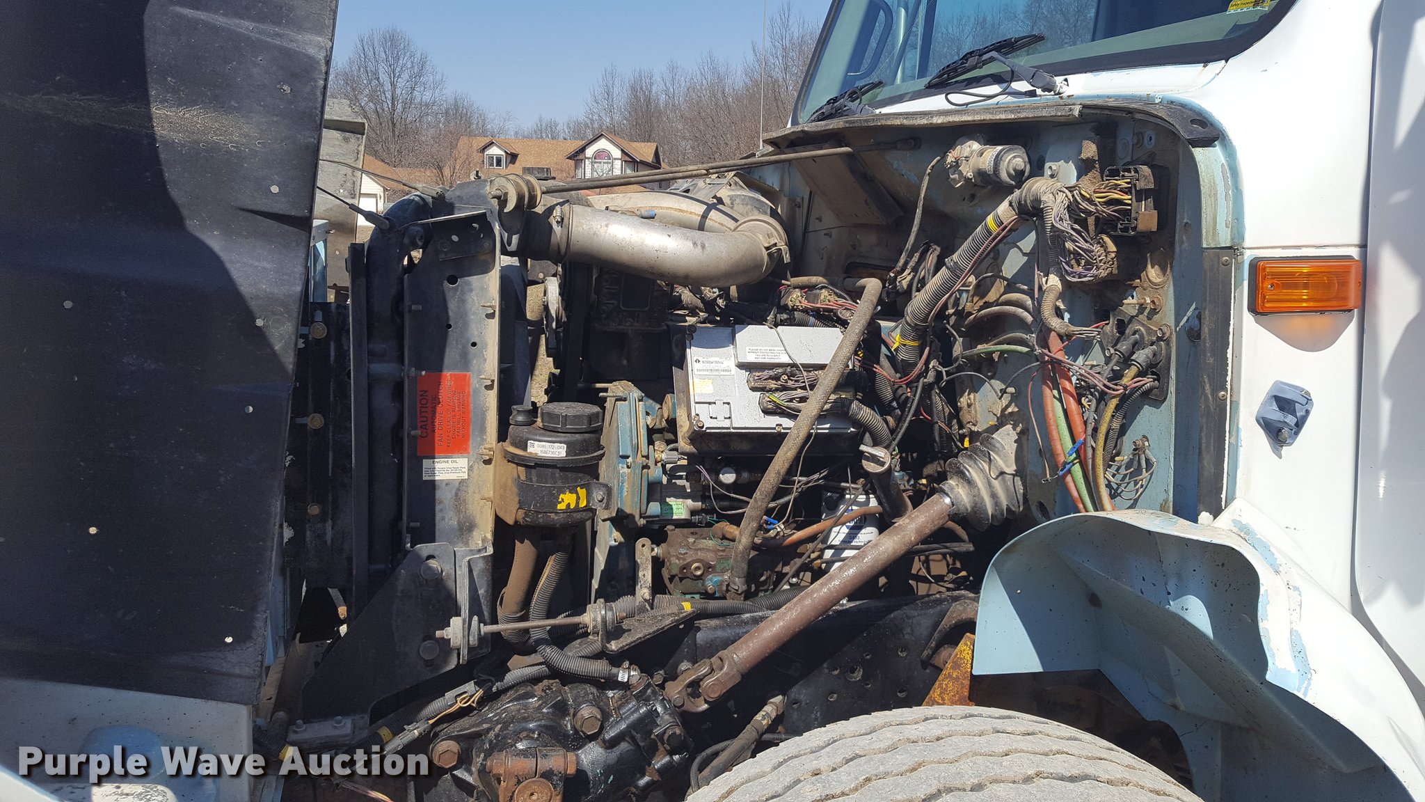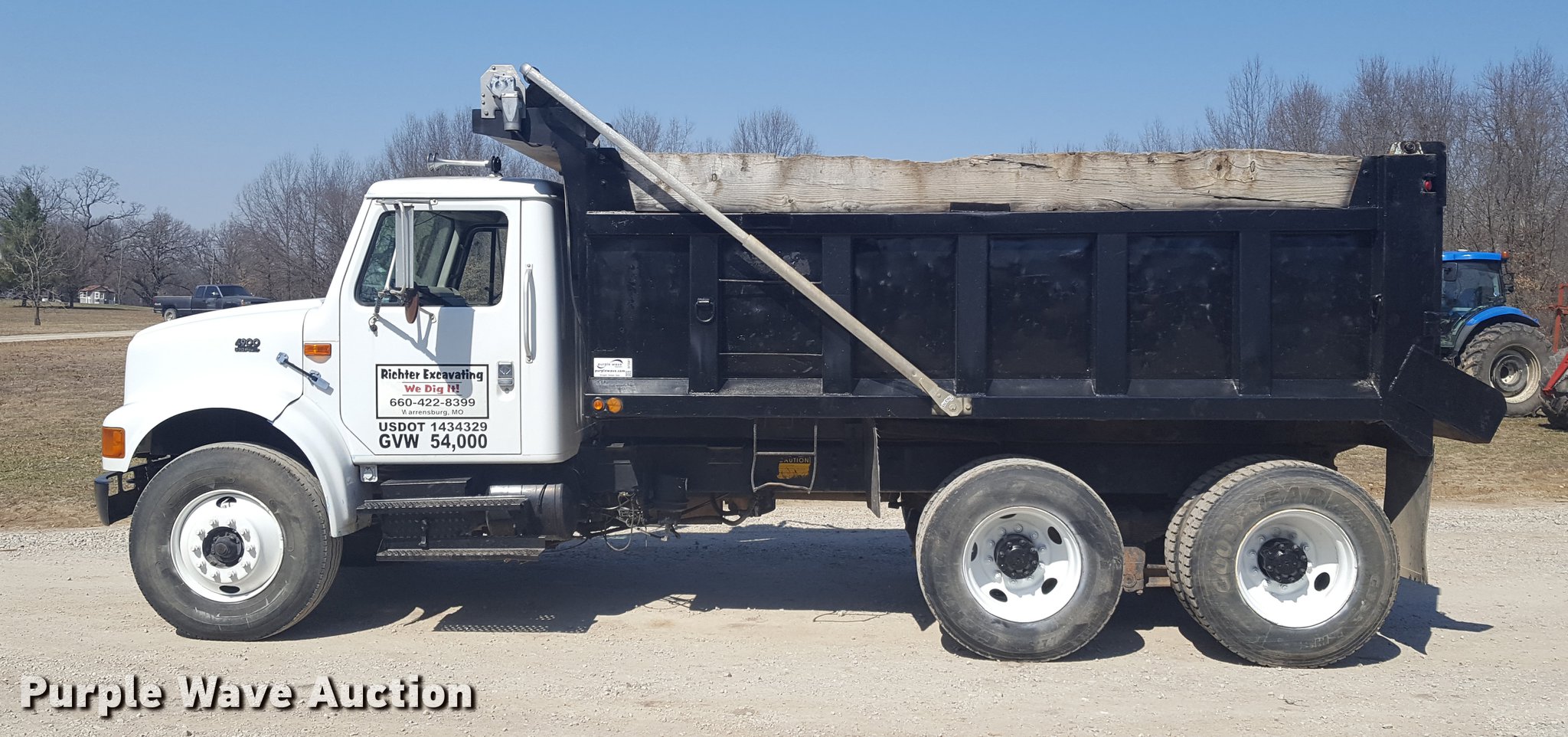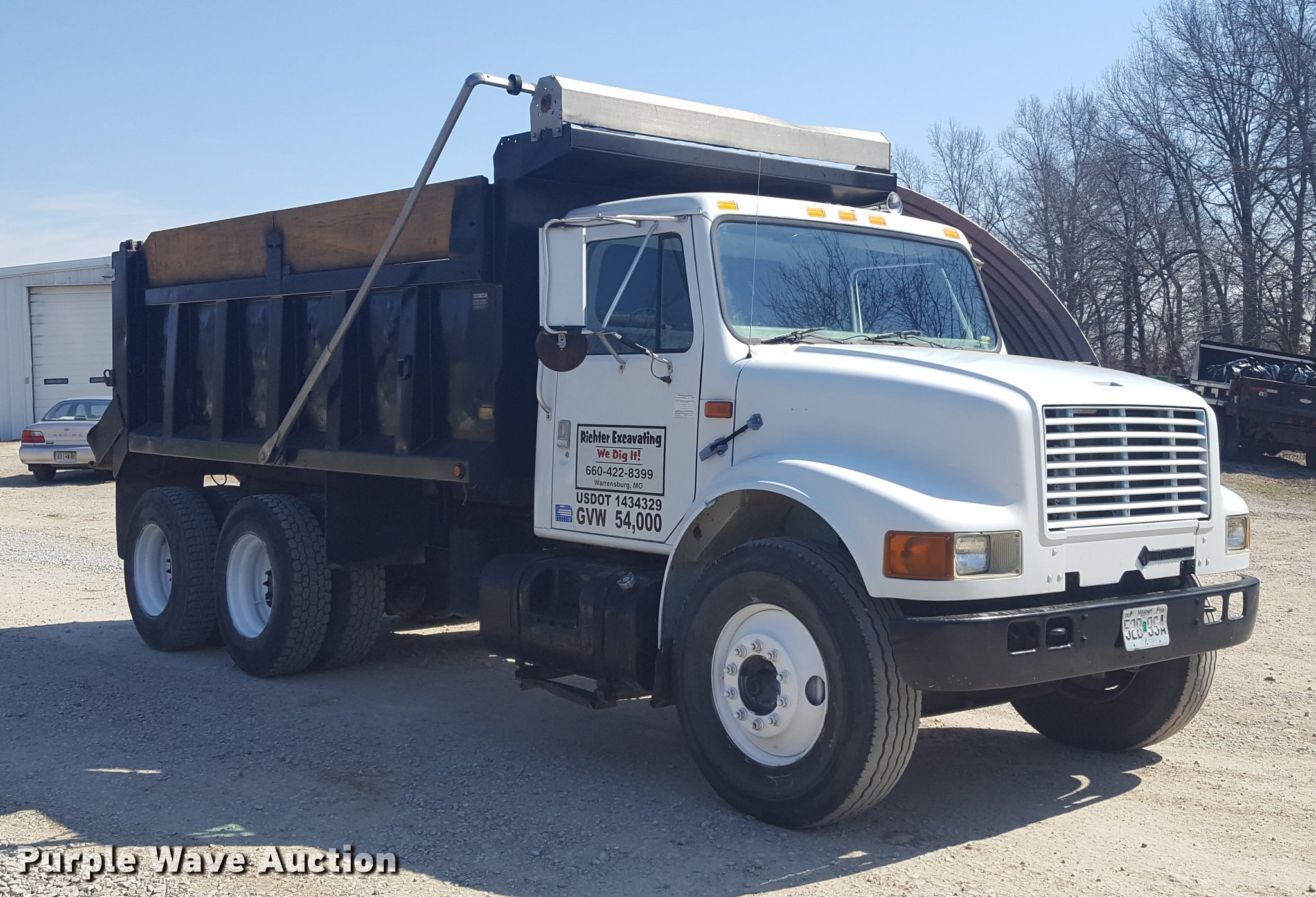 Purple Wave is selling a used Construction Dump Truck in Missouri. This item is a 1999 International 4900 dump truck with the following: 933 miles on odometer, 145 hours on meter, Actual hours and miles unknown, International DT530 8.7L L6 turbo diesel engine, Eaton Fuller eight speed manual transmission, Lo and Lo-Lo, Tandem axle, Heat, Air suspension seat, PTO, McClain Galion 502F dump bed, 14'L x 8'W, 36" side height, 12" side board height, 11.1 to 14.2 cu.yd. capacity, Air operated end gate, Roll tarp, Serial B-02532, Pintle hitch, Trailer wiring, Air connectors, 188" wheelbase, Spring over walking beam suspension, Air brakes, 315/80R22.5 front tires, 11R22.5 rear tires, Rebuilt engine approx. 1,000 ago, Replaced turbo, injectors, ECM, dash cluster, starter, and more