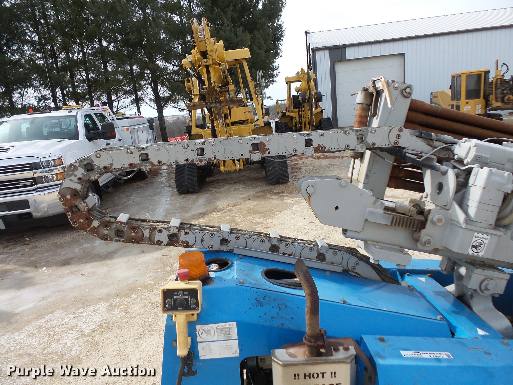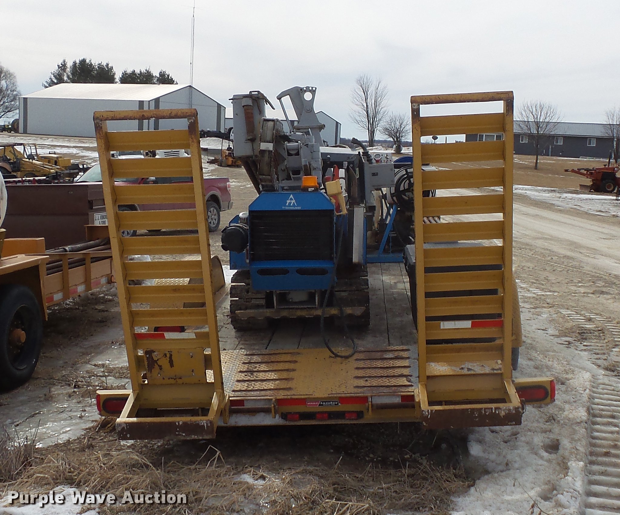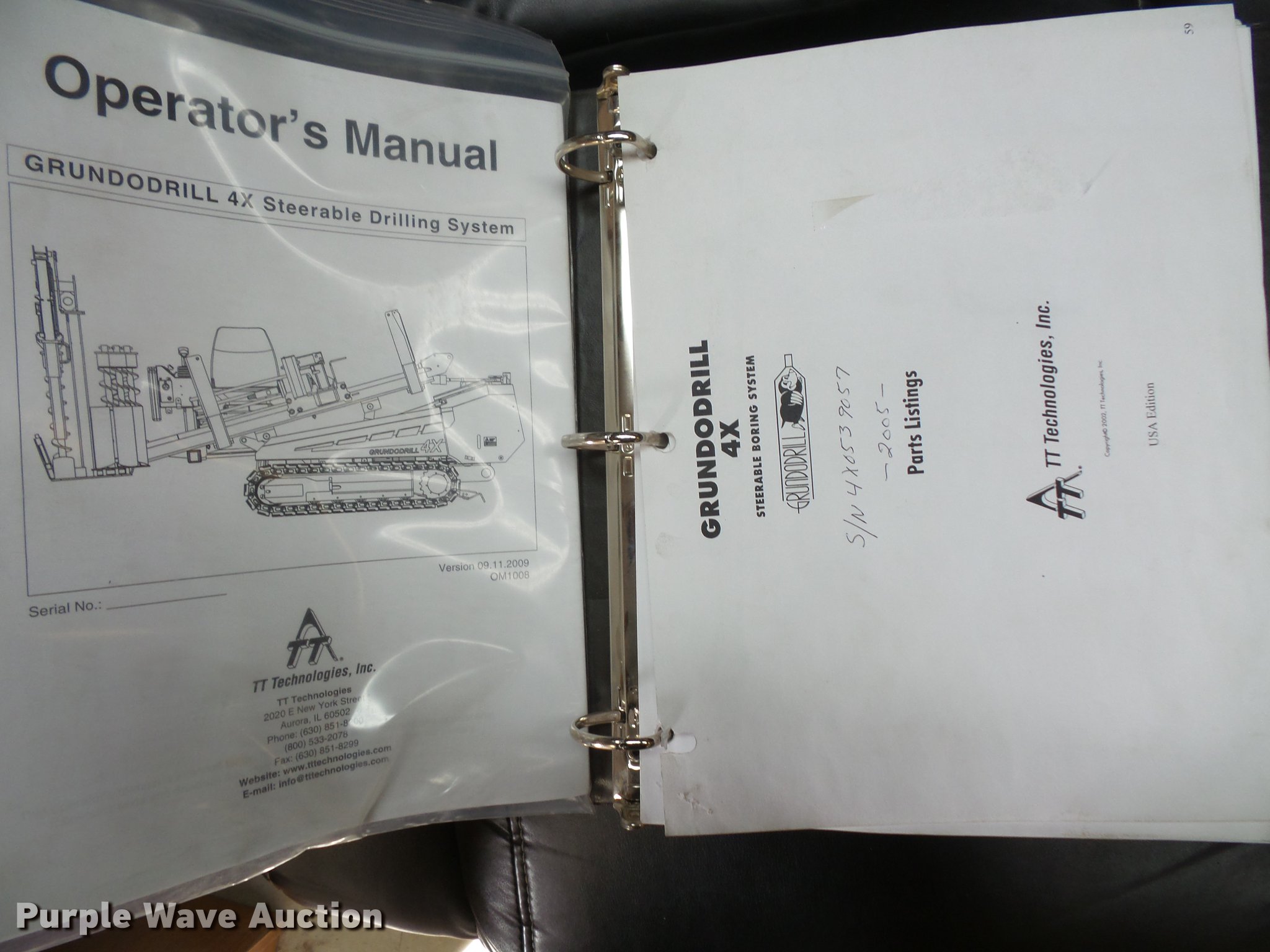 Purple Wave is selling a used Directional Boring Unit in Wisconsin. This item is a Grundo 4X directional boring unit with trailer with the following: 2,204 hours on meter, Kubota V1505-ES four cylinder diesel engine, Tethered ground drive remote, 87" x 32" overall dimensions, Work lights, (32) drill stems on drill, (40) additional drill stems, 62"L x 1.5" diameter, High pressure pump, Hydraulic stake down, Rear hydraulic stabilizers, 9"W double grouser rubber and steel track pads, Grundomudd fluid mix system, 225 gallon capacity, High pressure pump, Honda GX270 gas engine, 2008 Mac-lander trailer, 18.5'L x 82"W, 5'L ramps, Rod storage, Toolbox, Pintle hitch, Spring suspension, Electric brakes, 235/85R16 tires, GVWR 14,000 lbs, Serial 4X0539057