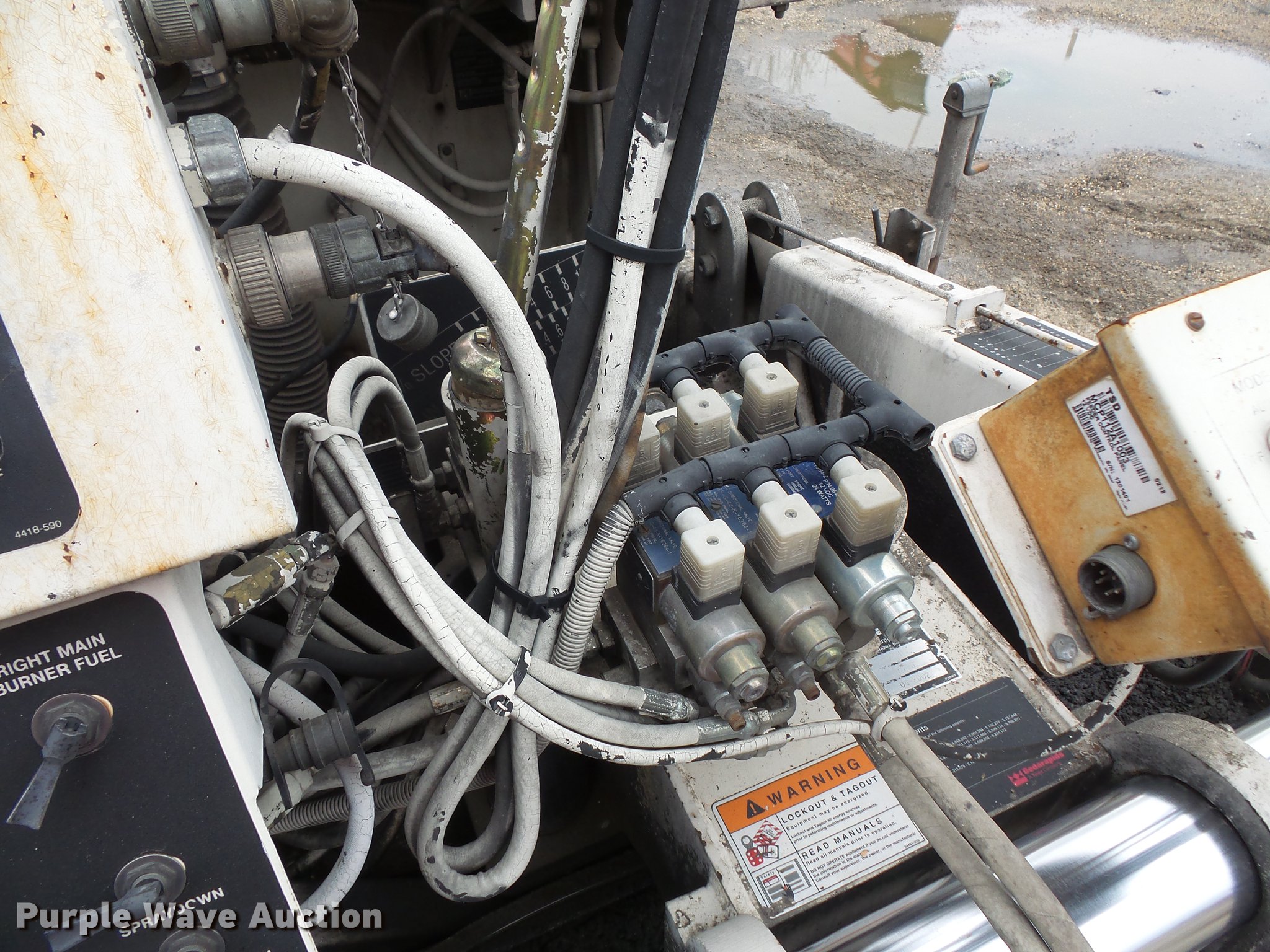 2002 Cedarapids CR351 paver. 1,635 hours on meter, Cummins four cylinder turbo diesel engine, Hydrostatic transmission, Dual operating stations, Protective cover, 8' to 16' paving width, 10'W front spread hopper 2' extension wings and auger, Diesel fired screed heater, Ground level remote , Grade and slope controls, Sonic , Skies included, Goodyear 18.4-26 tires, Serial 04-2002. Porter Brothers Asphalt & Sealing Inc.. 1106 Industrial Park Rd. Rock Falls, IL 61071