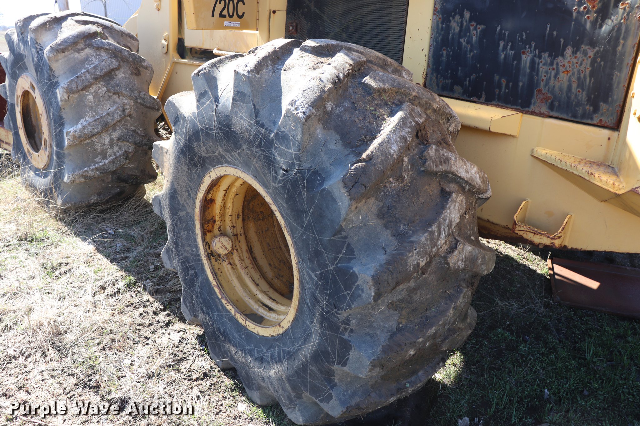 Purple Wave is selling a used Feller Buncher in Oklahoma. This item is a Tigercat 720C feller buncher with the following: 9,233 hours on meter, Six cylinder turbo diesel engine, Hydrostatic transmission, AC and heat, AM/FM/cassette, Suspension seat, Hydraulic lift, Ramsey 800R winch, Serial 438497, Hidro Grubert boom, 25'L x 10'W overall, 10' overall height, 20" ground clearance, 28L-26 tires, Unknown operating condition, Right side glass broken, No cutter head, Serial 7201147