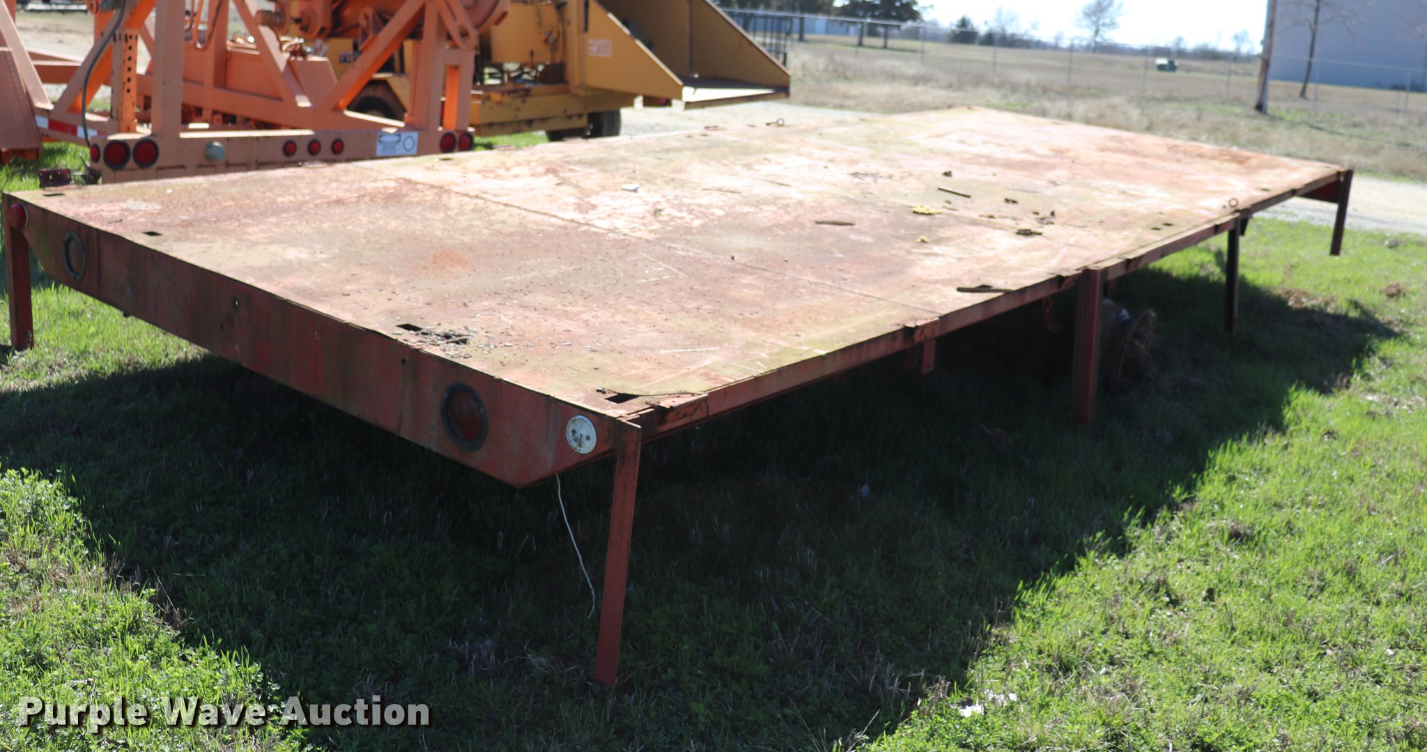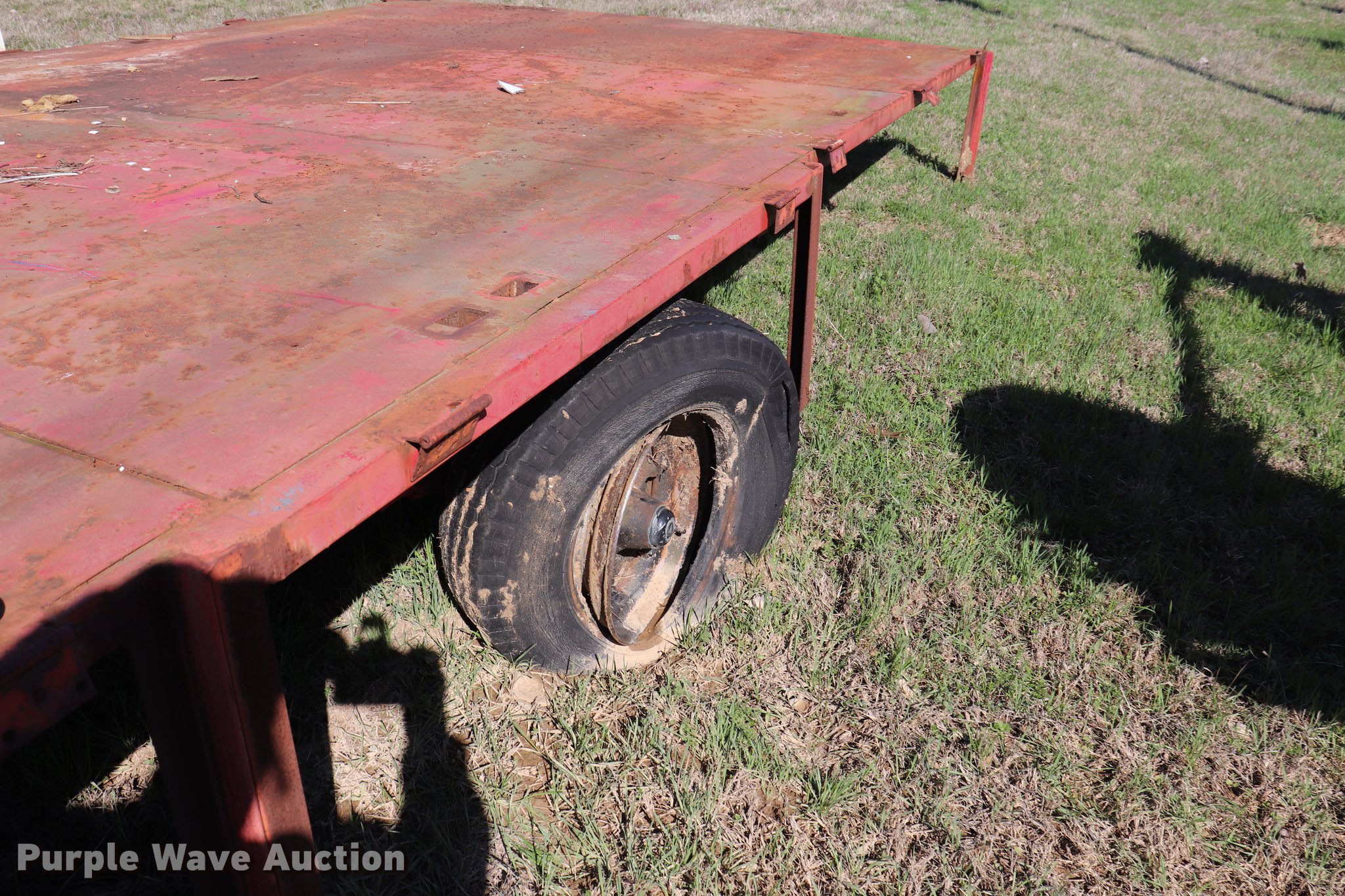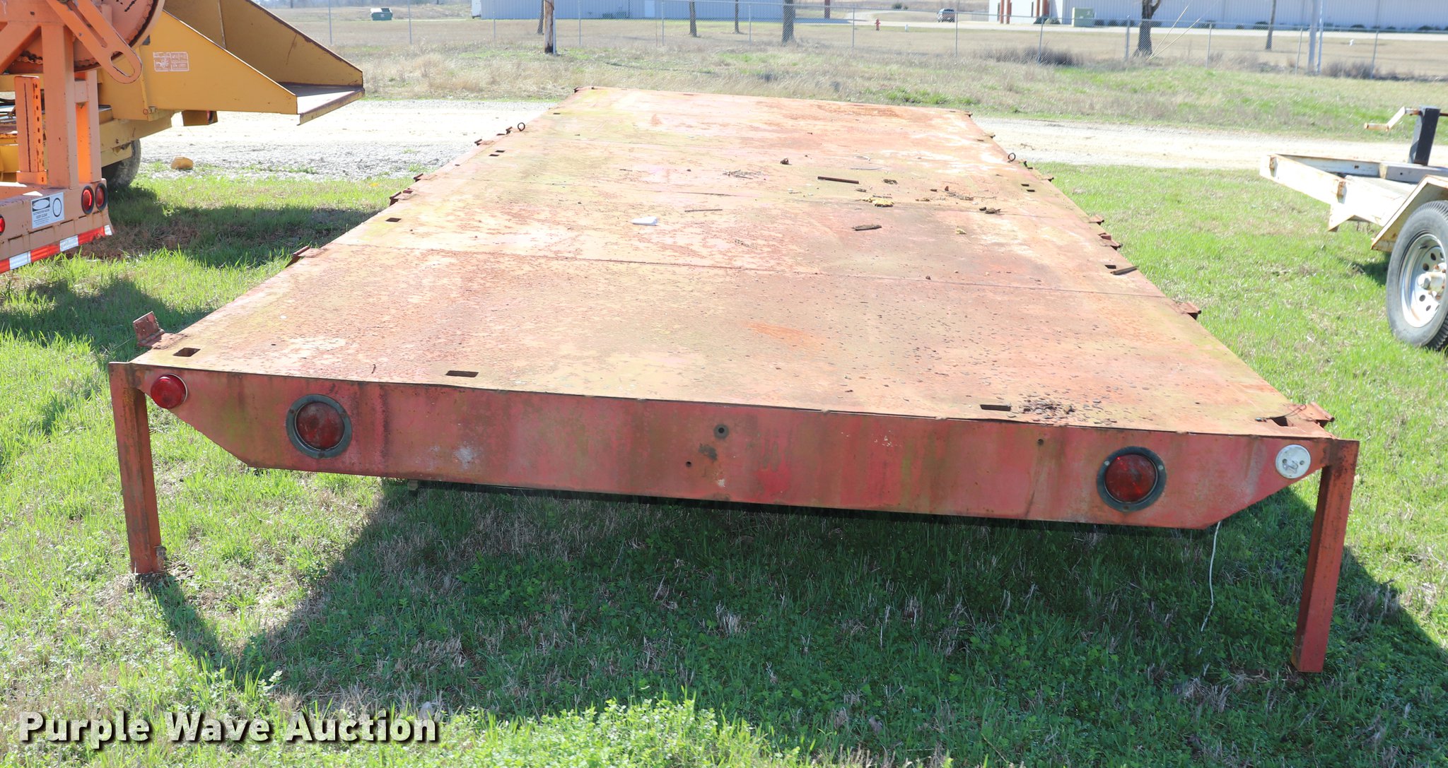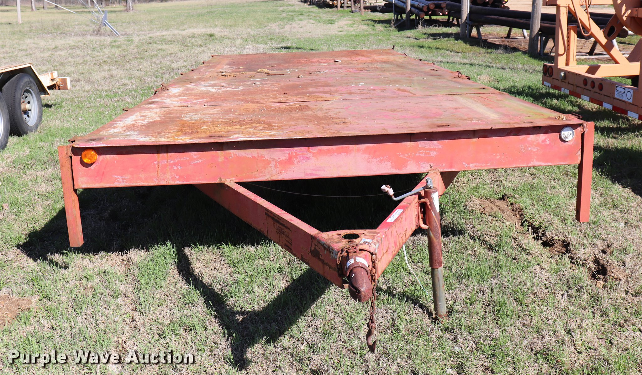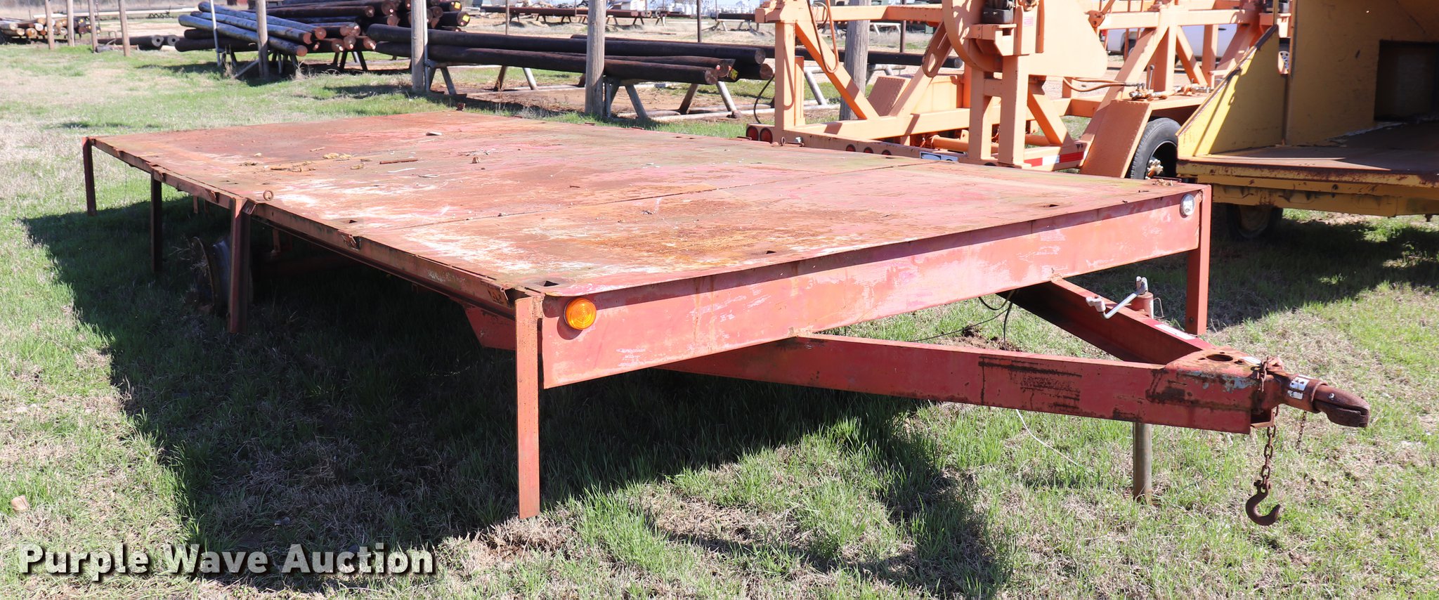 Purple Wave is selling a used Car or Utility Trailer in Oklahoma. This item is a Shop built utility trailer with the following: 24' overall length, 20'3"L x 100.5"W steel deck, 29" floor height, Stake side pockets, 2" ball hitch, Single leg landing gear, Spring suspension, Electric brakes, Steel wheels, No tires