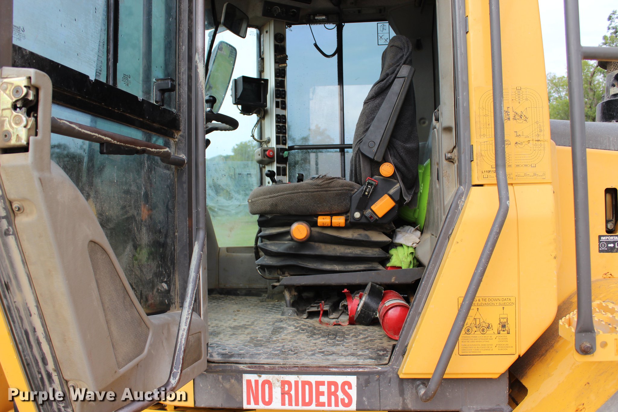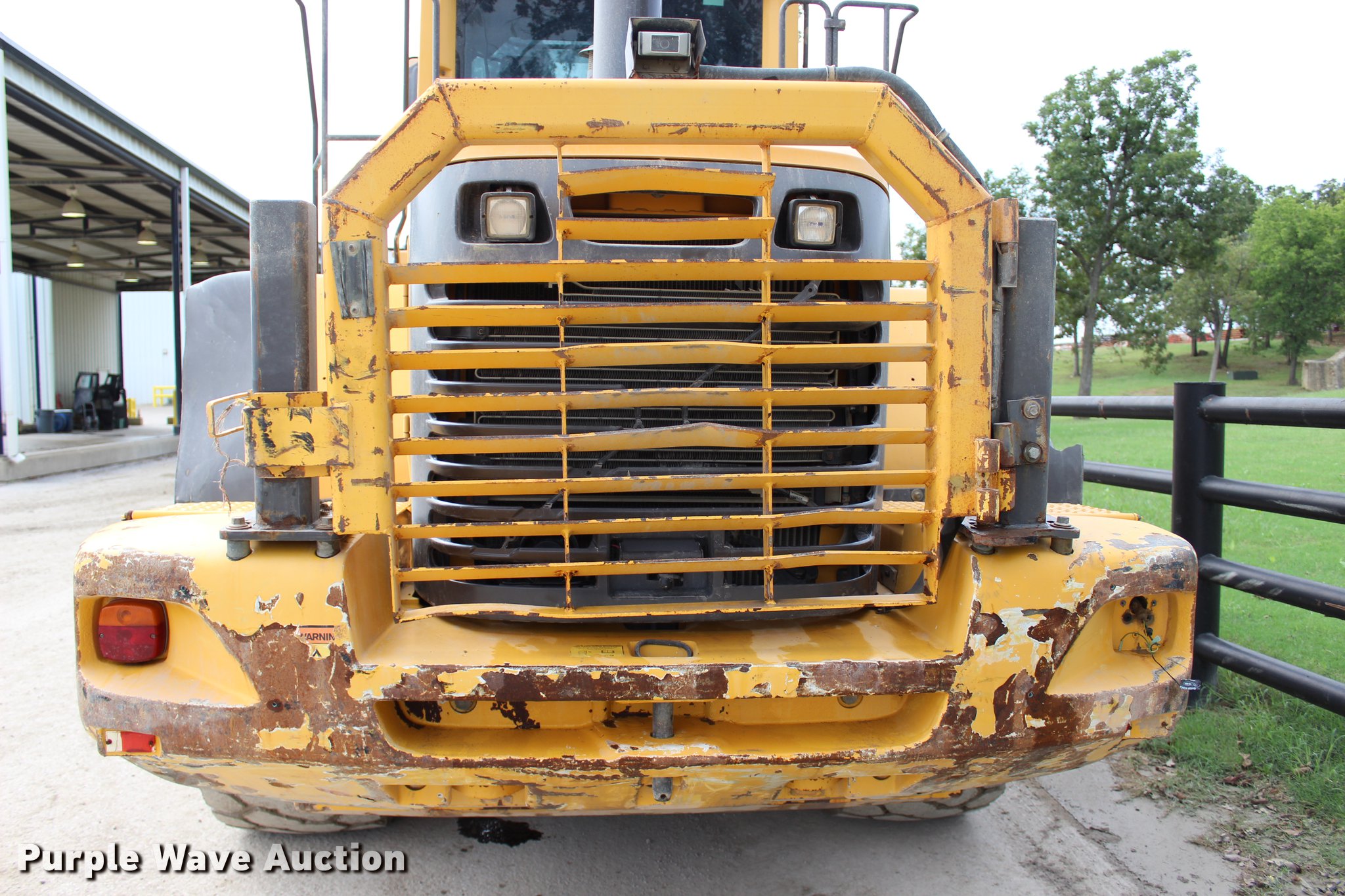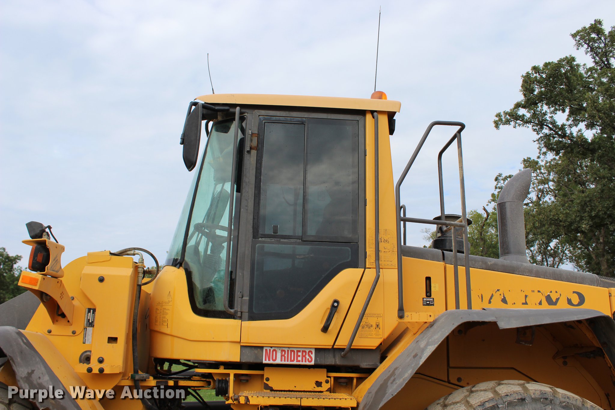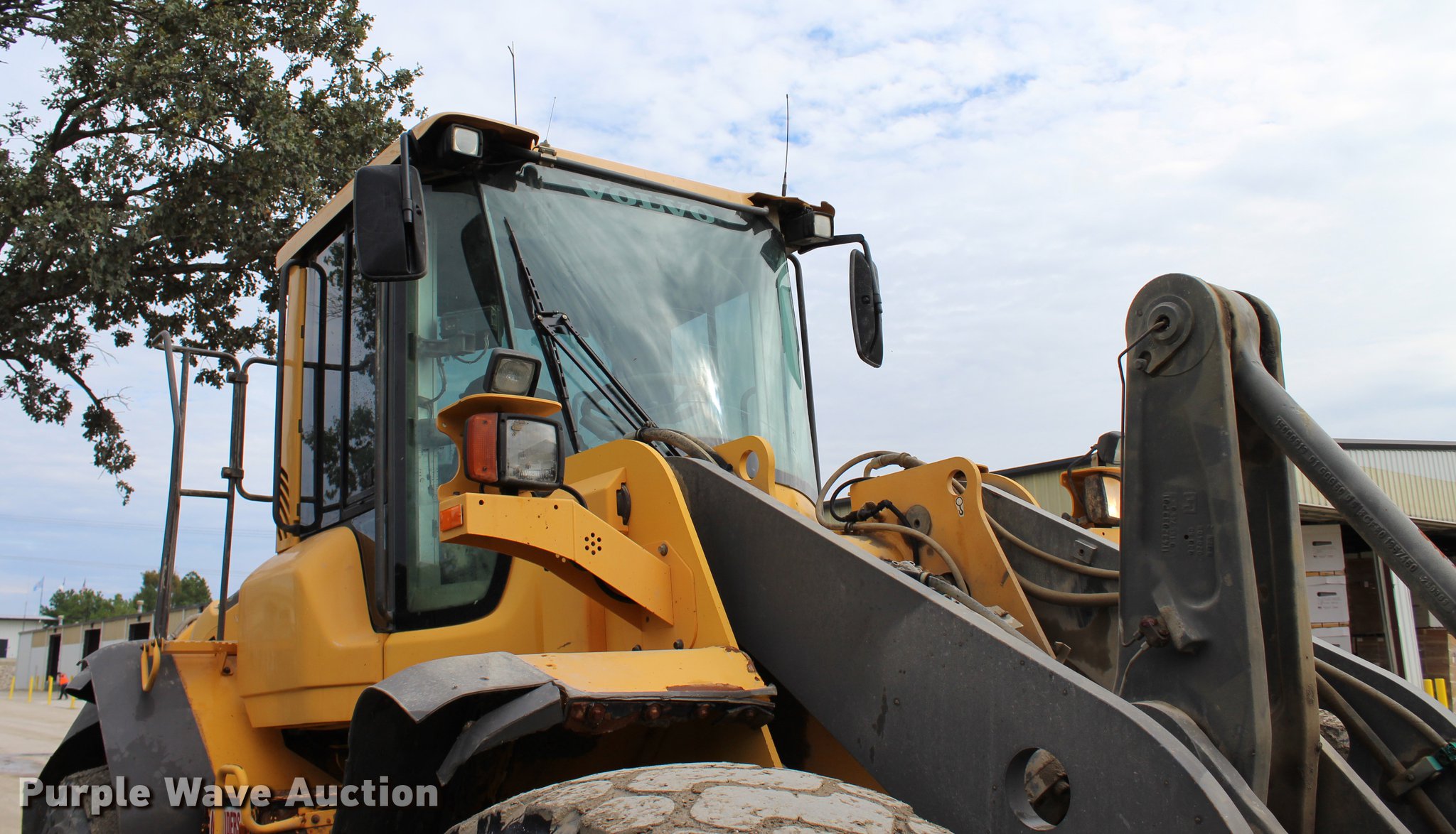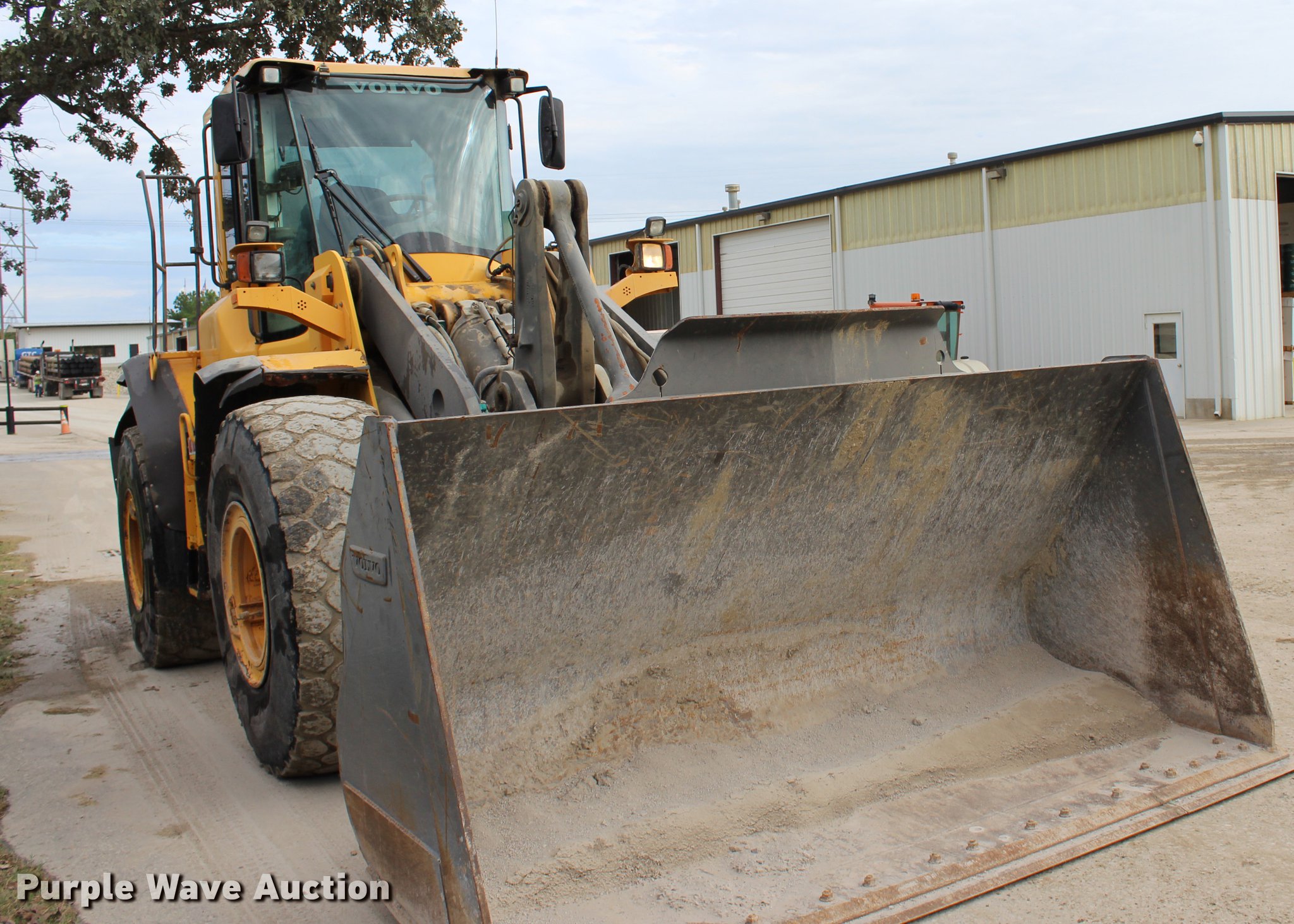 Purple Wave is selling a used Wheel Loader in Oklahoma. This item is a 2008 Volvo L120E wheel loader with the following: 31,778 hours on meter, Volvo D7ELAE3 six cylinder turbo diesel engine, 217 HP, Powershift transmission, 4F-4R gears, Differential lock, ROPS, AC and heat, AM/FM/CD, Two-lever bucket controls, Suspension seat, Wipers, Front and rear work lights, Backup camera, Forestry package, 115"W general purpose bucket, 4.58 cu. yd. capacity, Bolt-on cutting edge, Self-leveling, Hydraulic quick coupler, Front auxiliary hydraulics, Counterweights, Wheel weights, 23.5R25 tires, Serial VCEL120FH00066567