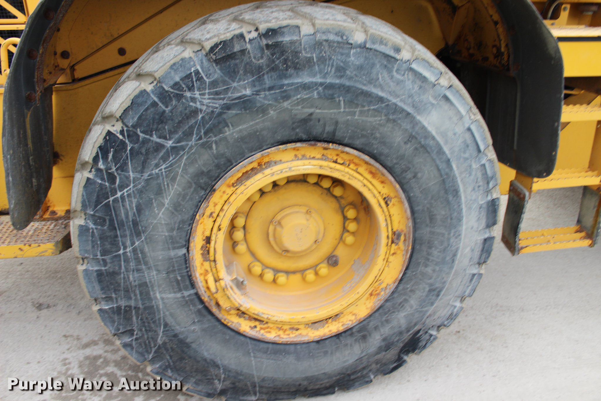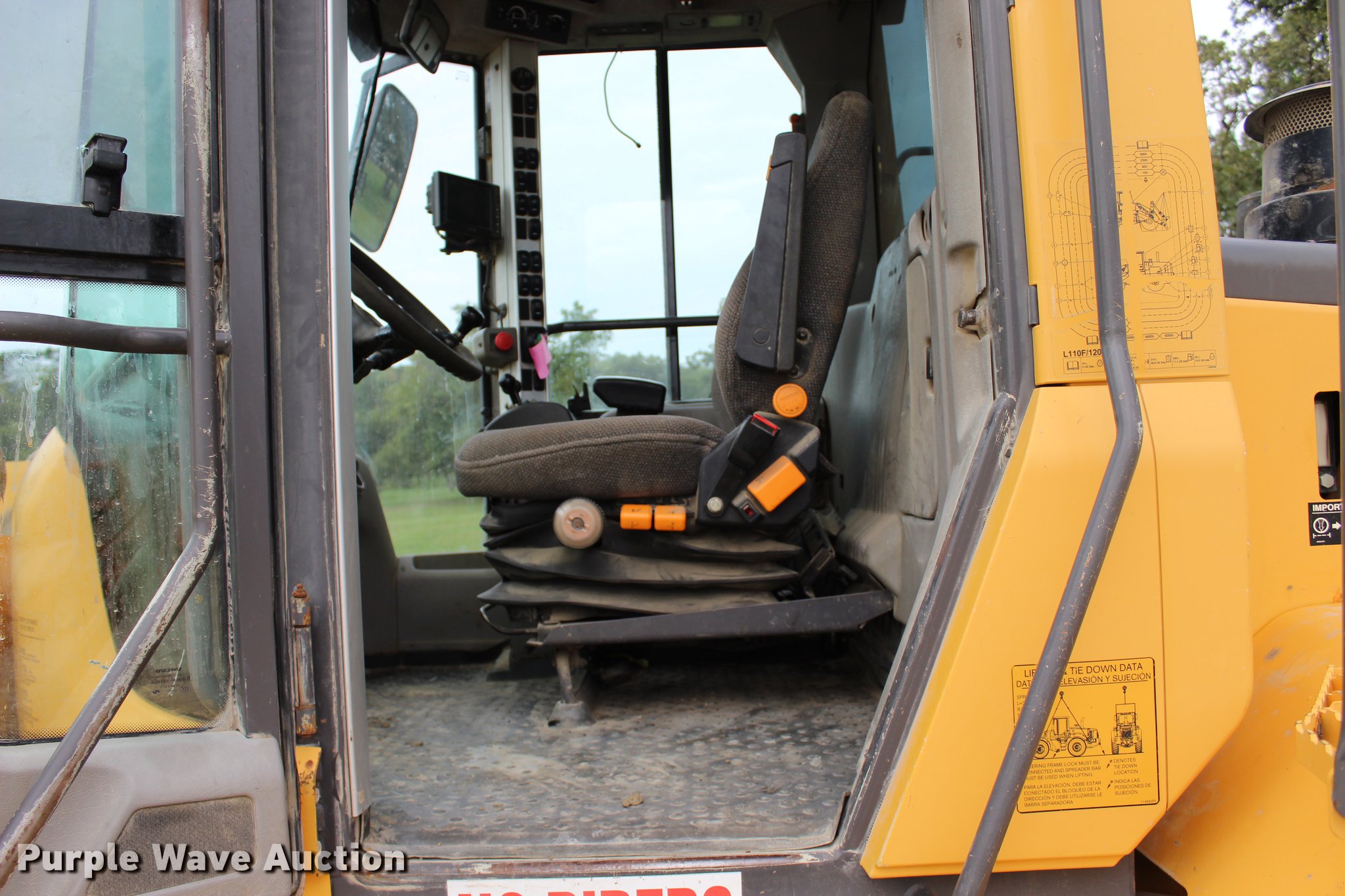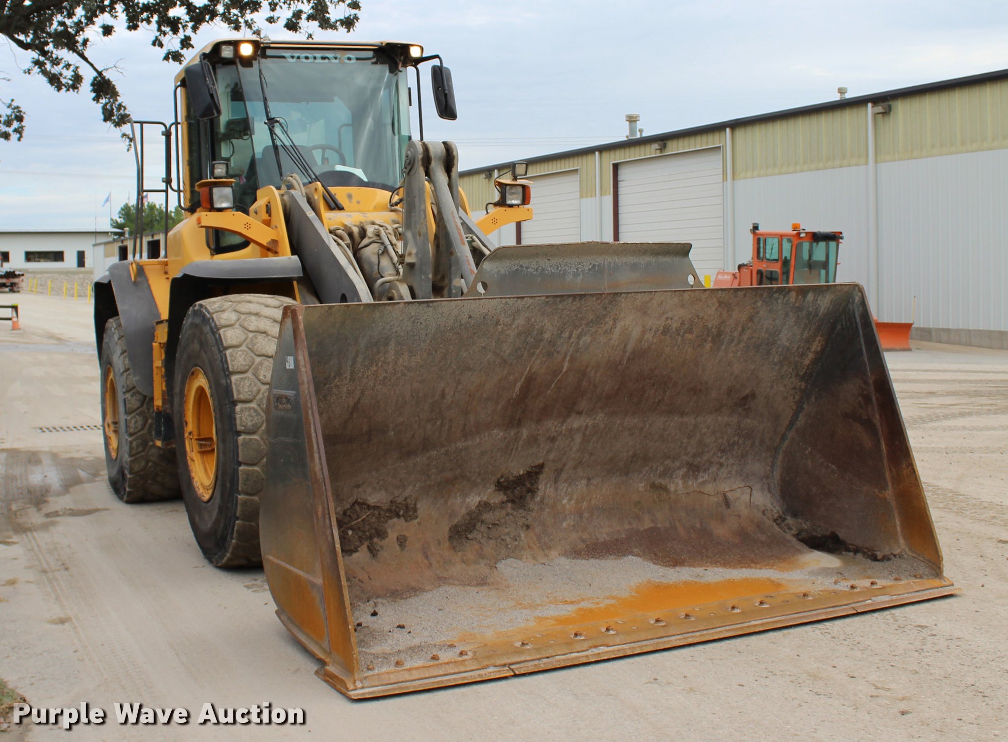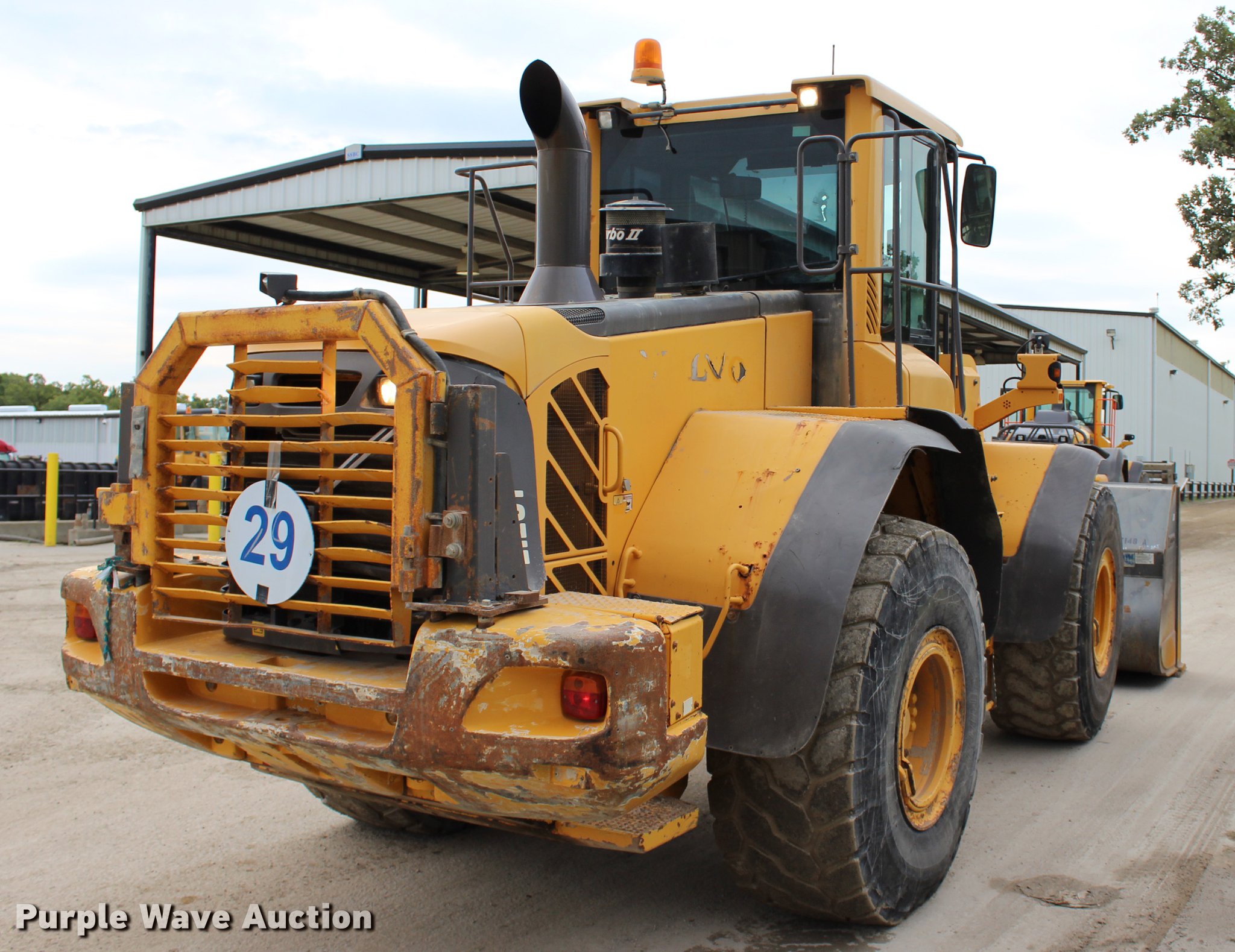 Purple Wave is selling a used Wheel Loader in Oklahoma. This item is a 2008 Volvo L120F wheel loader with the following: 29,597 hours on meter, Volvo D7ELAE3 7.14L six cylinder diesel engine, 217 HP, Powershift transmission, 4F-4R gears, Differential lock, EROPS, AC and heat, AM/FM/CD, Two-lever bucket controls, Suspension seat, Wipers, Backup camera, Forestry package, Volvo 115"W general purpose bucket, 4.58 cu. yd. capacity, Bolt-on cutting edge, Self-leveling, Counterweights, Wheel weights, 23.5R25 tires, Serial VCEL120FL0006566
