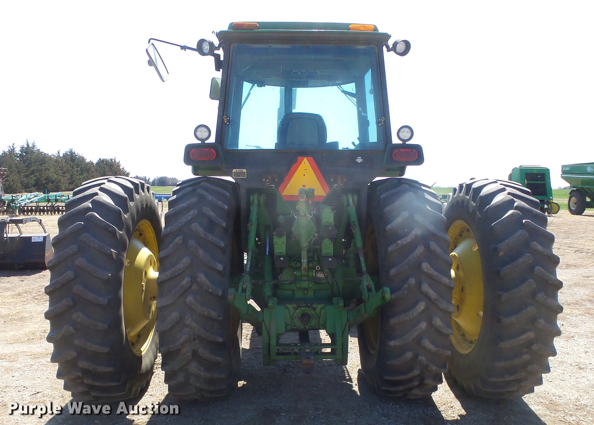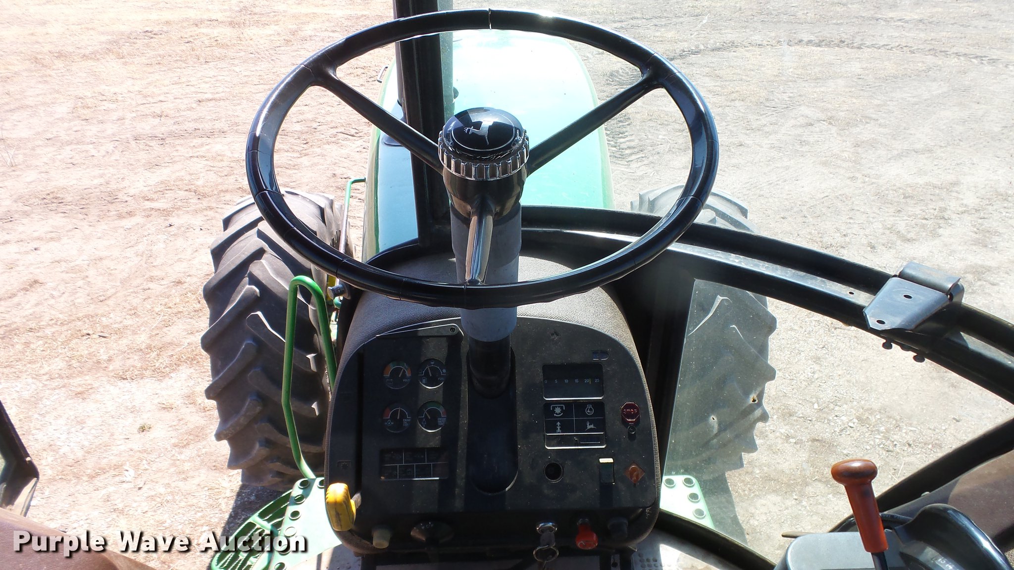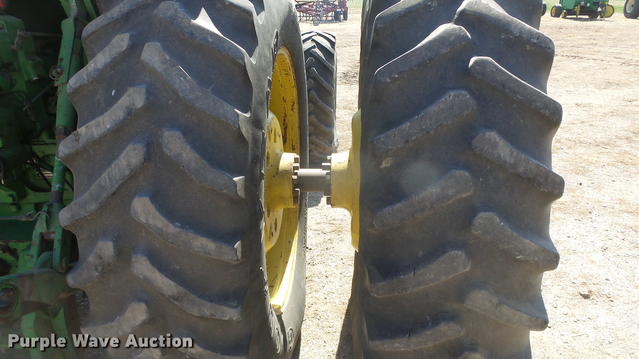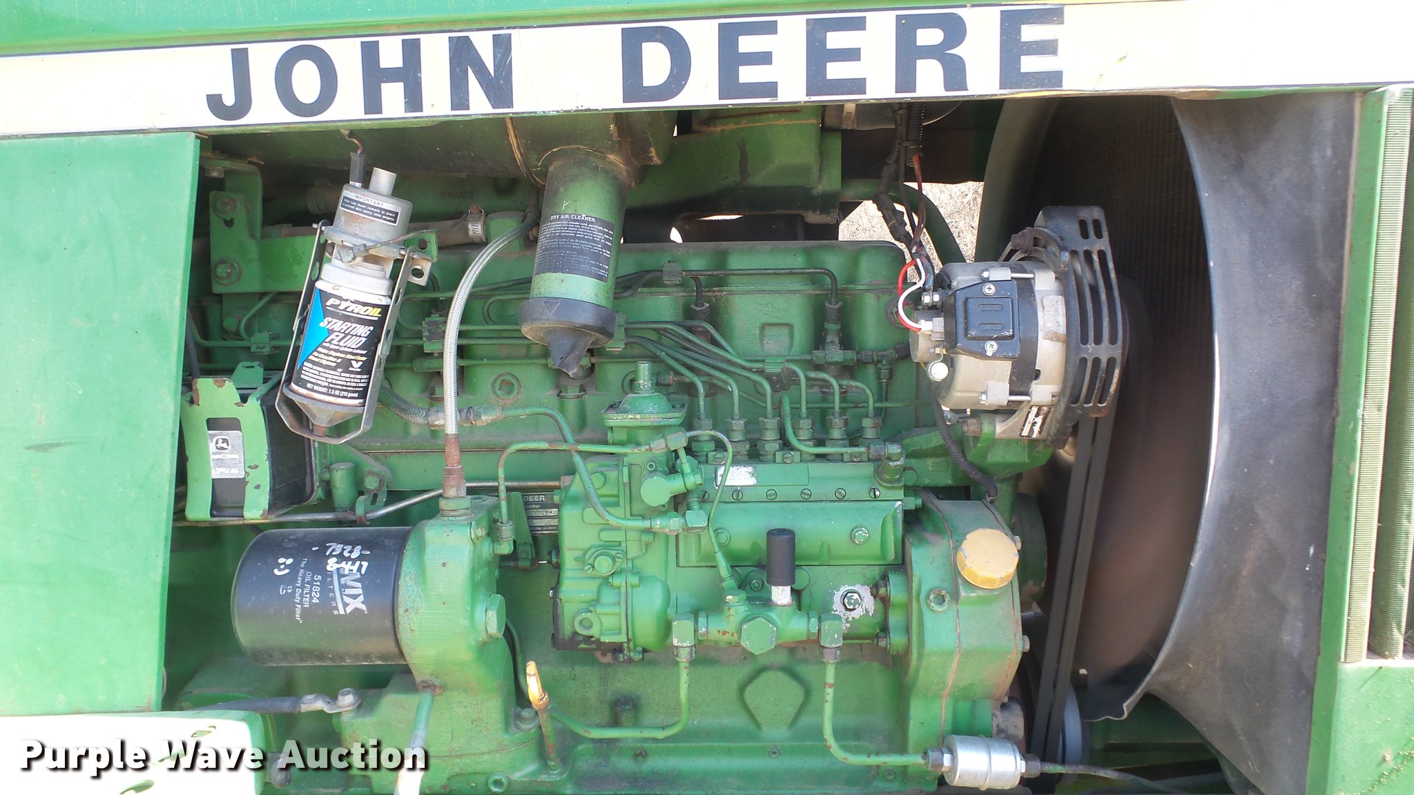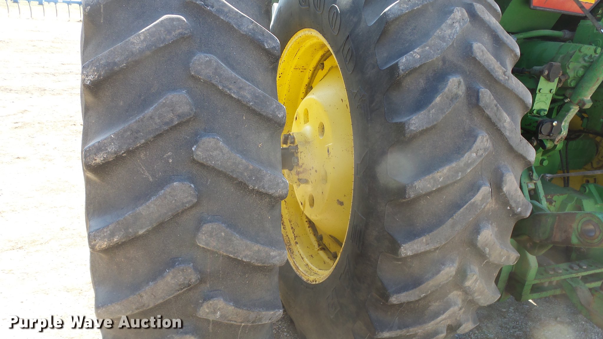 Purple Wave is selling a used Tractor in Kansas. This item is a 1983 John Deere 4650 MFWD tractor with the following: 7,435 hours on meter, John Deere 7.6L six cylinder diesel engine, John Deere Quad-Range partial powershift transmission, 16F-6R gears, AC and heat, AM/FM, Work lights, 1000 PTO, (4) rear hydraulic remote sets, Suitcase weights, 102 gallon fuel tank, 118" wheelbase, 16.9R28 front tires, 18.4R42 dual rear tires, Engine and clutch overhauled 10/2009, Serial RW4650P001037