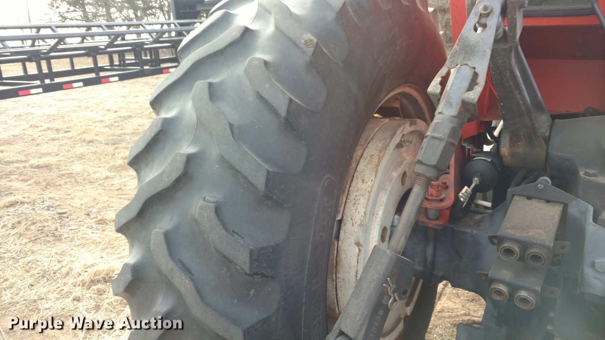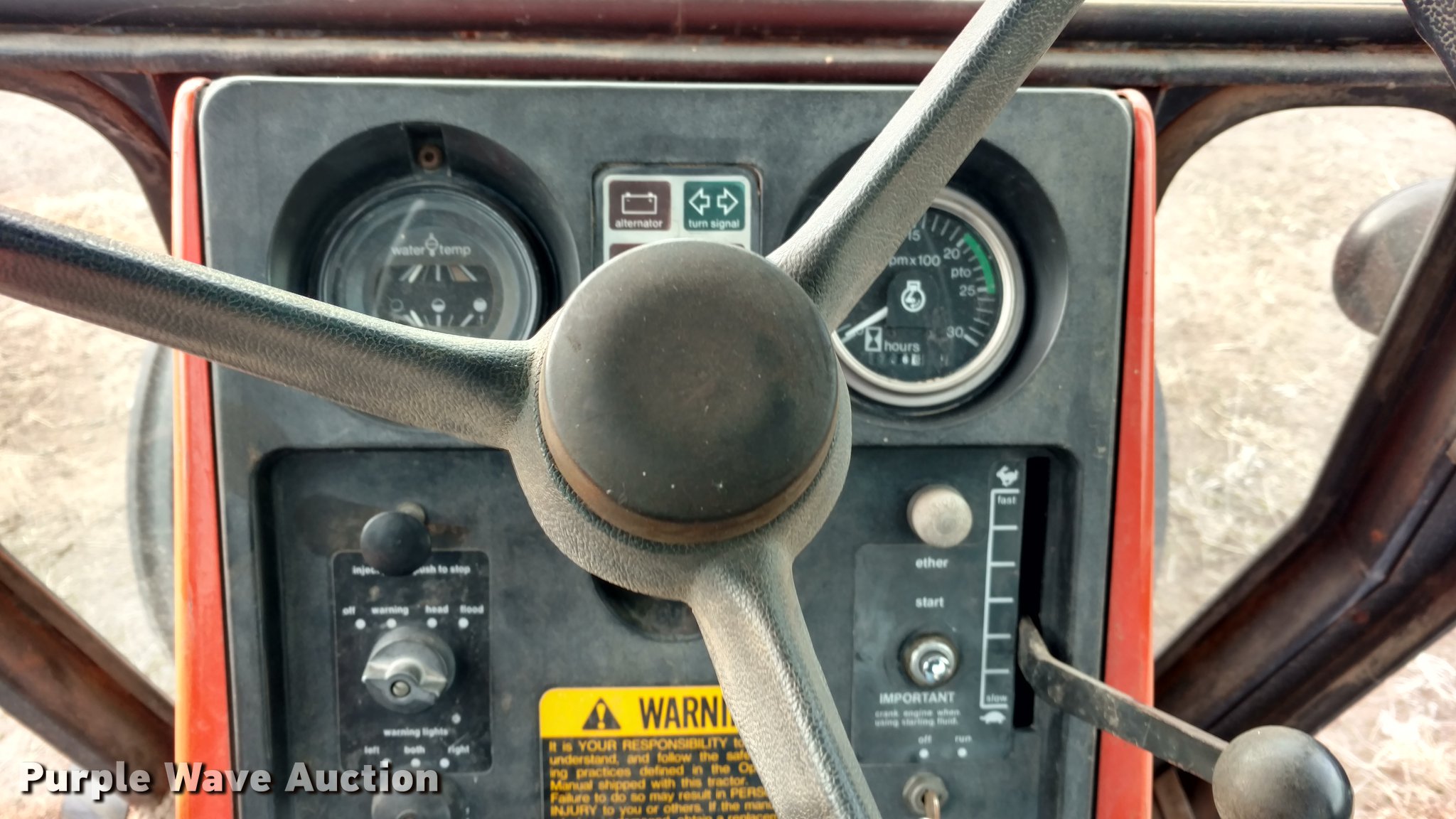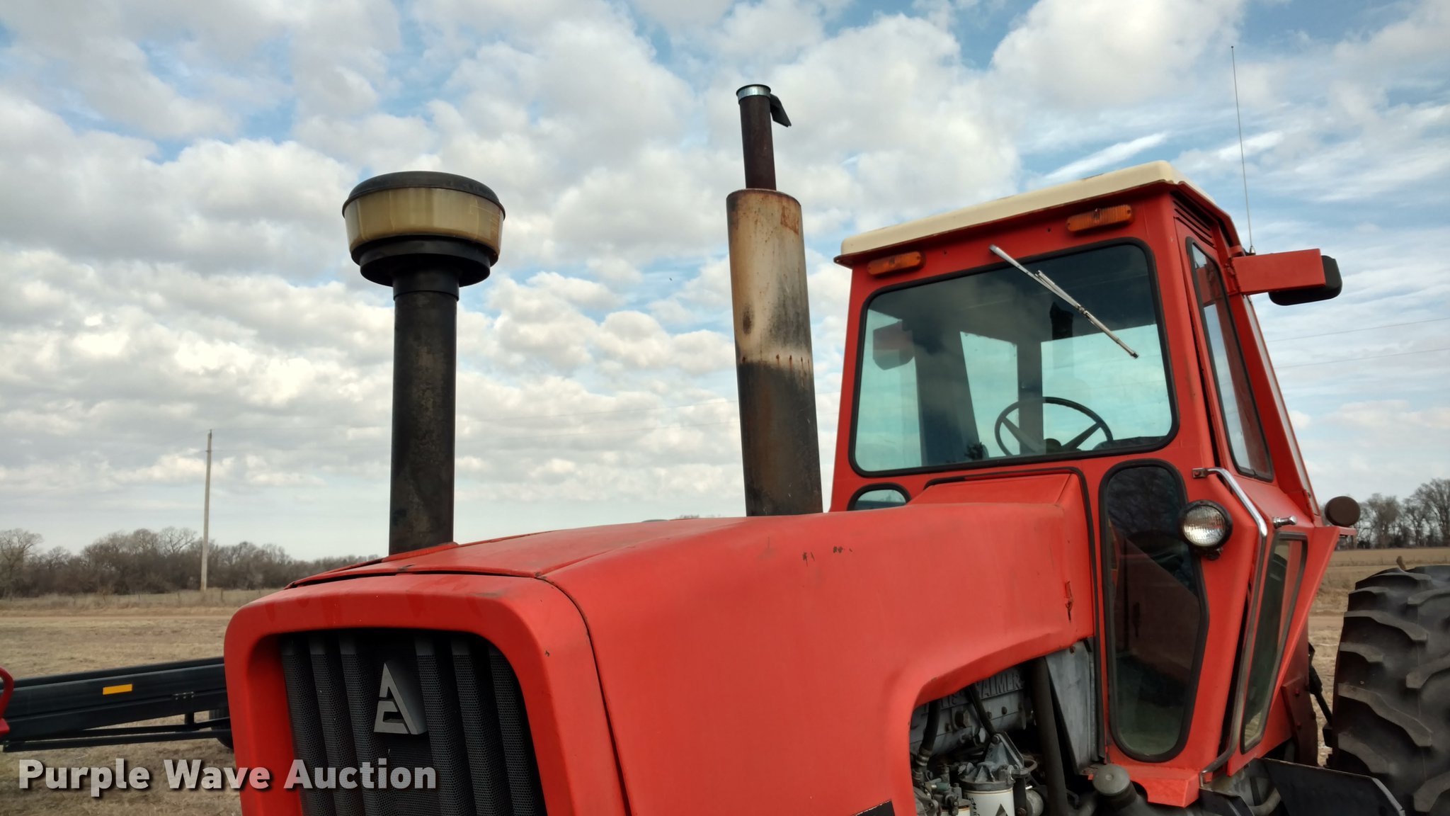 Purple Wave is selling a used Tractor in Kansas. This item is a Allis Chalmers 7060 tractor with the following: 4,786 hours on first meter, 448 hours on second meter, Allis Chalmers 7.0L six cylinder diesel engine, 5F-1R gears, Enclosed cab, Work lights, 540 PTO, (2) rear hydraulic remotes, Rear wheel weights, 11.00-16 front tires, 18.4-38 rear tires, Door handle inoperable