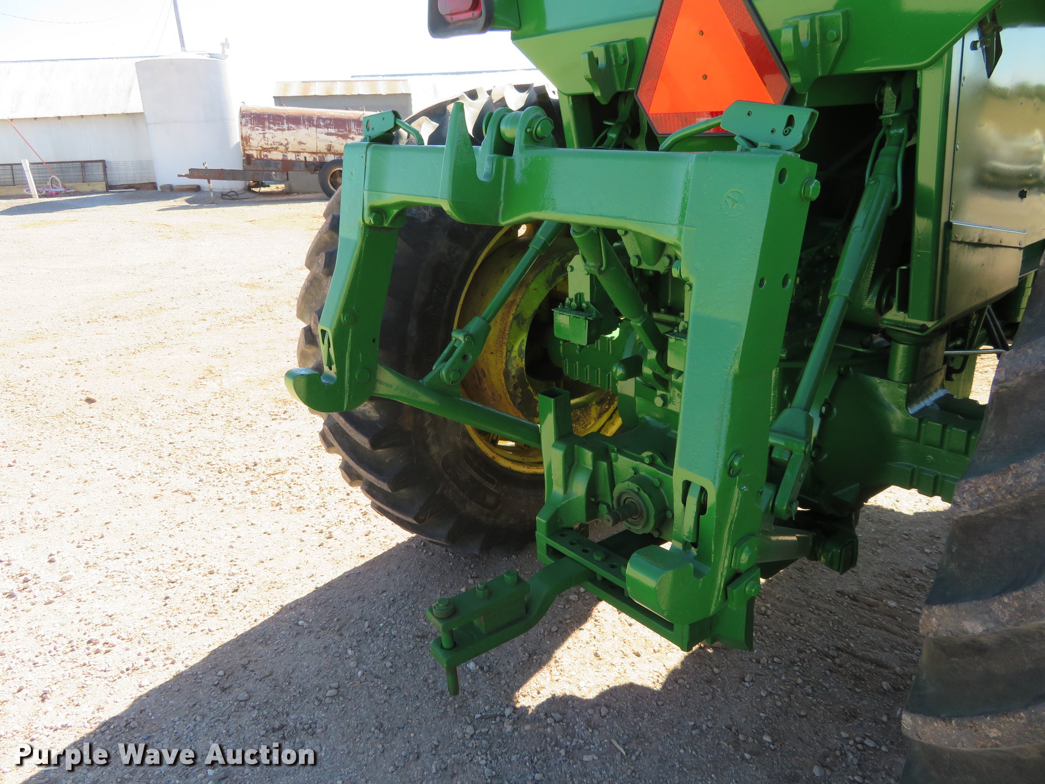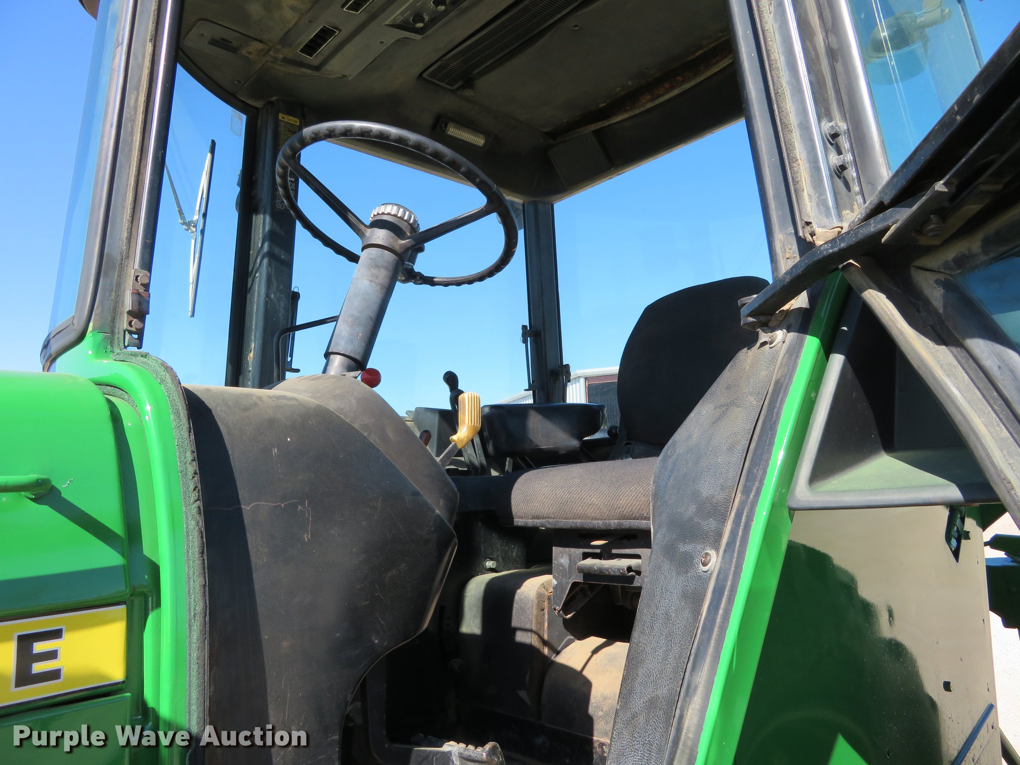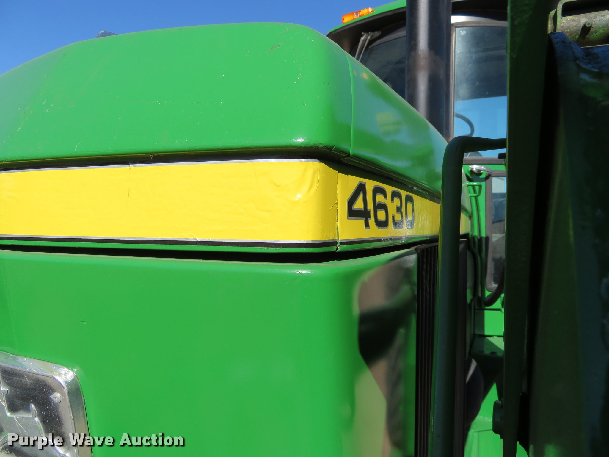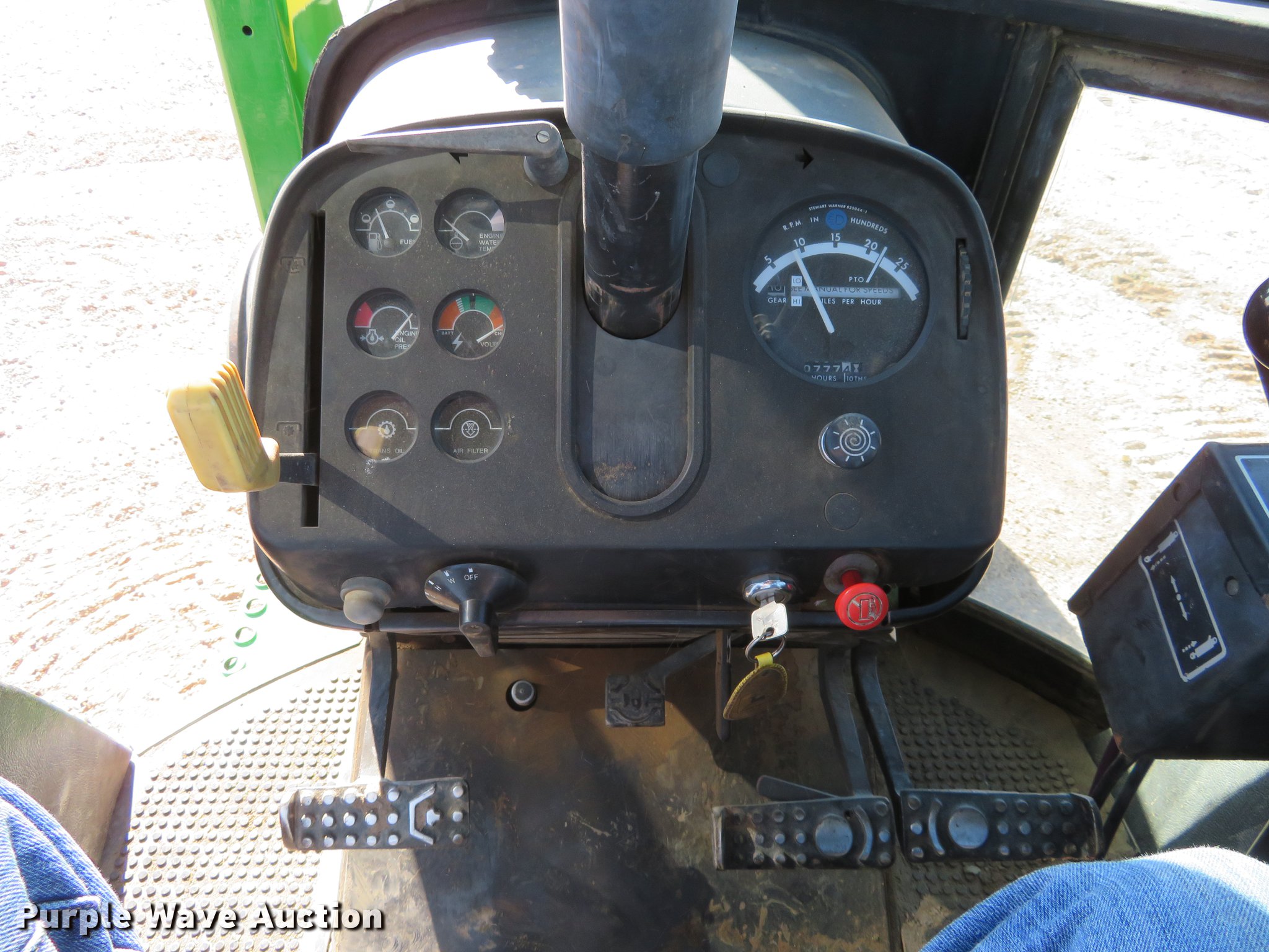 Purple Wave is selling a used Tractor in Oklahoma. This item is a 1976 John Deere 4630 tractor with the following: 7,774 hours on meter, Six cylinder diesel engine, Quad-Range transmission, 16F-6R gears, AC and heat, Tilt steering wheel, Suspension seat, John Deere 260 loader, Bucket, Bale forks, Quick attach, Self-leveling, Joystick loader controls, Three point, Quick attach, 1000 PTO, Draw bar, Front hydraulic remote, (3) rear hydraulic remotes, Rear wheel weights, 11.00R16 front tires, 18.4R38 rear tires, Serial 4630H019761R