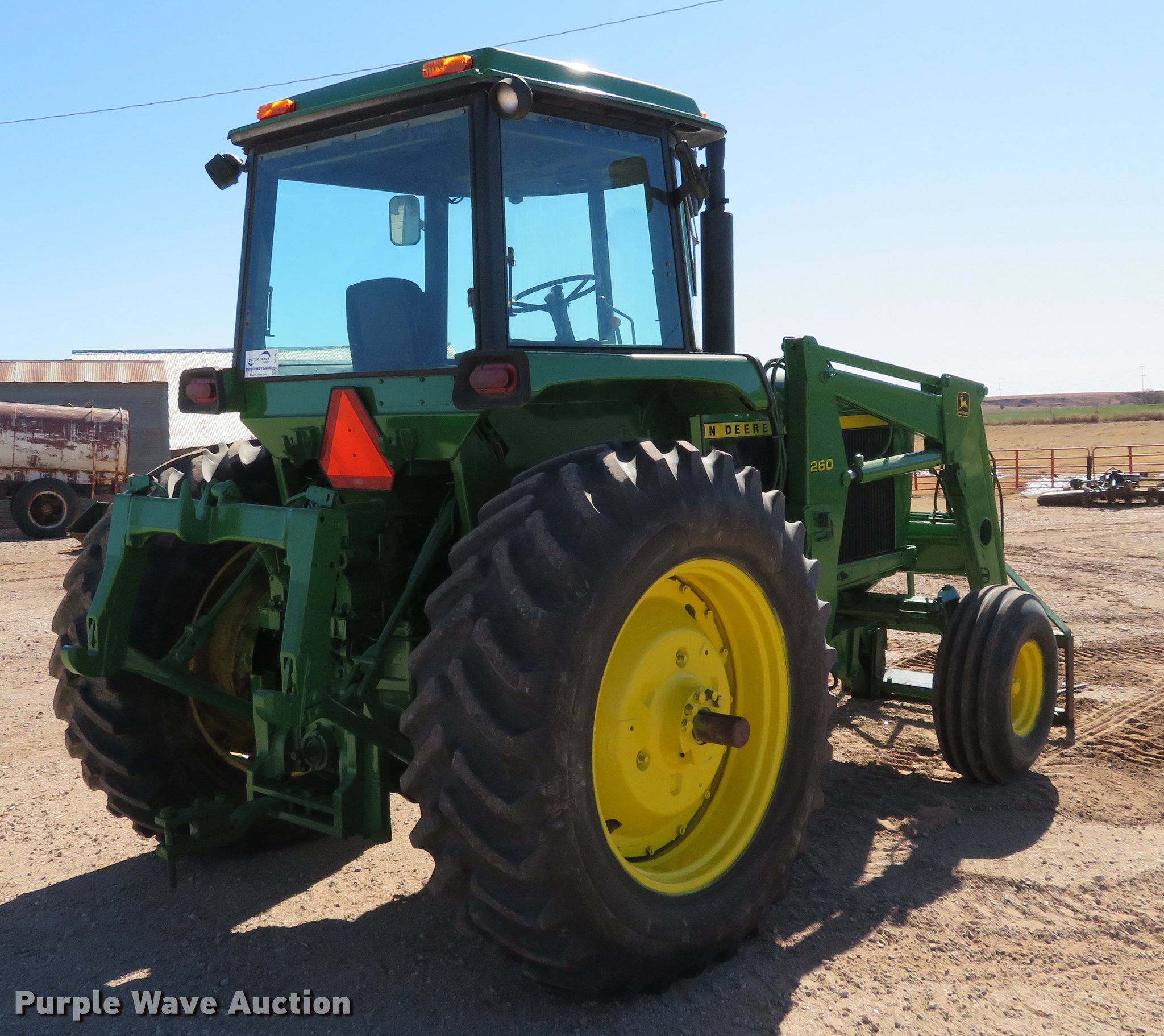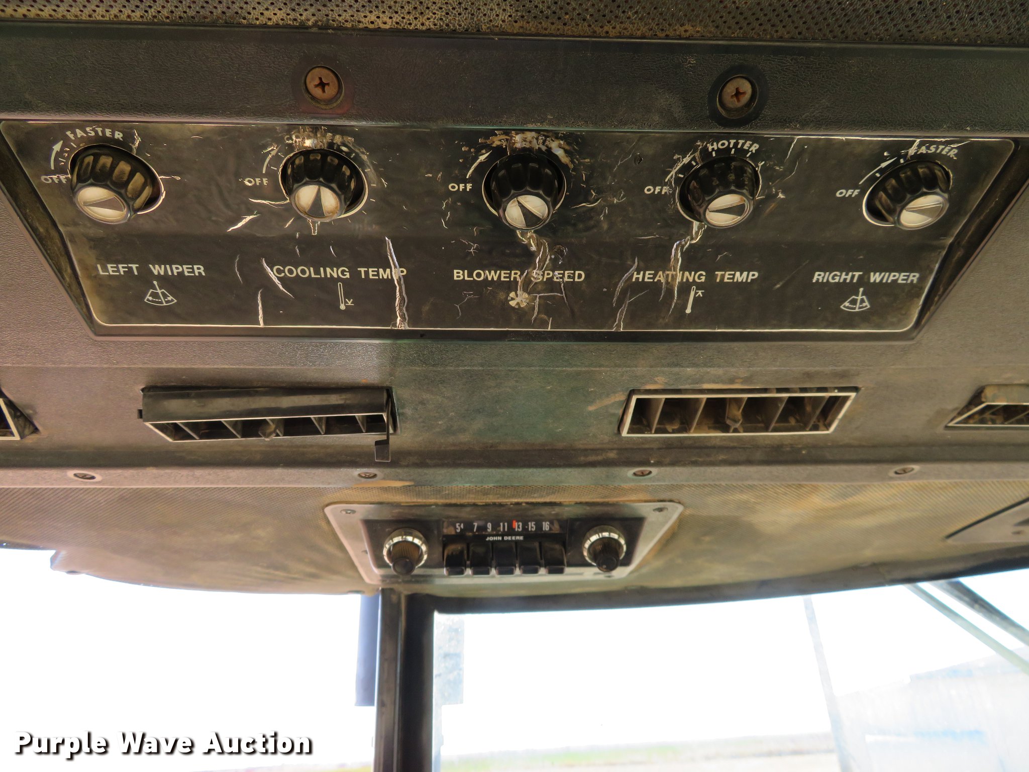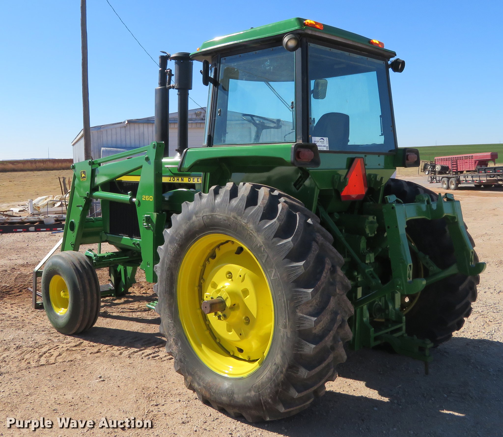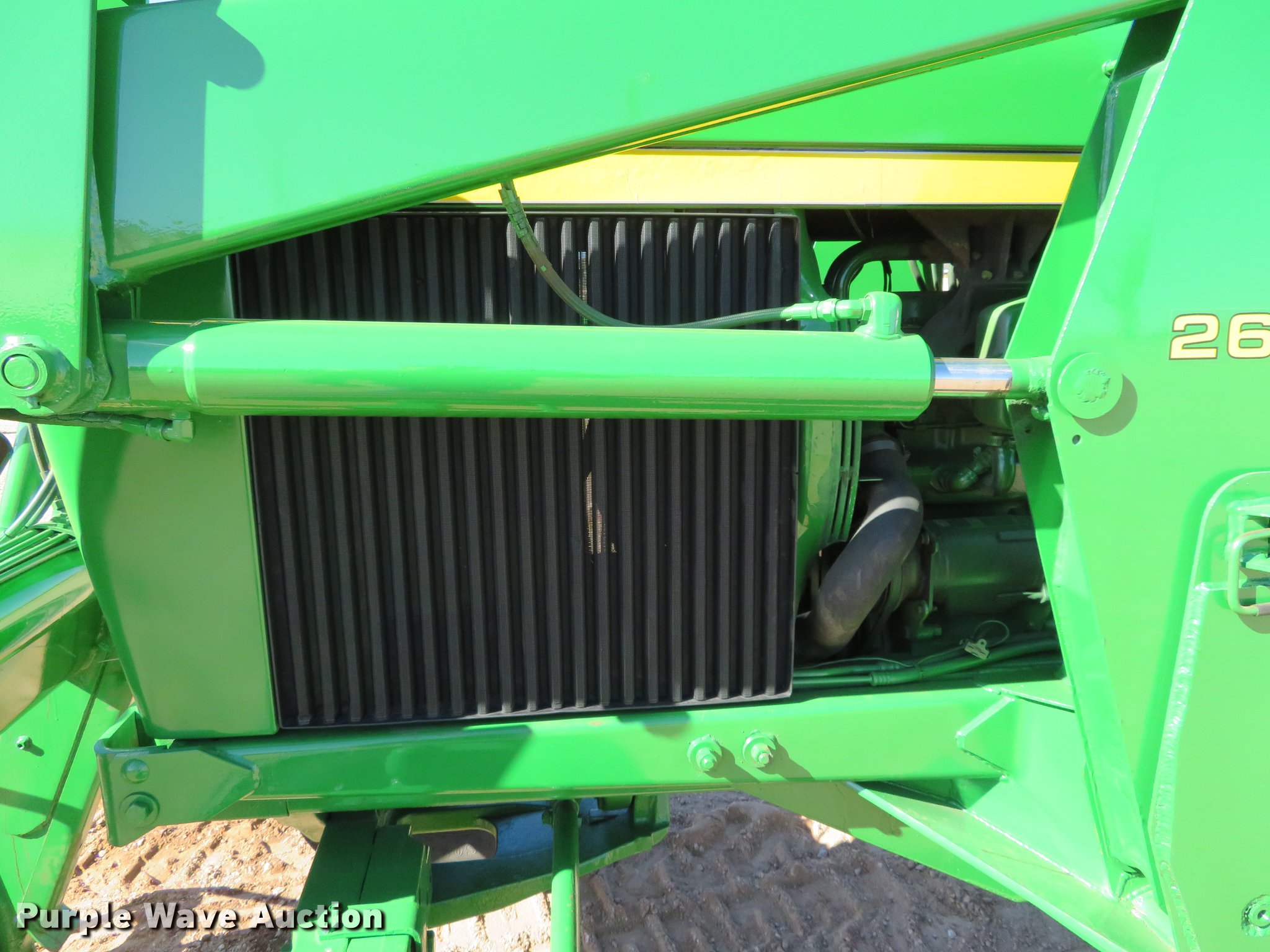 Purple Wave is selling a used Tractor in Oklahoma. This item is a 1976 John Deere 4630 tractor with the following: 7,774 hours on meter, Six cylinder diesel engine, Quad-Range transmission, 16F-6R gears, AC and heat, Tilt steering wheel, Suspension seat, John Deere 260 loader, Bucket, Bale forks, Quick attach, Self-leveling, Joystick loader controls, Three point, Quick attach, 1000 PTO, Draw bar, Front hydraulic remote, (3) rear hydraulic remotes, Rear wheel weights, 11.00R16 front tires, 18.4R38 rear tires, Serial 4630H019761R
