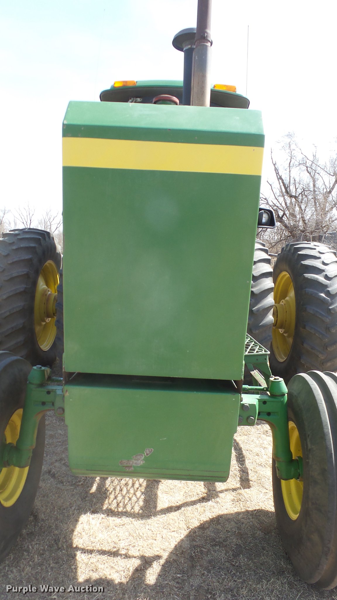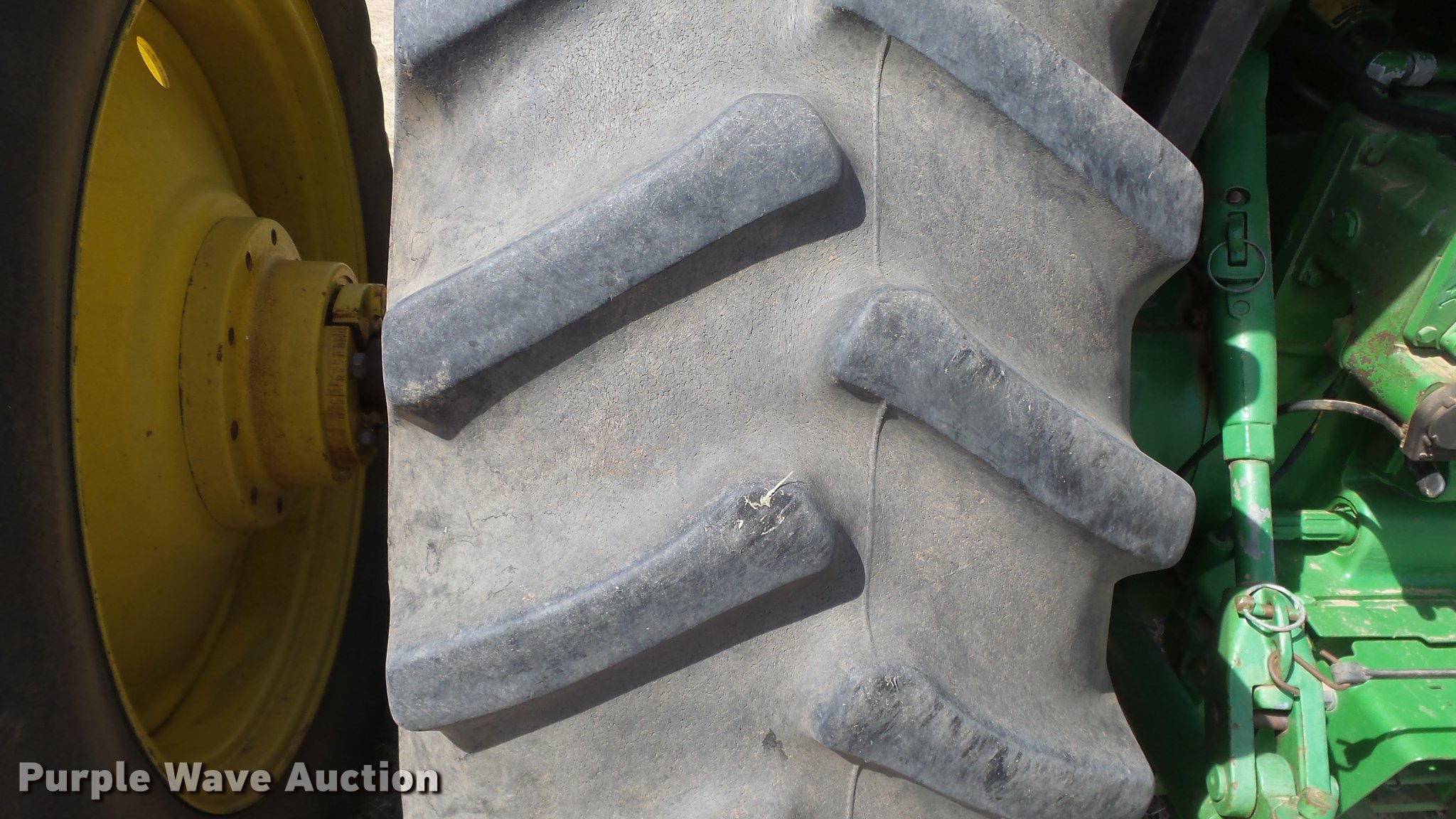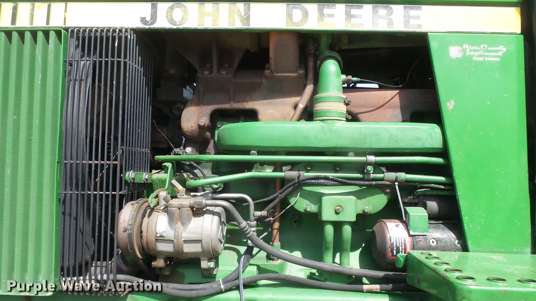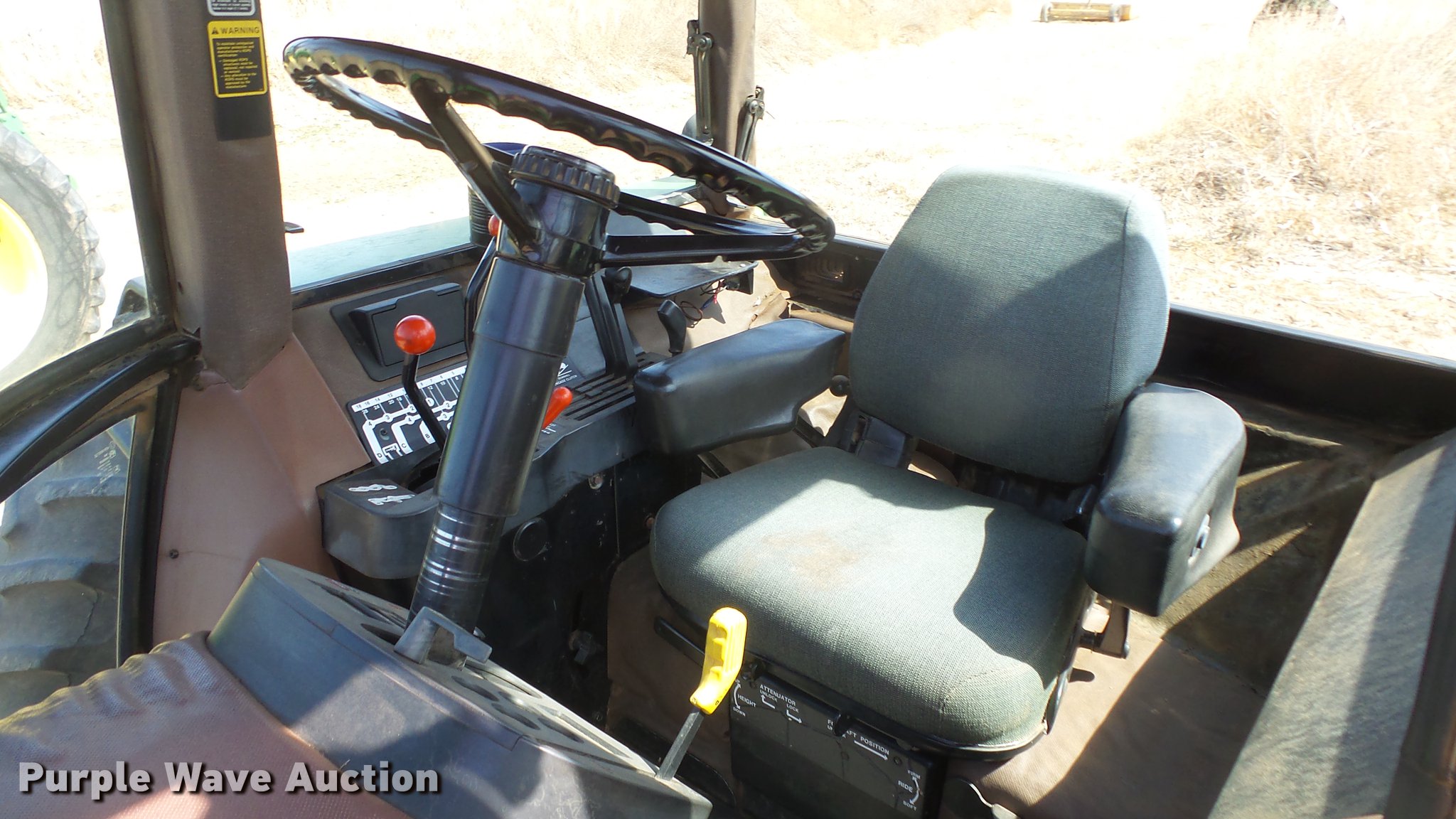 Purple Wave is selling a used Tractor in Kansas. This item is a 1988 John Deere 4450 tractor with the following: 6,600 hours on meter, John Deere 6466TR-16 six cylinder turbo diesel engine, Serial RG6466T339285, Partial powershift transmission, 16F-6R gears, AC and heat, Tilt steering wheel, AM/FM, Suspension seat, Block heater, CB radio, Three point, Top link, Seven pin outlet, 1000 PTO, (3) rear hydraulic remote sets, Inner rear wheel weight, 11.00-16SL front tires, 18.4R38 dual rear tires, Serial RW4450H028403
