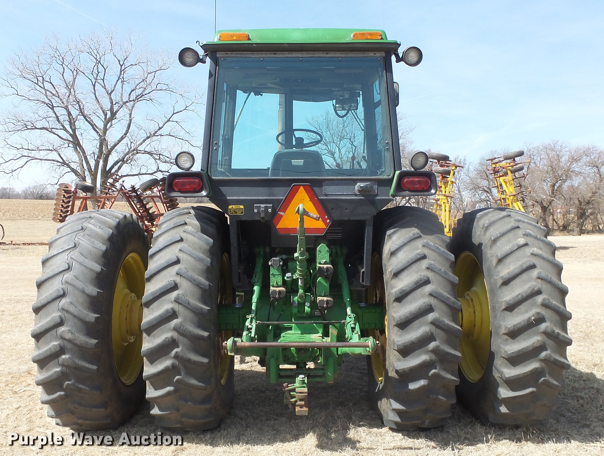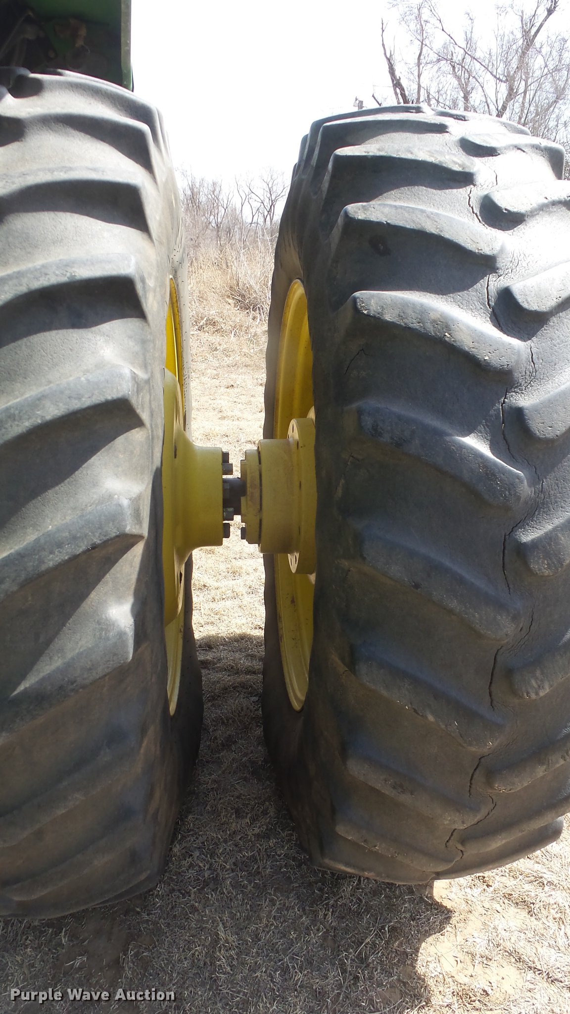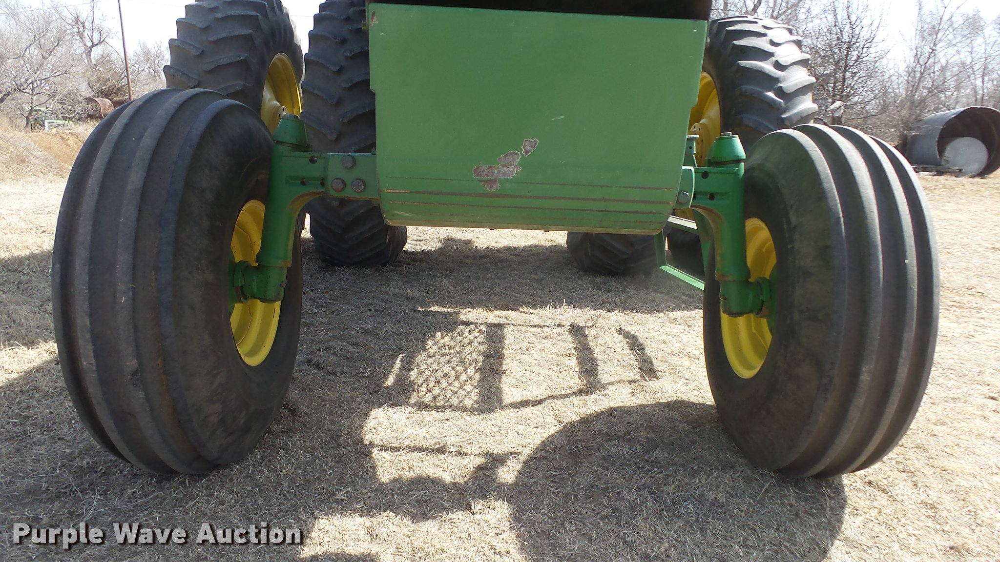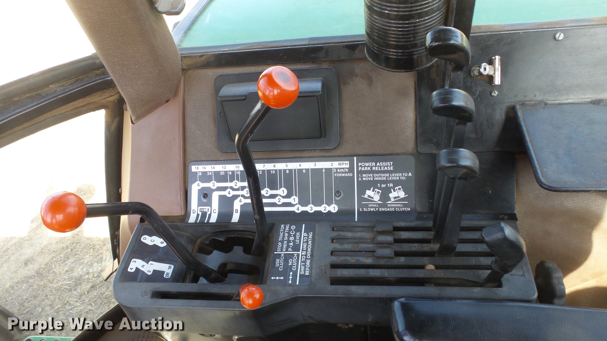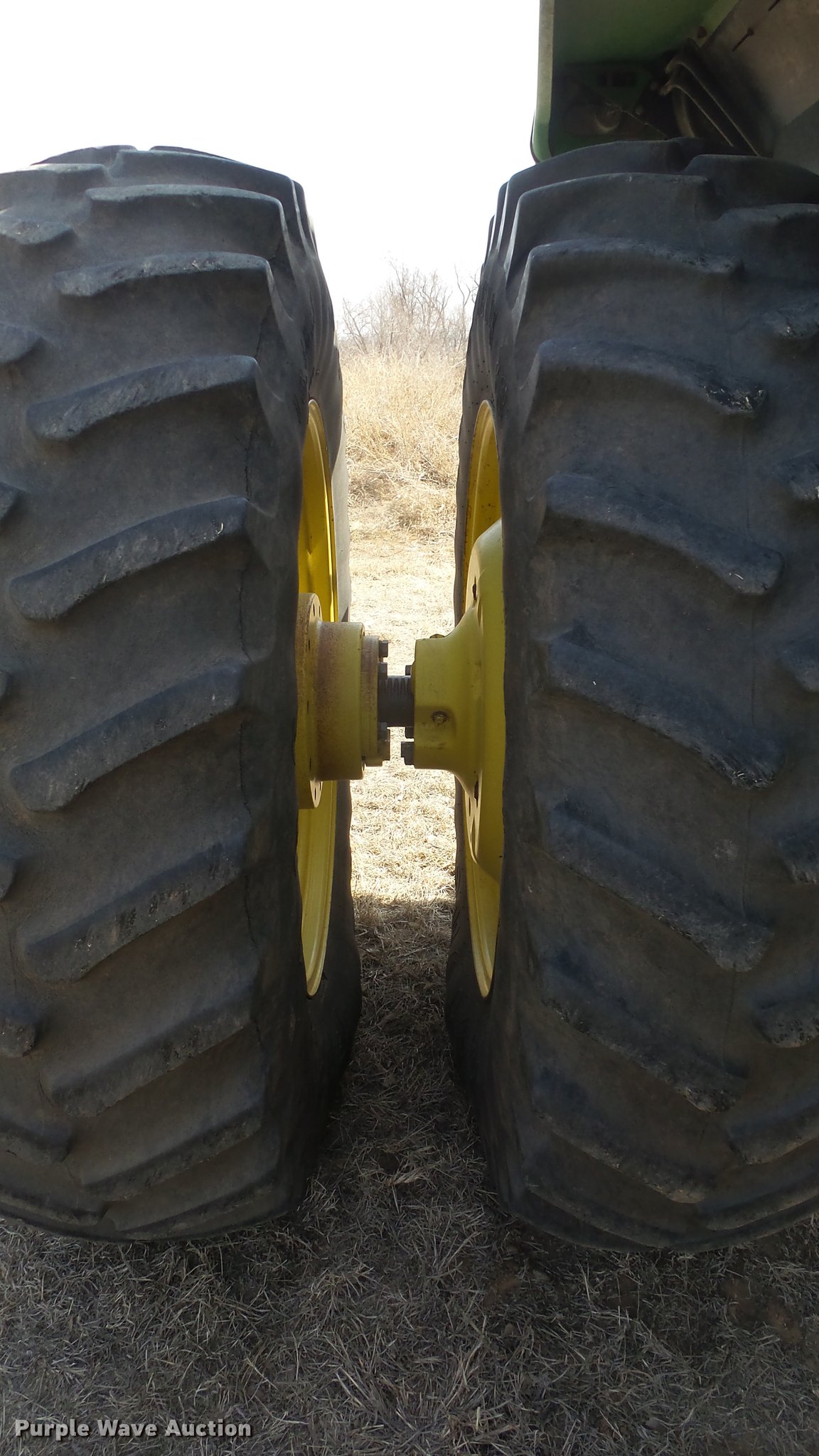 Purple Wave is selling a used Tractor in Kansas. This item is a 1988 John Deere 4450 tractor with the following: 6,600 hours on meter, John Deere 6466TR-16 six cylinder turbo diesel engine, Serial RG6466T339285, Partial powershift transmission, 16F-6R gears, AC and heat, Tilt steering wheel, AM/FM, Suspension seat, Block heater, CB radio, Three point, Top link, Seven pin outlet, 1000 PTO, (3) rear hydraulic remote sets, Inner rear wheel weight, 11.00-16SL front tires, 18.4R38 dual rear tires, Serial RW4450H028403