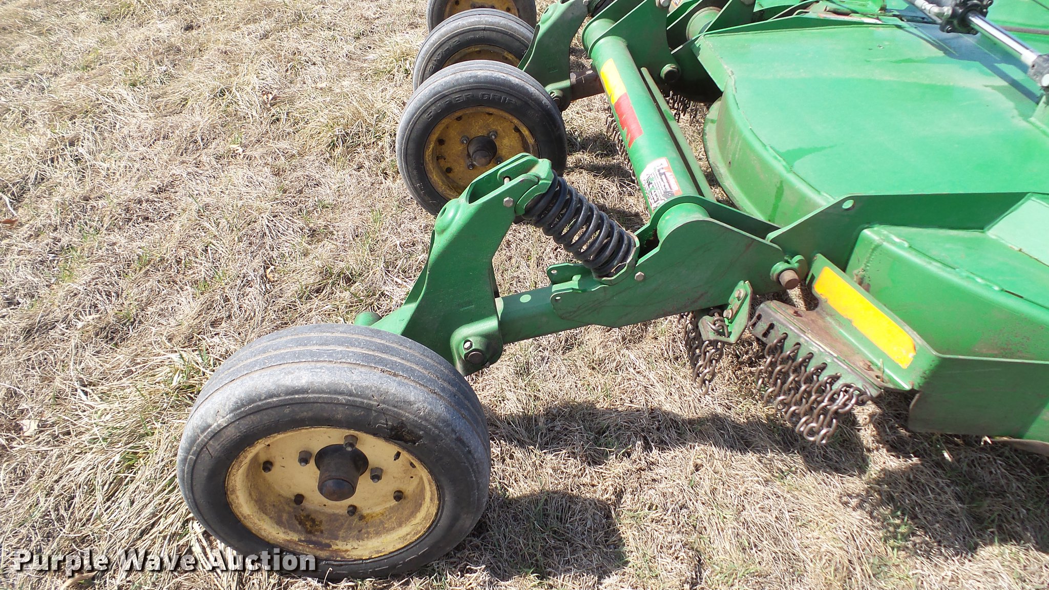 2011 John Deere HX15 batwing rotary mower. 15'W, Hydraulic lift and fold, 1000 PTO, Pin hitch, Jack stand, 21x7-12 tires, Serial P0HX15FEBT029764. Seba Brothers Farms Inc.. 2111 E State Route Y. Cleveland, MO 64734