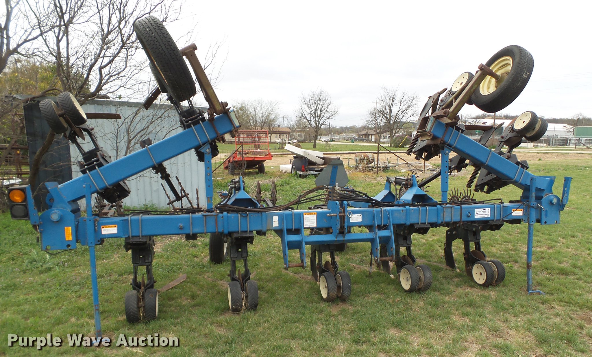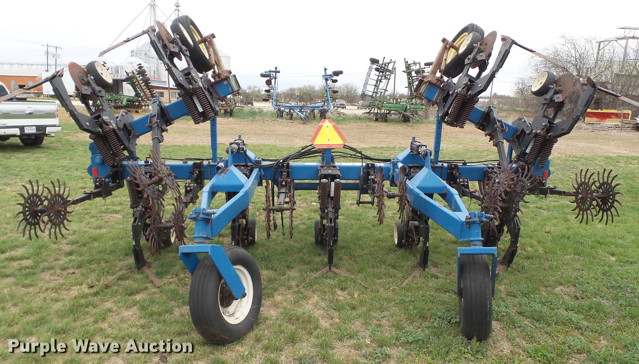Purple Wave is selling a used Row Crop Cultivator in Texas. This item is a Kinze row crop cultivator with the following: Eight row units, 38" row spacing, Row cleaners, Single disk openers, Gauge wheels, Rolling pickers/treader, Liquid fertilizer, Hydraulic fold, Transport lights, Three point
