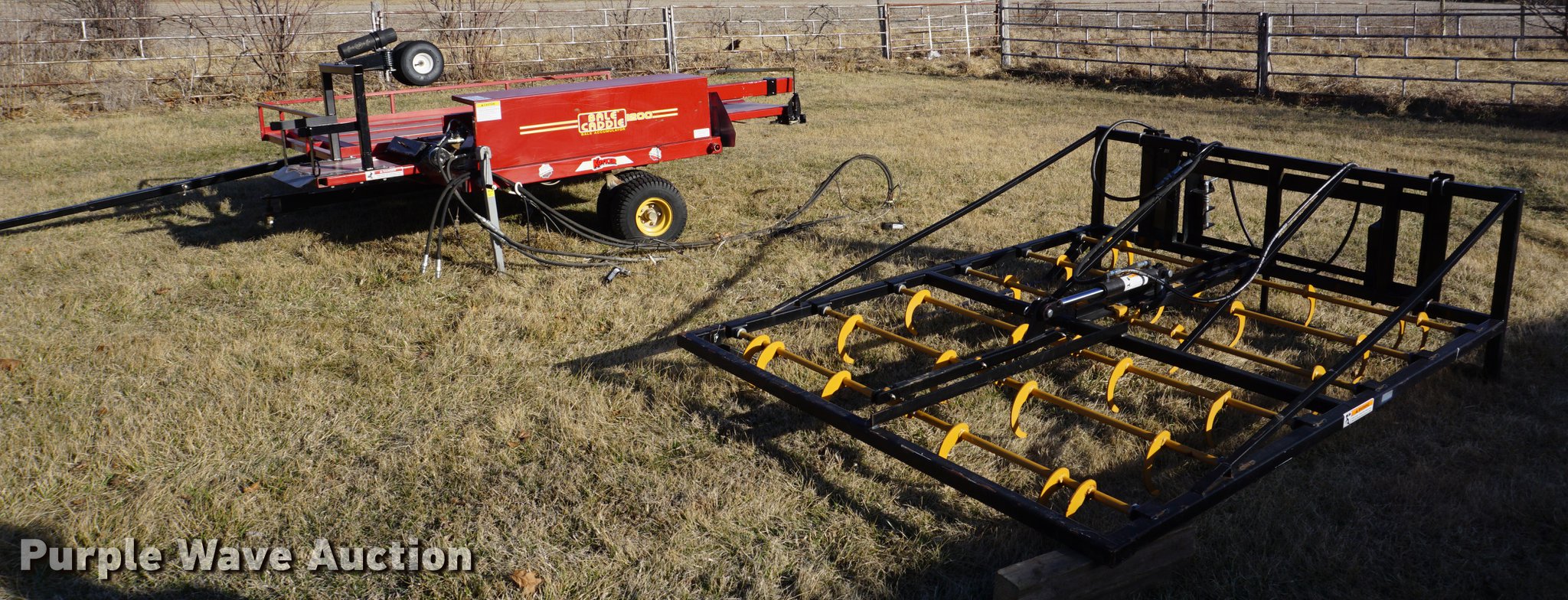 Purple Wave is selling a used Hay Handling in Kansas. This item is a Koyker 1200 bale accumulator with bale grabber with the following: 12 bale capacity, 13x8.50-8 tires, Bale grabber, 12 bale capacity, Fits John Deere loader coupler, Serial 134497