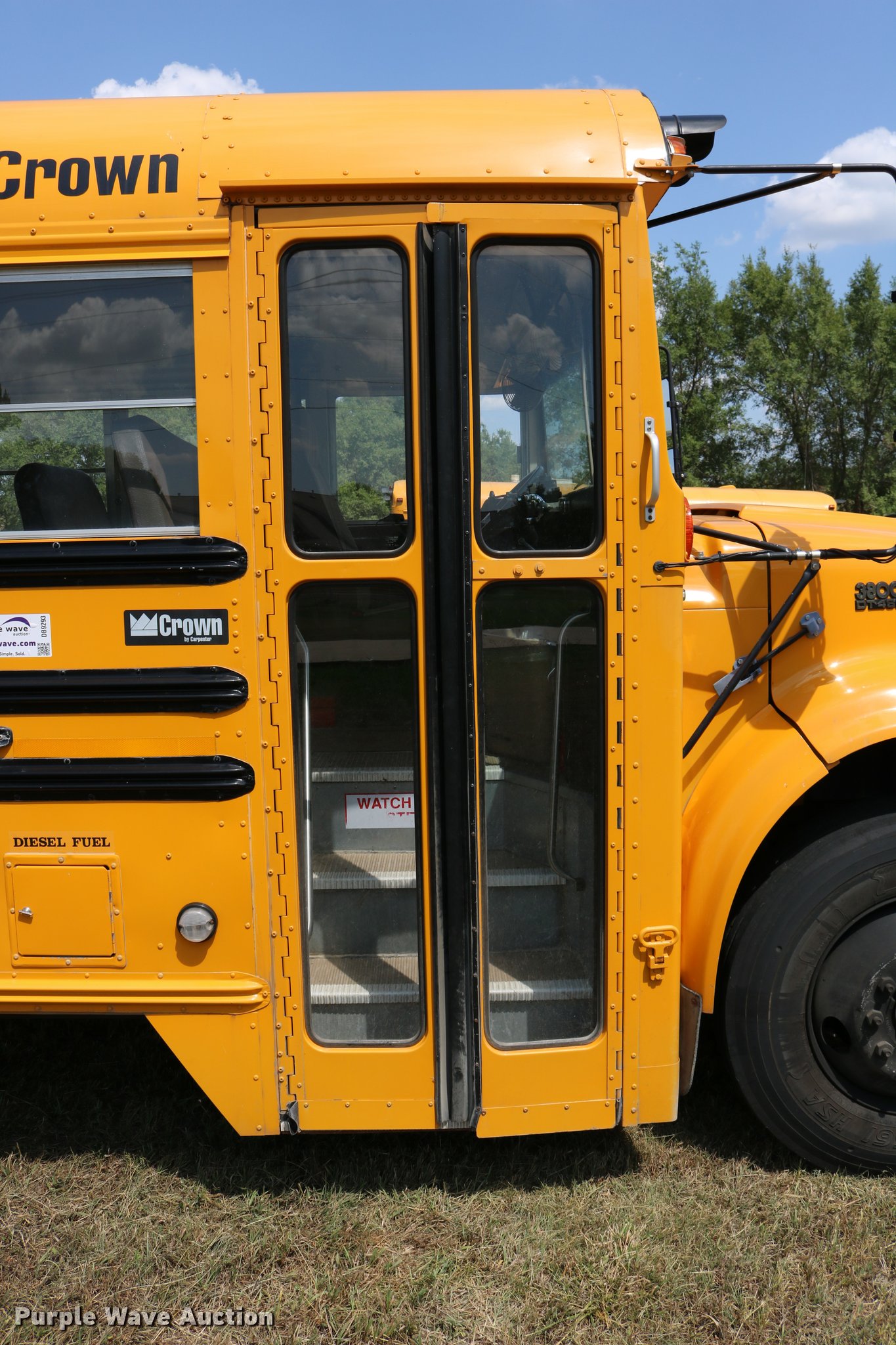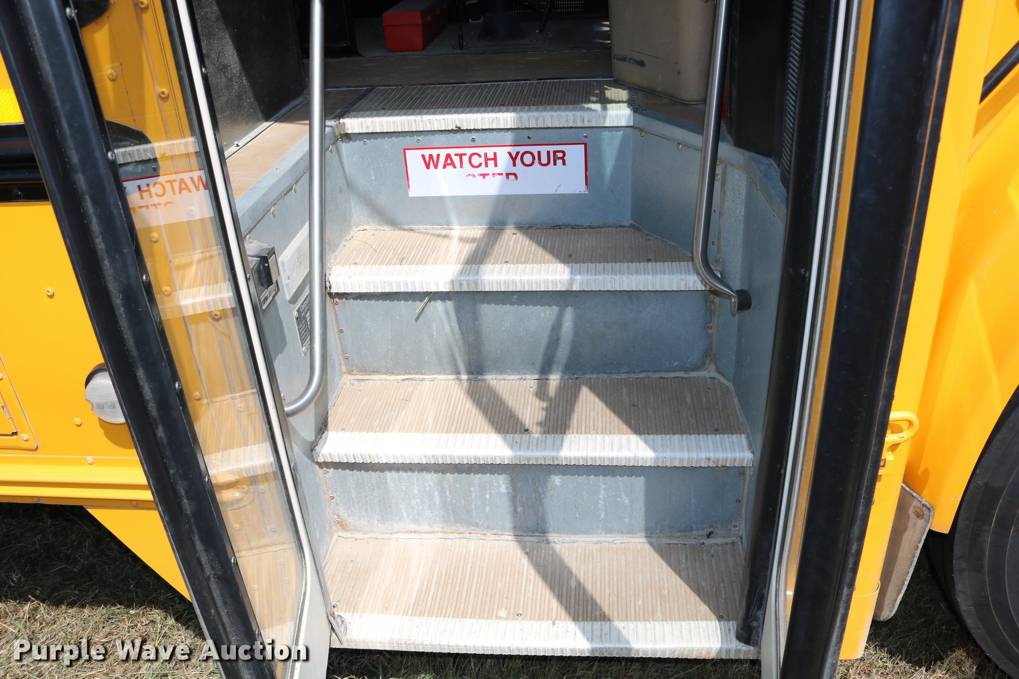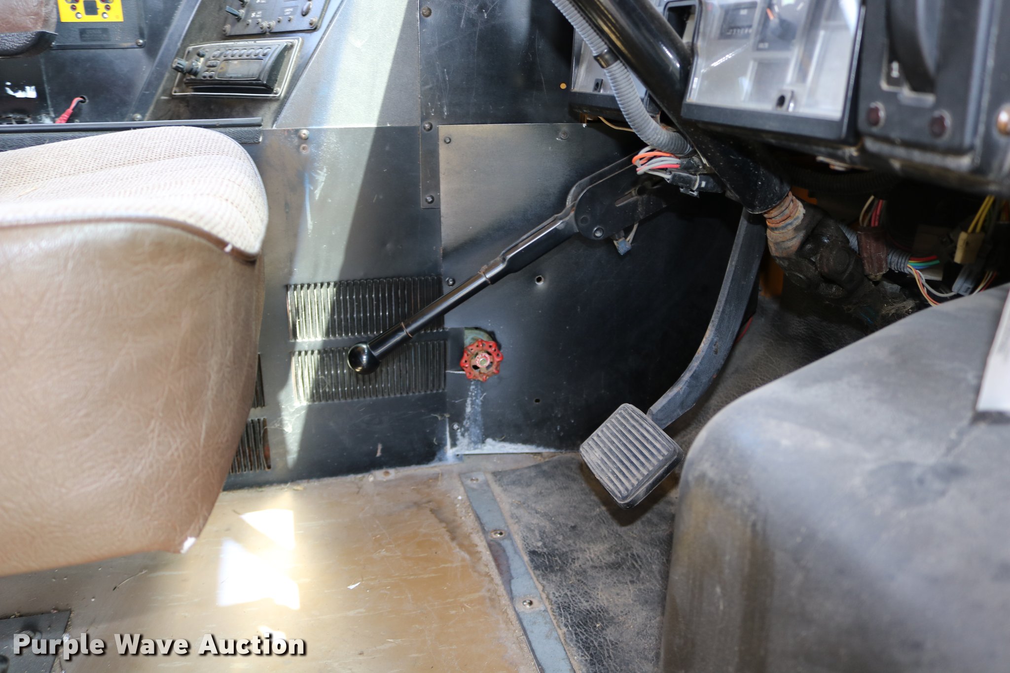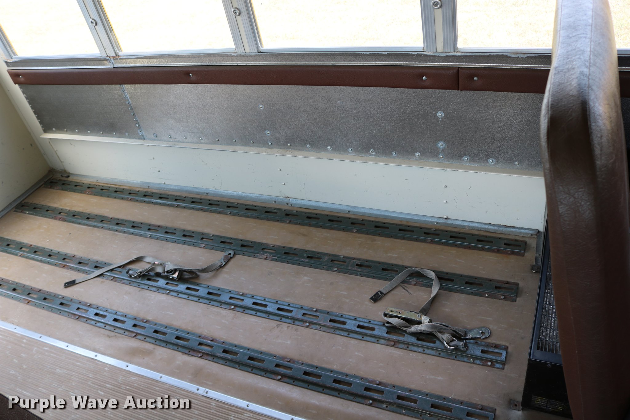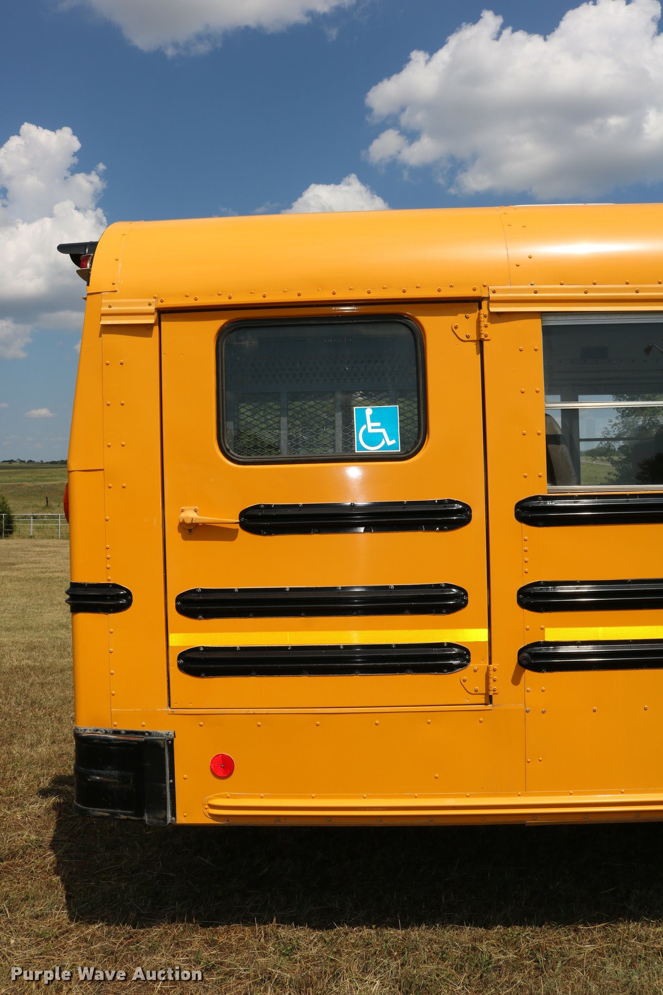 Purple Wave is selling a used Bus in Kansas. This item is a 1997 International 3800 bus with the following: 33,081 miles on odometer, International DT466 7.6L L6 turbo diesel engine, Automatic transmission, Single axle, Heat, AM/FM, Heated mirrors, 48 passenger capacity, Braul L208U64AR5 Series 5 wheel chair lift, Serial 2211, (2) wheel chair tie downs, Ceiling, rear, and side emergency exits, Emergency door alarms, Lighted stop sign, Beacon light, Block heater, Backup alarm, Front and rear tow hooks, Approximately 254" wheelbase, Spring suspension, Hydraulic brakes, 10R22.5 tires, GVWR 29,000 lbs, Odometer replaced at 80,287 miles, Two way radio is not included, Engine issues, Engine knock, Possible down draft tube, Unit# 96-1