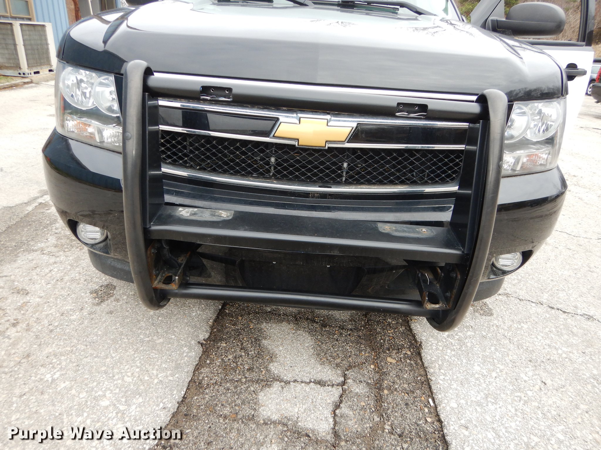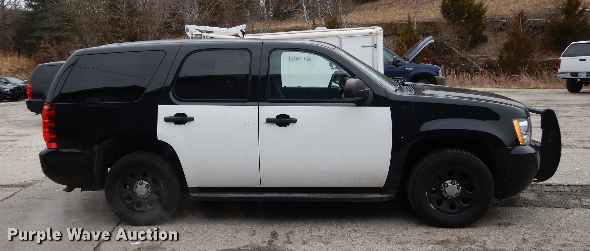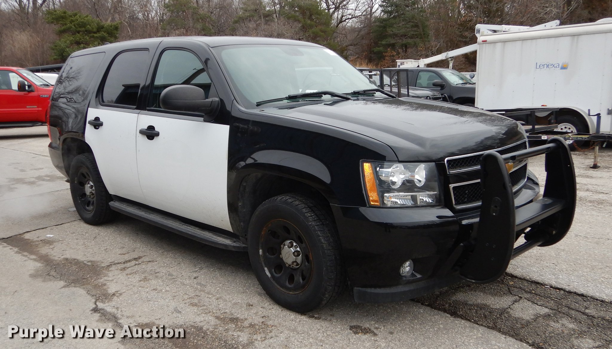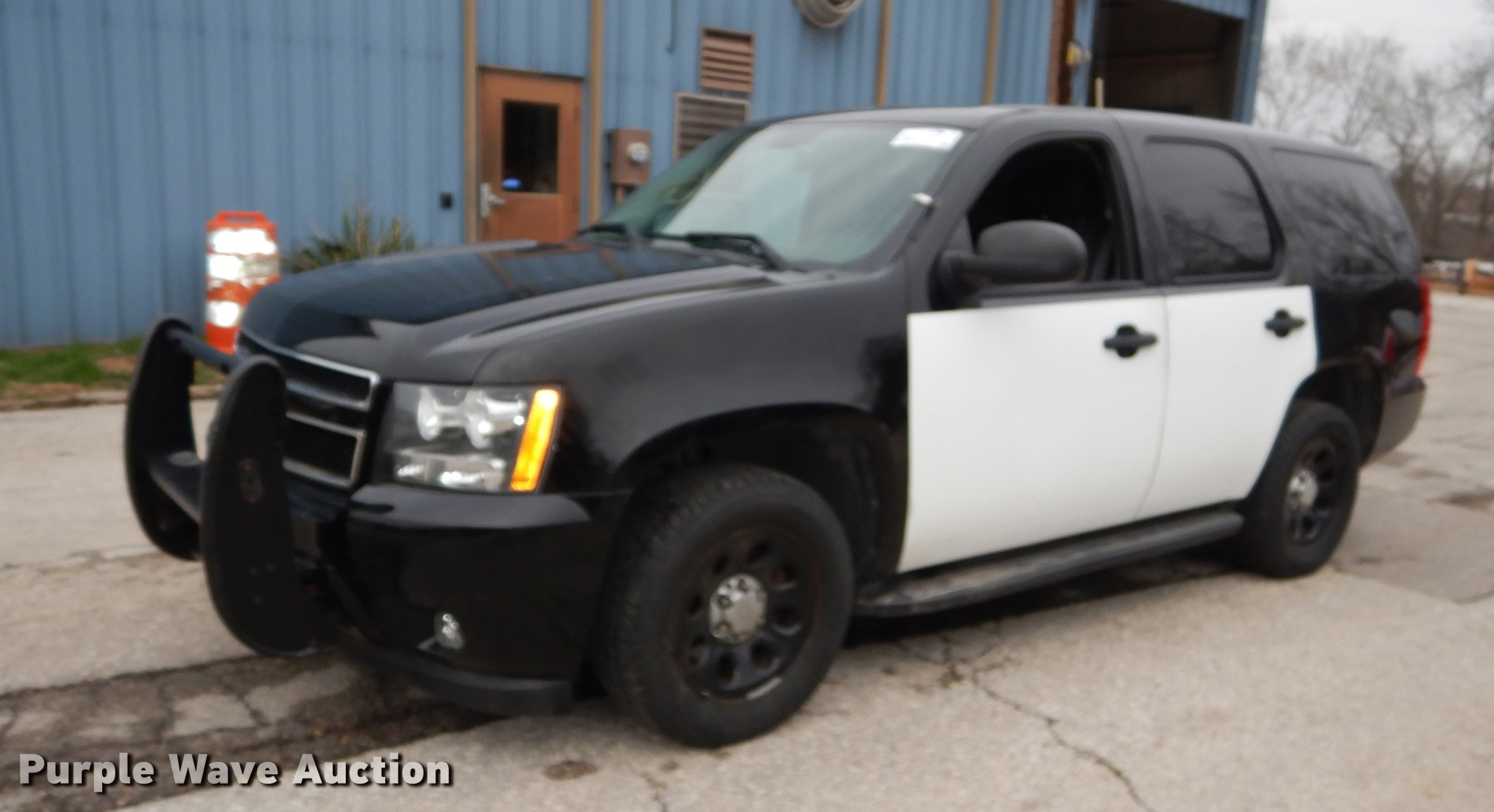 Purple Wave is selling a used Passenger Vehicle in Kansas. This item is a 2012 Chevrolet Tahoe Police SUV with the following: 100,844 miles on odometer, 5.3L V8 OHV 16V FFV gas engine, Automatic transmission, AC and heat, Tilt, Cruise, AM/FM/CD, Power locks, windows, mirrors and driver seat, Cloth front interior, Vinyl rear interior, Fog lights, Running boards, Grill guard, 265/60R17 tires