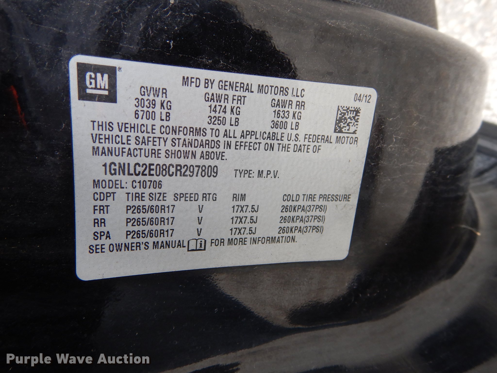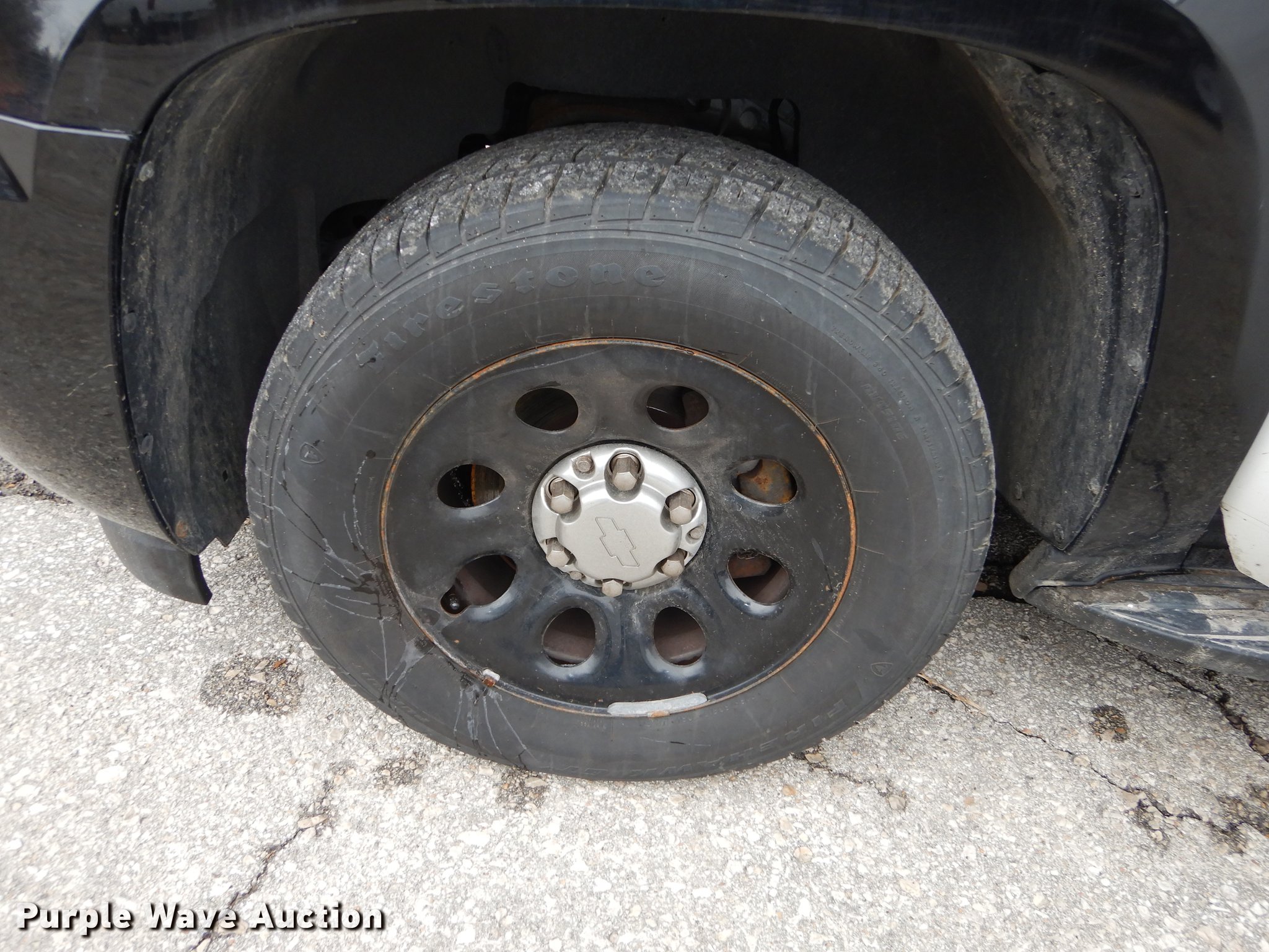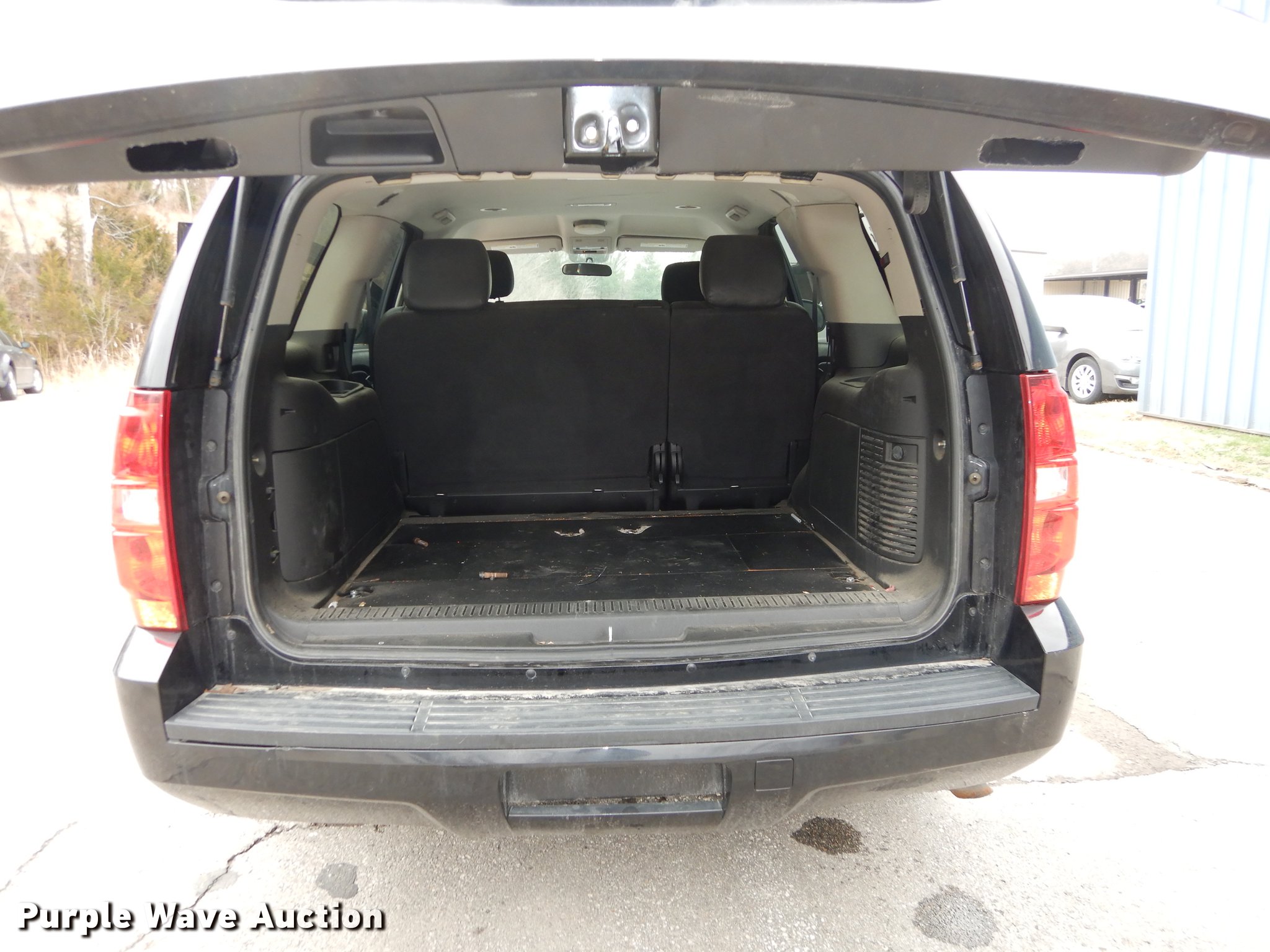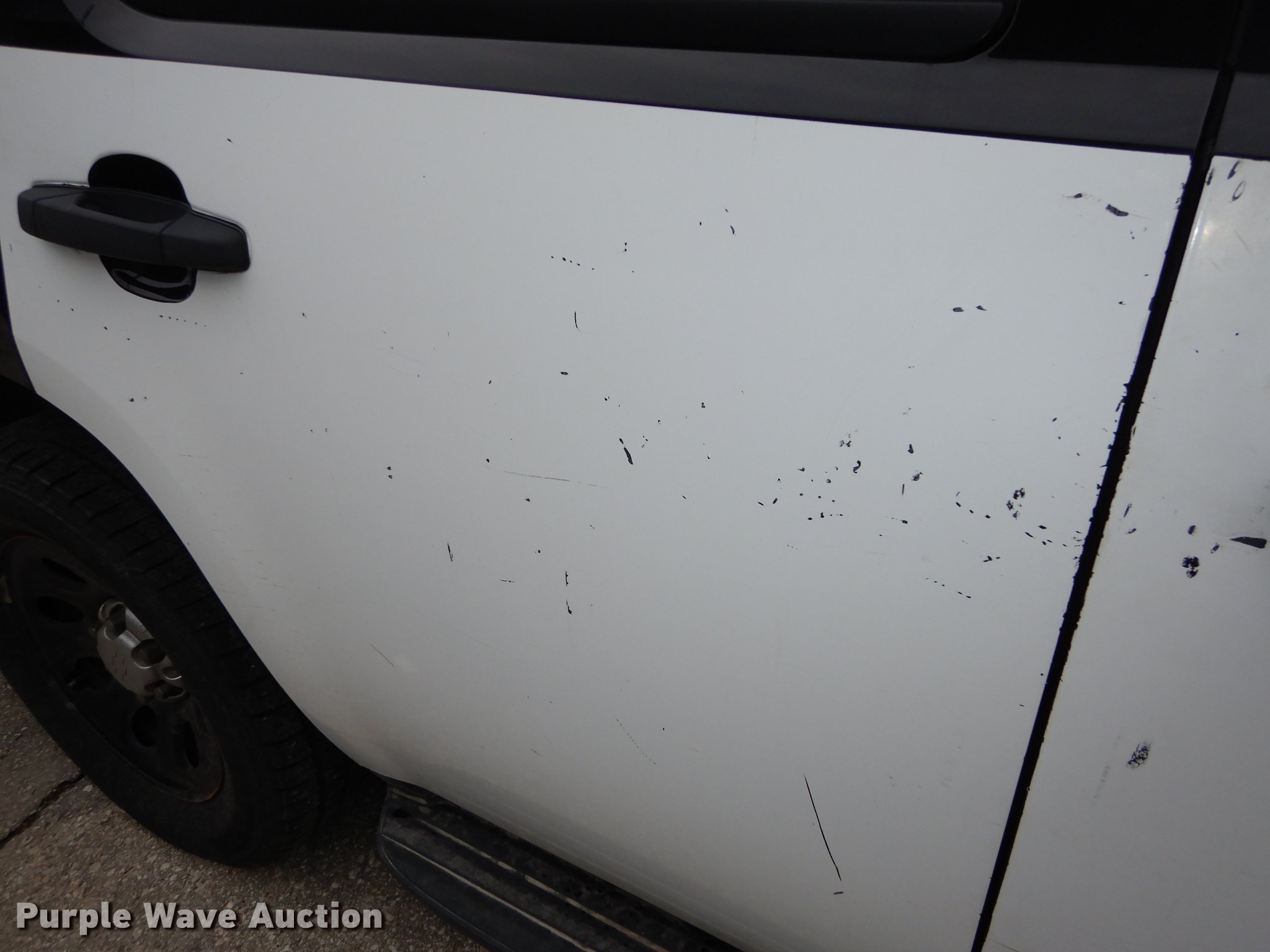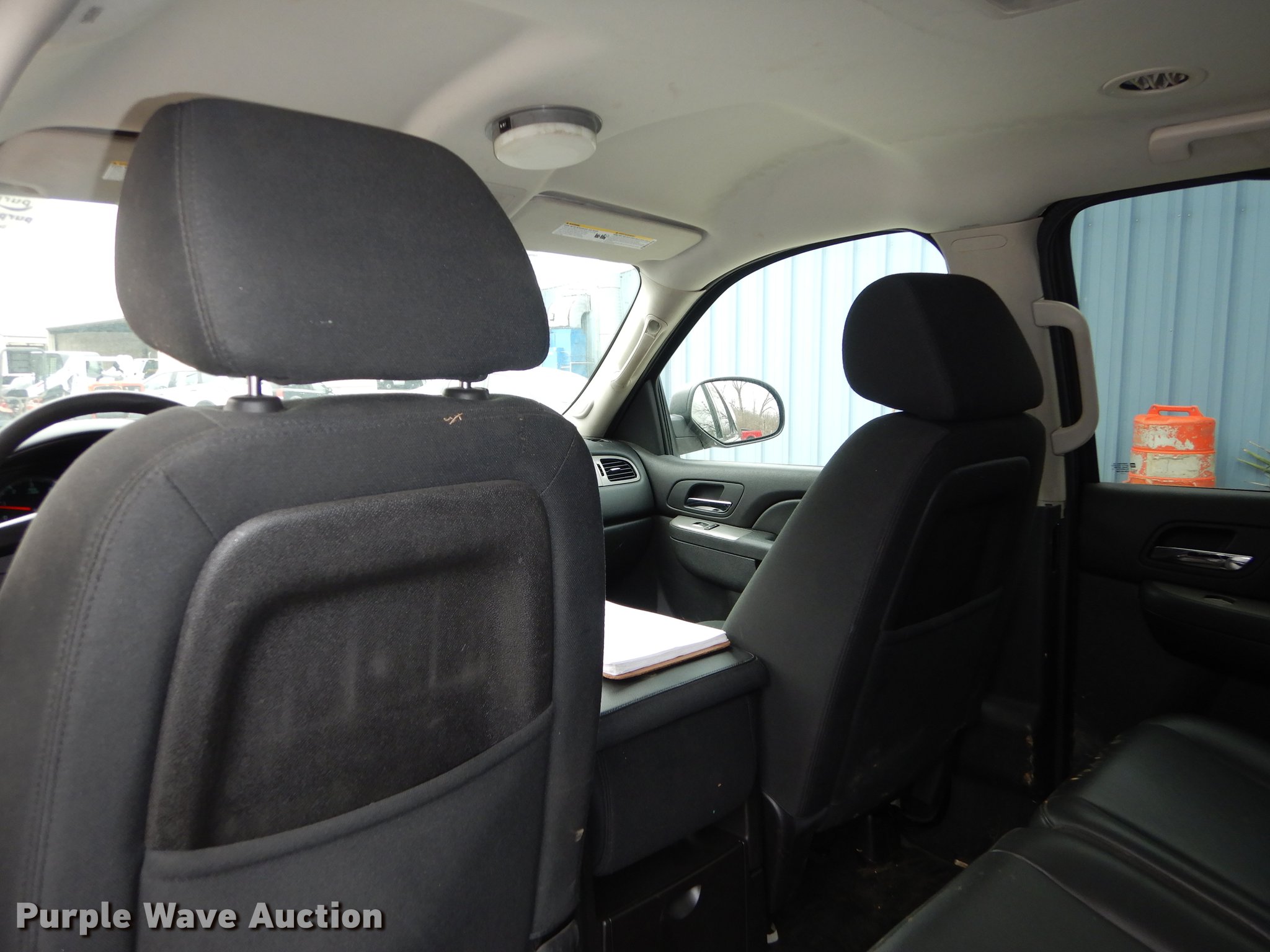 Purple Wave is selling a used Passenger Vehicle in Kansas. This item is a 2012 Chevrolet Tahoe Police SUV with the following: 100,844 miles on odometer, 5.3L V8 OHV 16V FFV gas engine, Automatic transmission, AC and heat, Tilt, Cruise, AM/FM/CD, Power locks, windows, mirrors and driver seat, Cloth front interior, Vinyl rear interior, Fog lights, Running boards, Grill guard, 265/60R17 tires