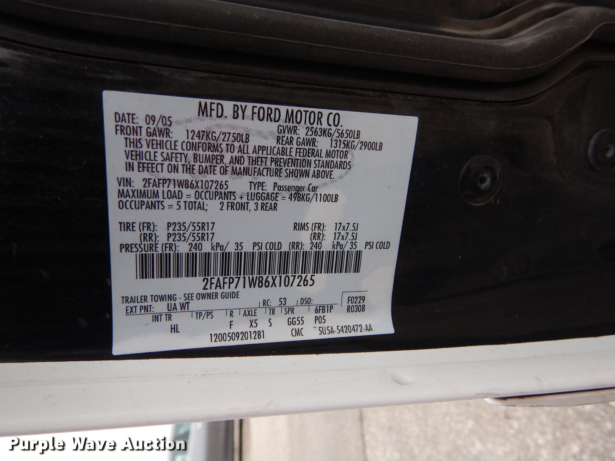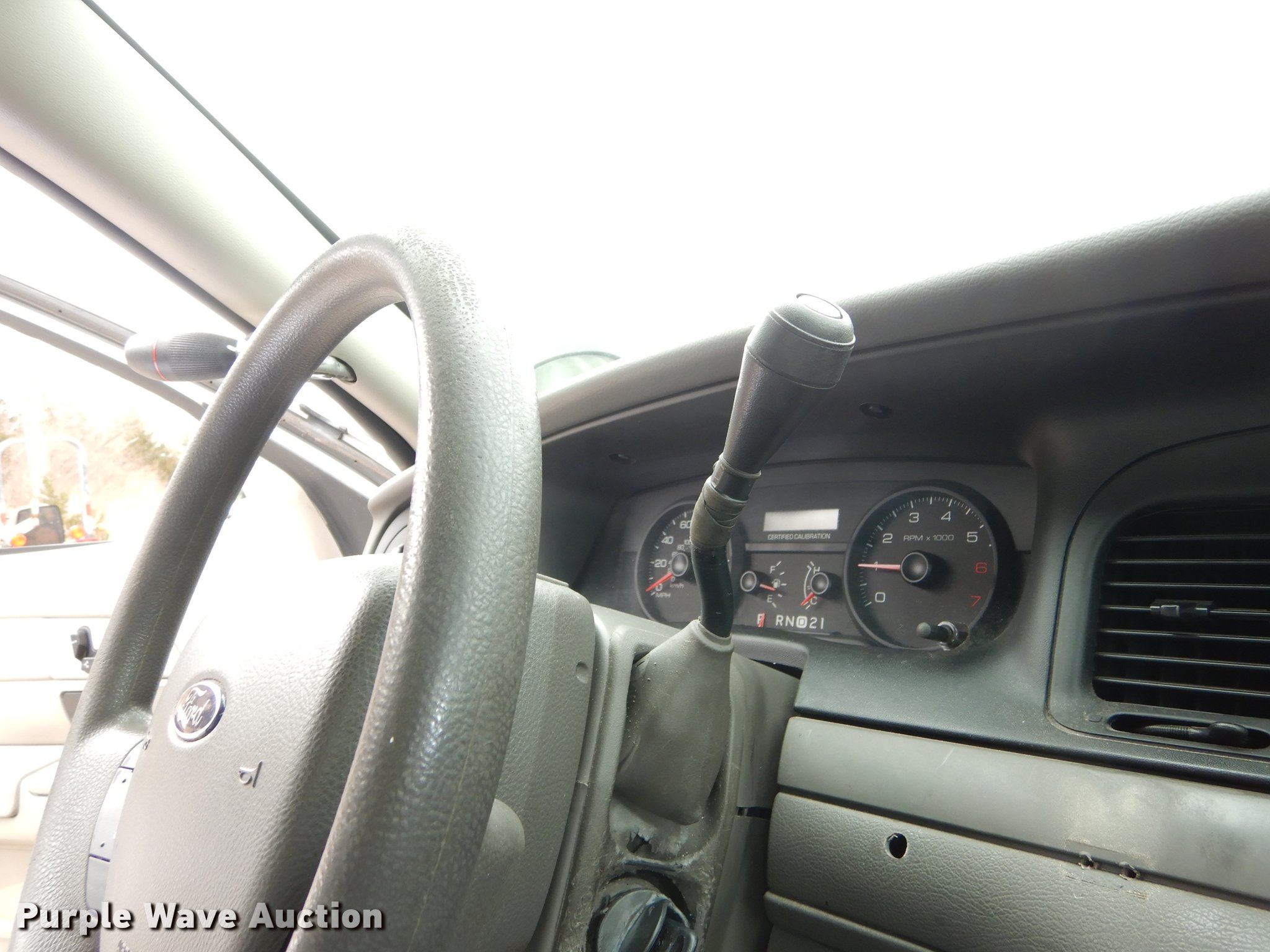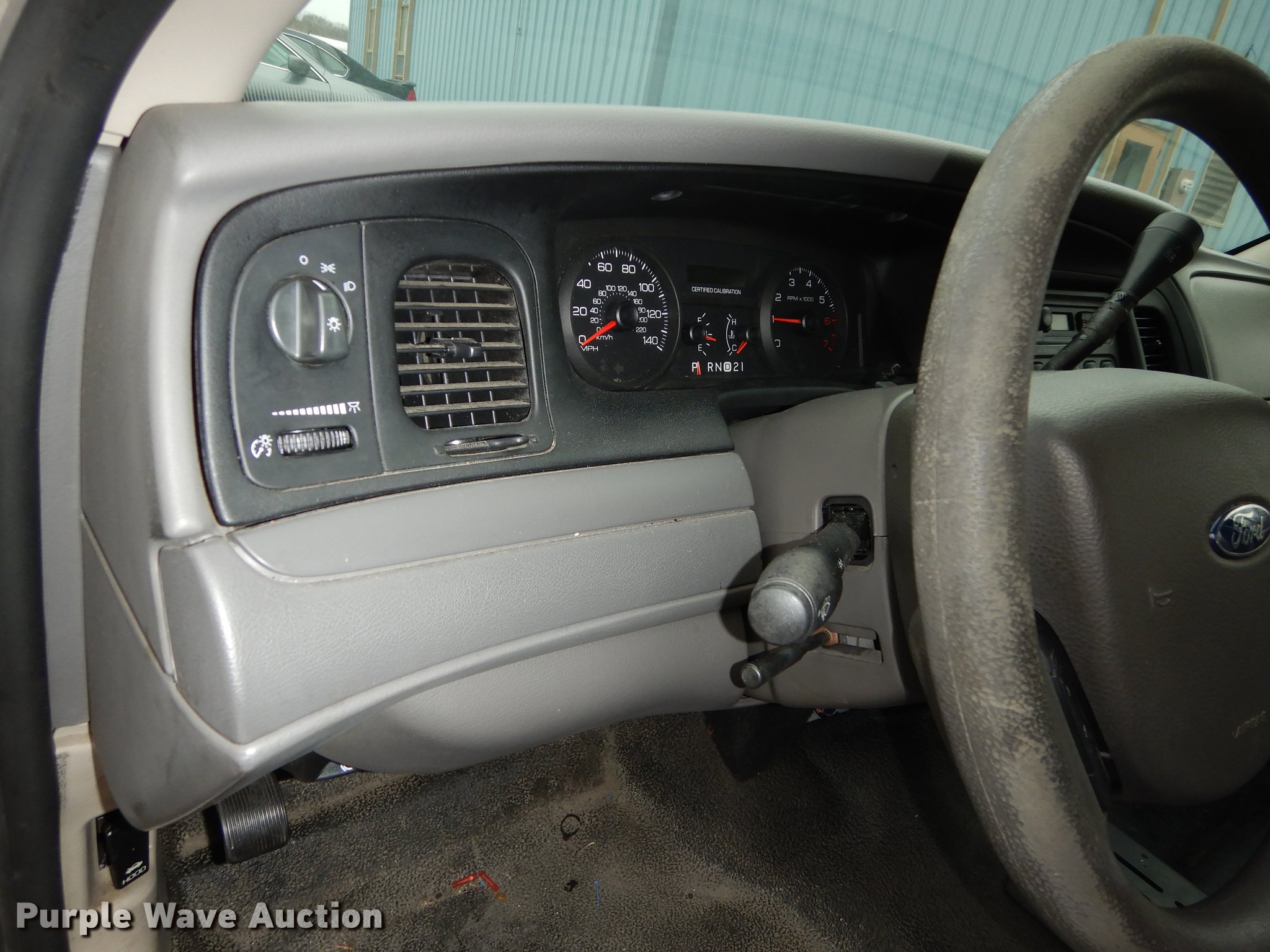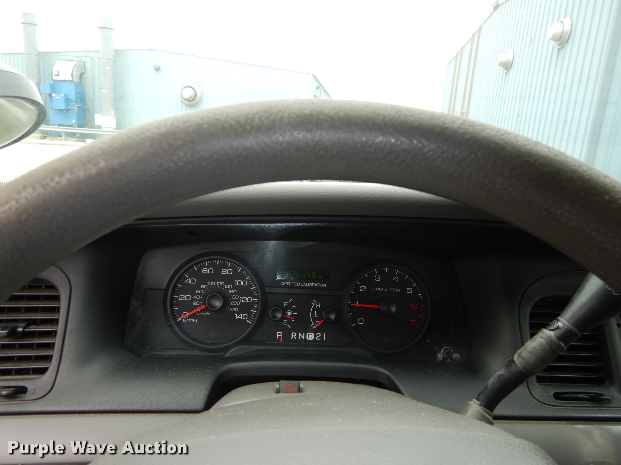 Purple Wave is selling a used Passenger Vehicle in Kansas. This item is a 2006 Ford Crown Victoria Police Interceptor with the following: 63,839 miles on odometer, 4.6L V8 SOHC 16V gas engine, Automatic transmission, AC and heat, Tilt, Cruise, AM/FM, Power locks, windows, mirrors, and drive seat, Cloth interior, Spotlight, Grill guard, 235/55R17 tires, Center console missing, Holes in roof from equipment