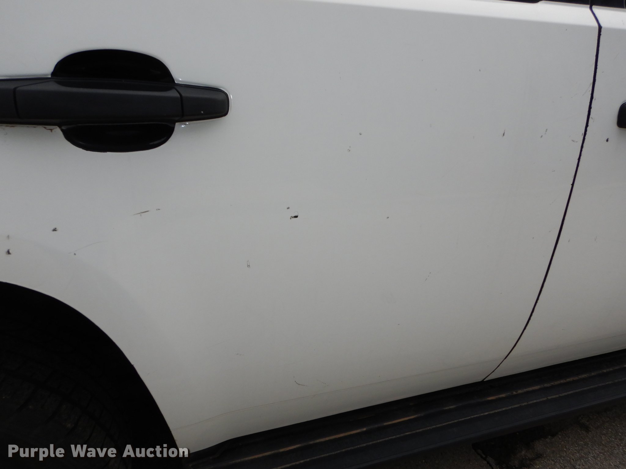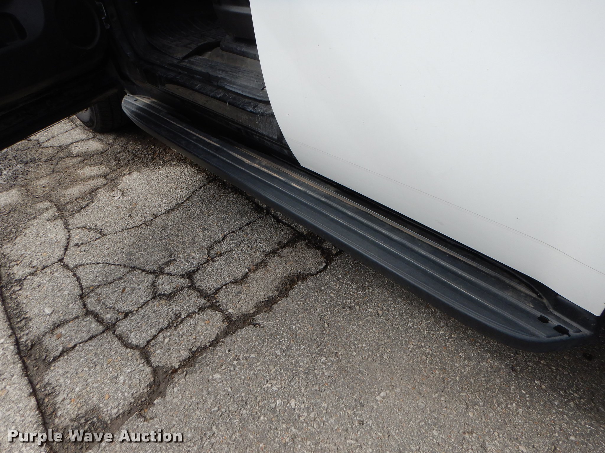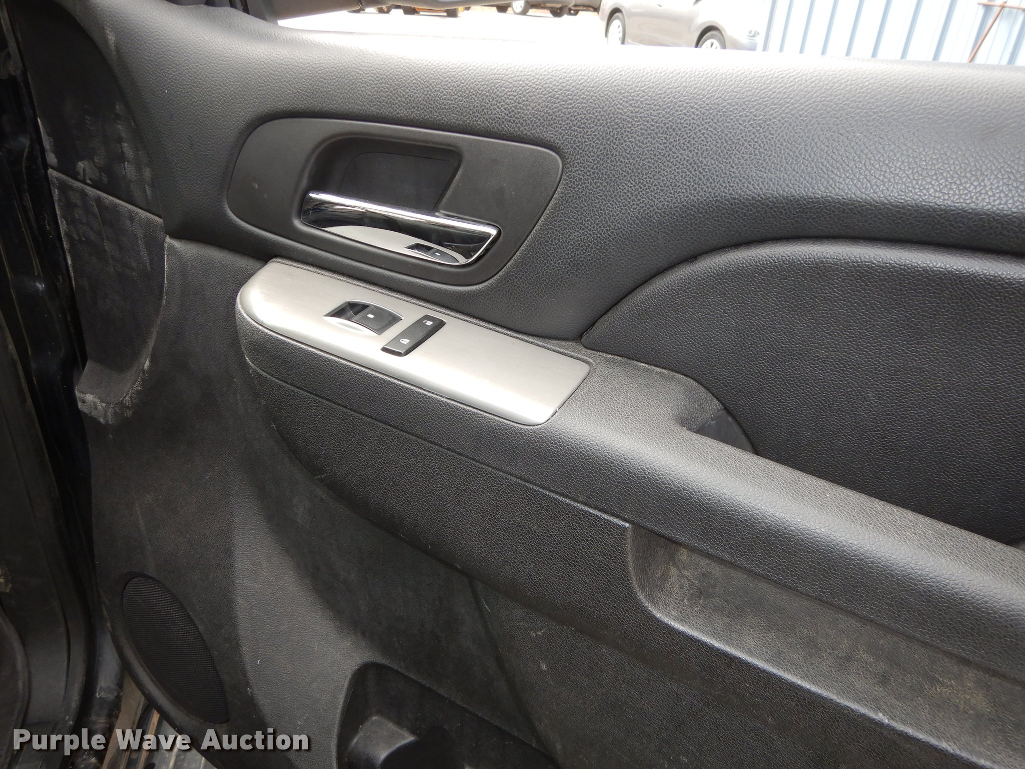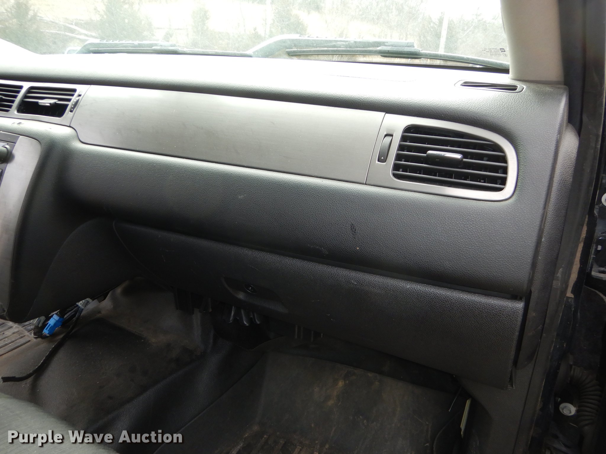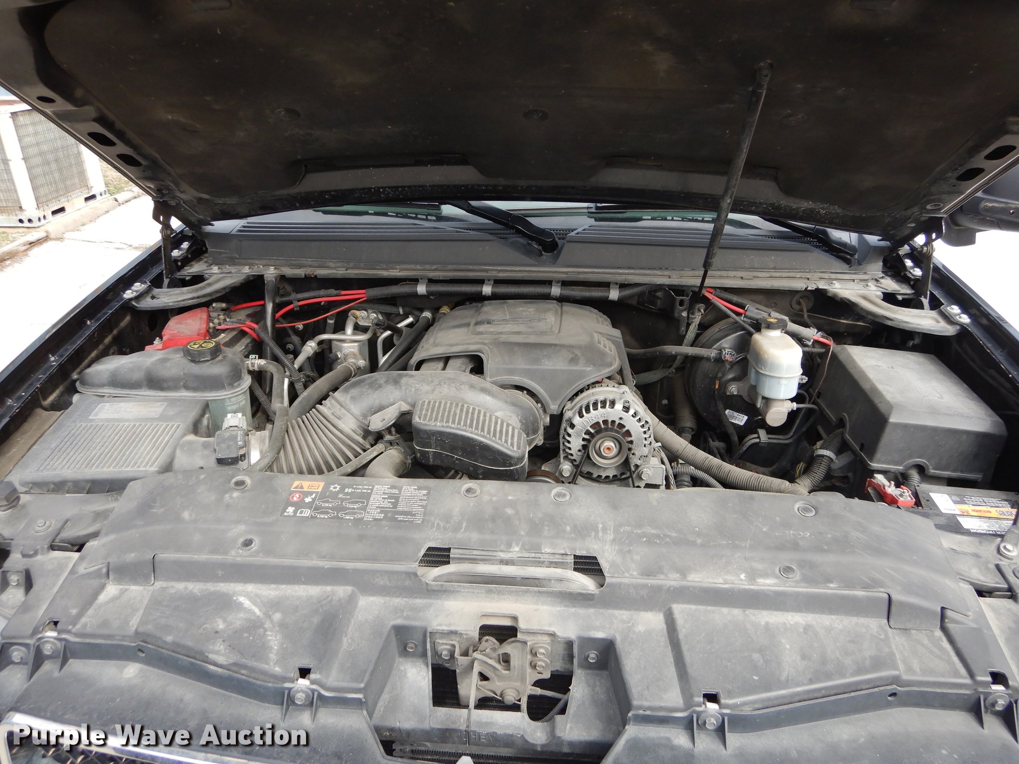 Purple Wave is selling a used Passenger Vehicle in Kansas. This item is a 2013 Chevrolet Tahoe Police SUV with the following: 149,171 miles on odometer, 5.3L V8 OHV 16V FFV gas engine, Automatic transmission, AC and heat, Tilt, Cruise, AM/FM/CD, Power locks, windows, mirrors and driver seat, Cloth front interior, Vinyl rear interior, Fog lights, Spotlight, Running boards, Grill guard, Trailer wiring, Receiver hitch, 265/60R17 tires, Center console missing, Holes in roof from equipment