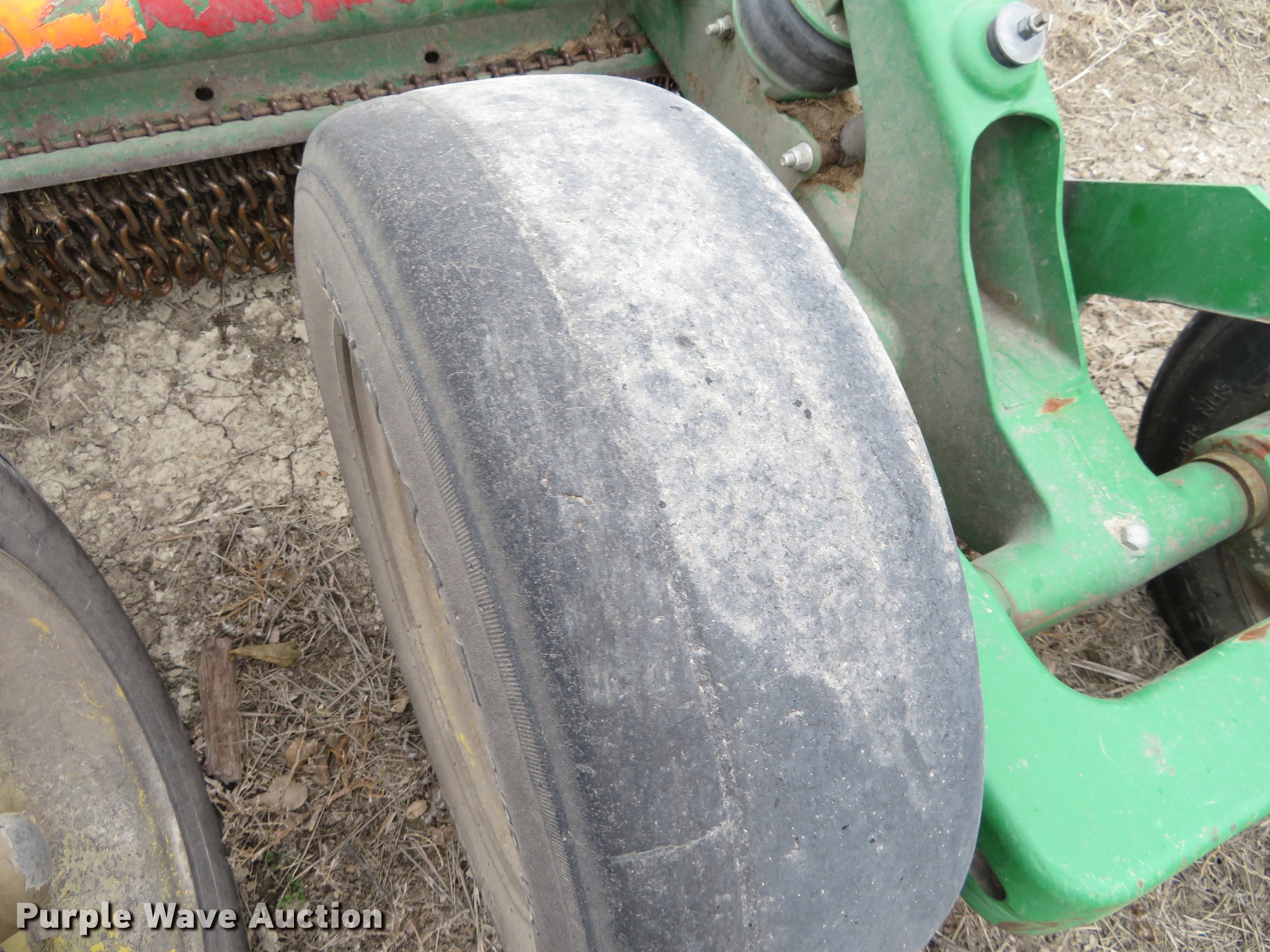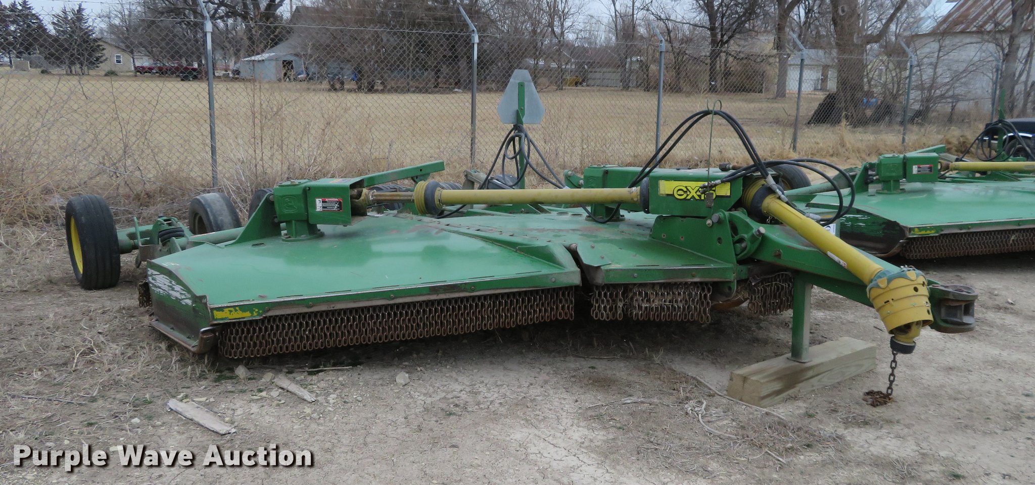 Purple Wave is selling a used Mower, Cutter, Shredder in Kansas. This item is a John Deere CX15 rotary mower with the following: 10'W, Hydraulic lift and fold, Chain guards, 540 PTO, 26x9-14.5 tires, Serial P0CX15G008581