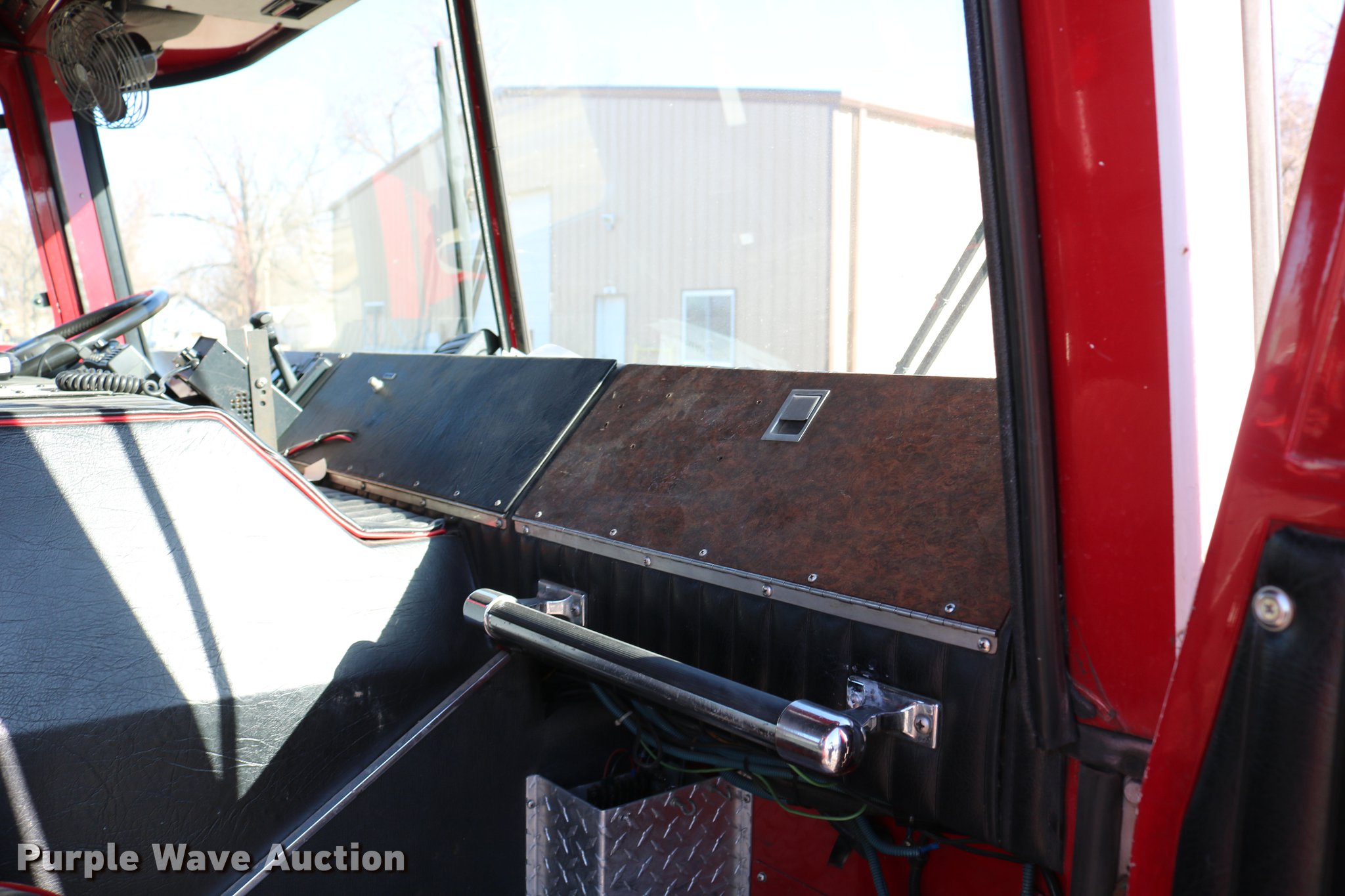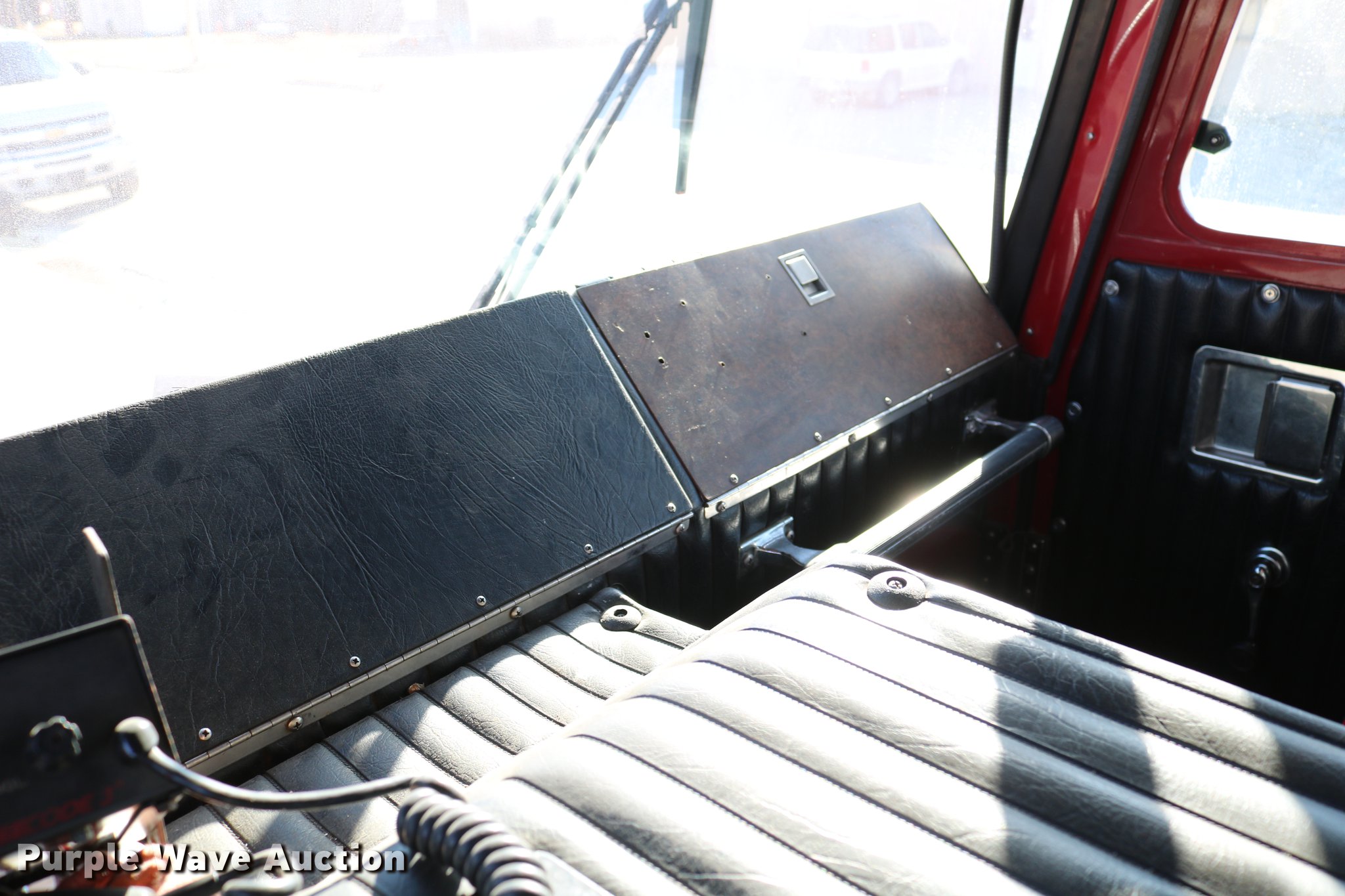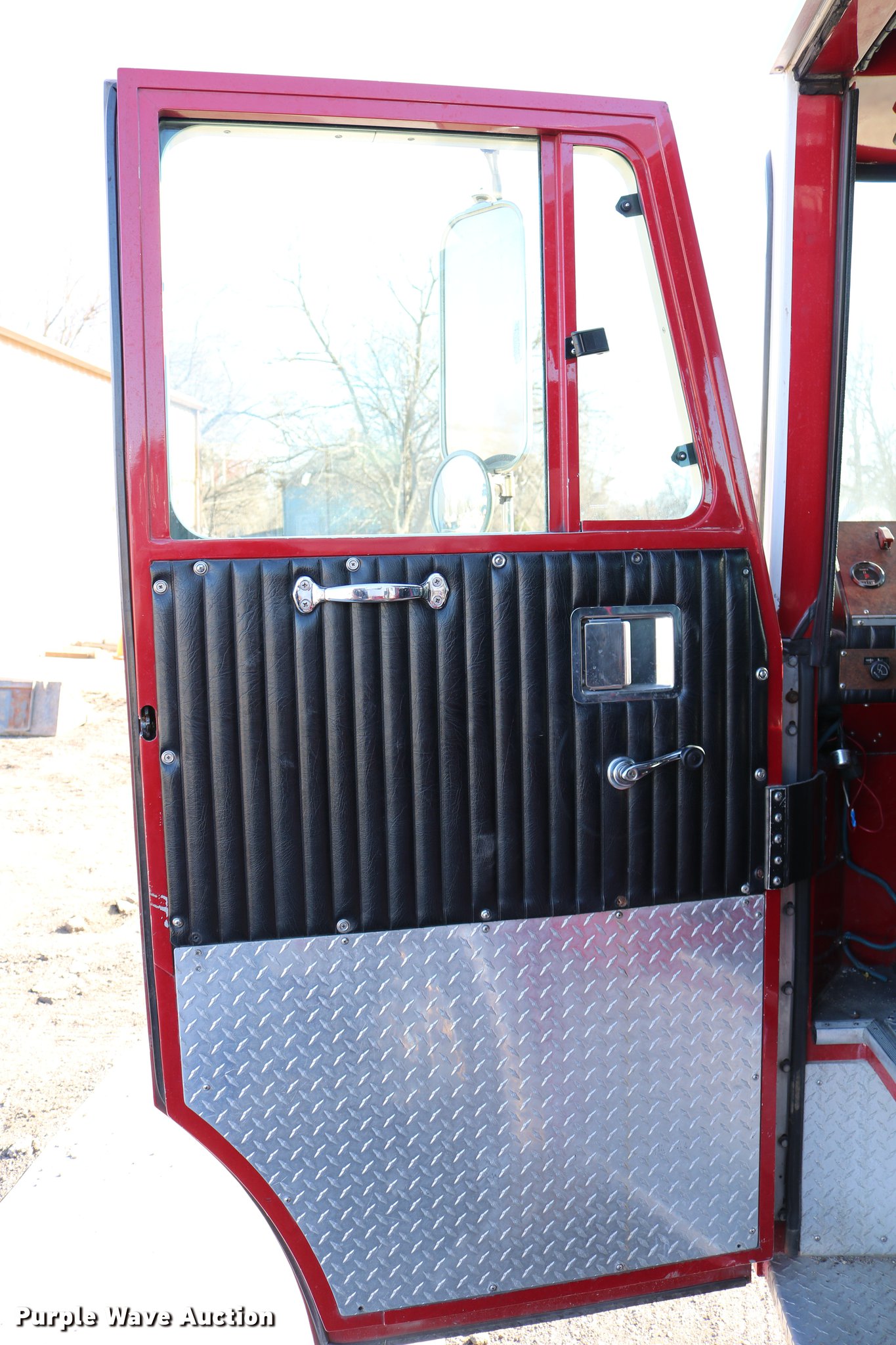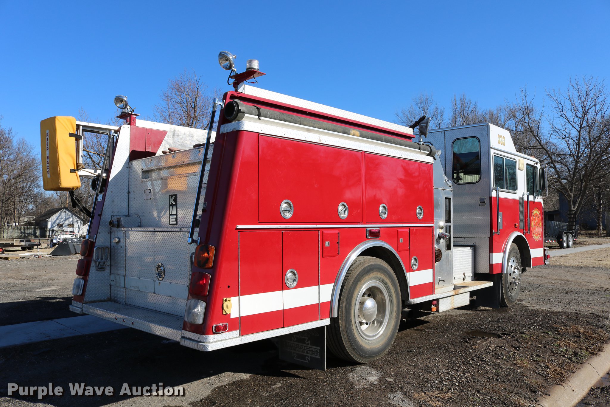 Purple Wave is selling a used Fire Truck or Emergency Vehicle in Kansas. This item is a 1993 KME Renegade Custom SFD fire truck with the following: 39,069 miles on odometer, 12,016 hours on meter, Cummins 6CTA8.3 six cylinder turbo diesel engine, 300 HP, Serial 447815147, Automatic transmission, Model MT-647, Single axle, Air suspension seat, Non-operational, Air horn, PTO, Hale pump, 1,504 gpm, Type QSMG150-23, Serial 62787, KME fire apparatus, 1,250 gpm water gun, 14' roof ladder, 24' ladder, Air brakes, 315/80R22.5 tires, GVWR 40,000 lbs, Annual certification completed in October 2017, Unit passed pump test, Emergency lights and sirens included, Two-way radio and deck gun tips not included, Dash electrical issues, Hard suction hose not included, PTO drive box needs to be replaced, makes noise, Impeller pump shaft will not keep a seal, Hose in bed not included