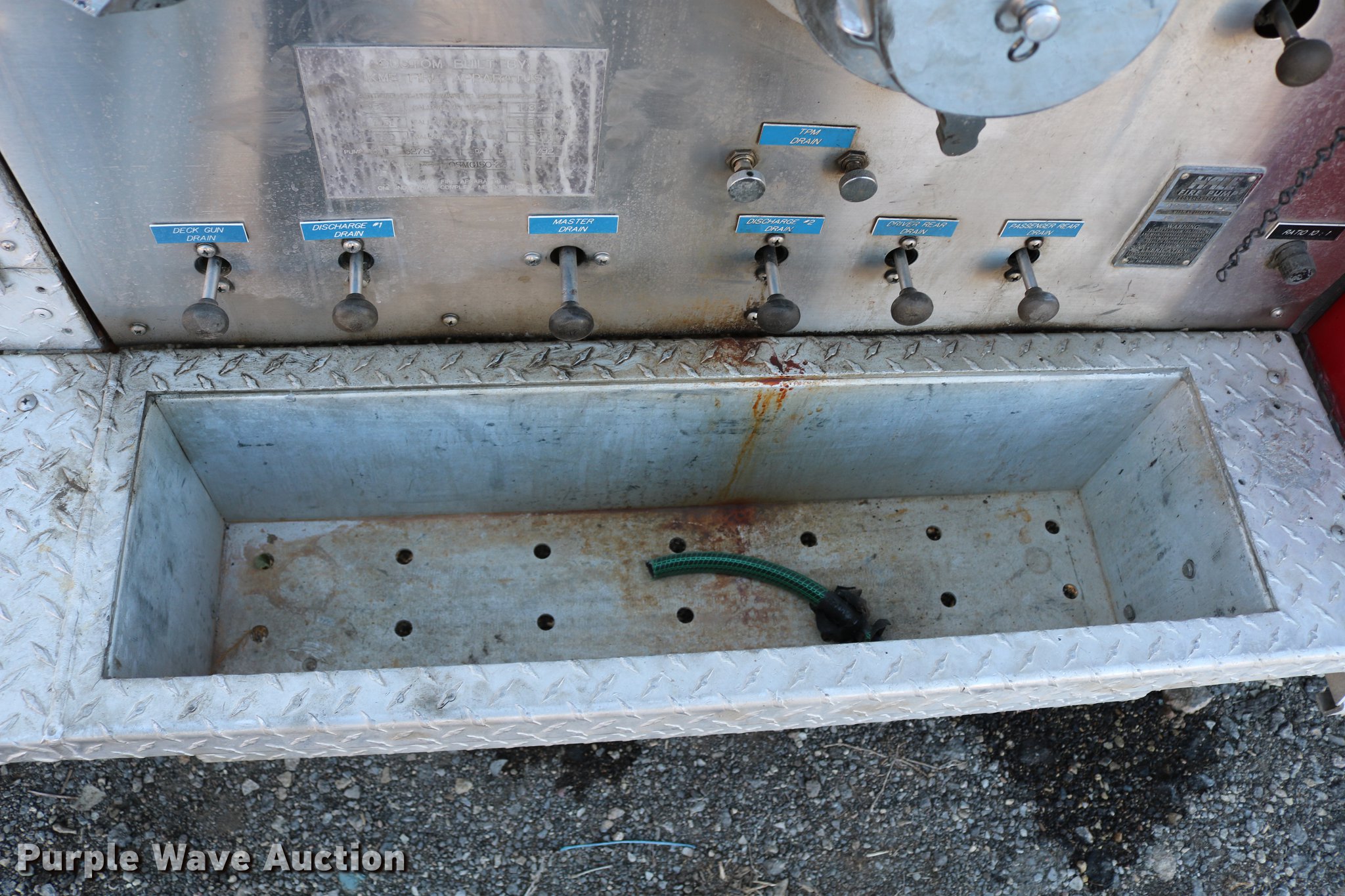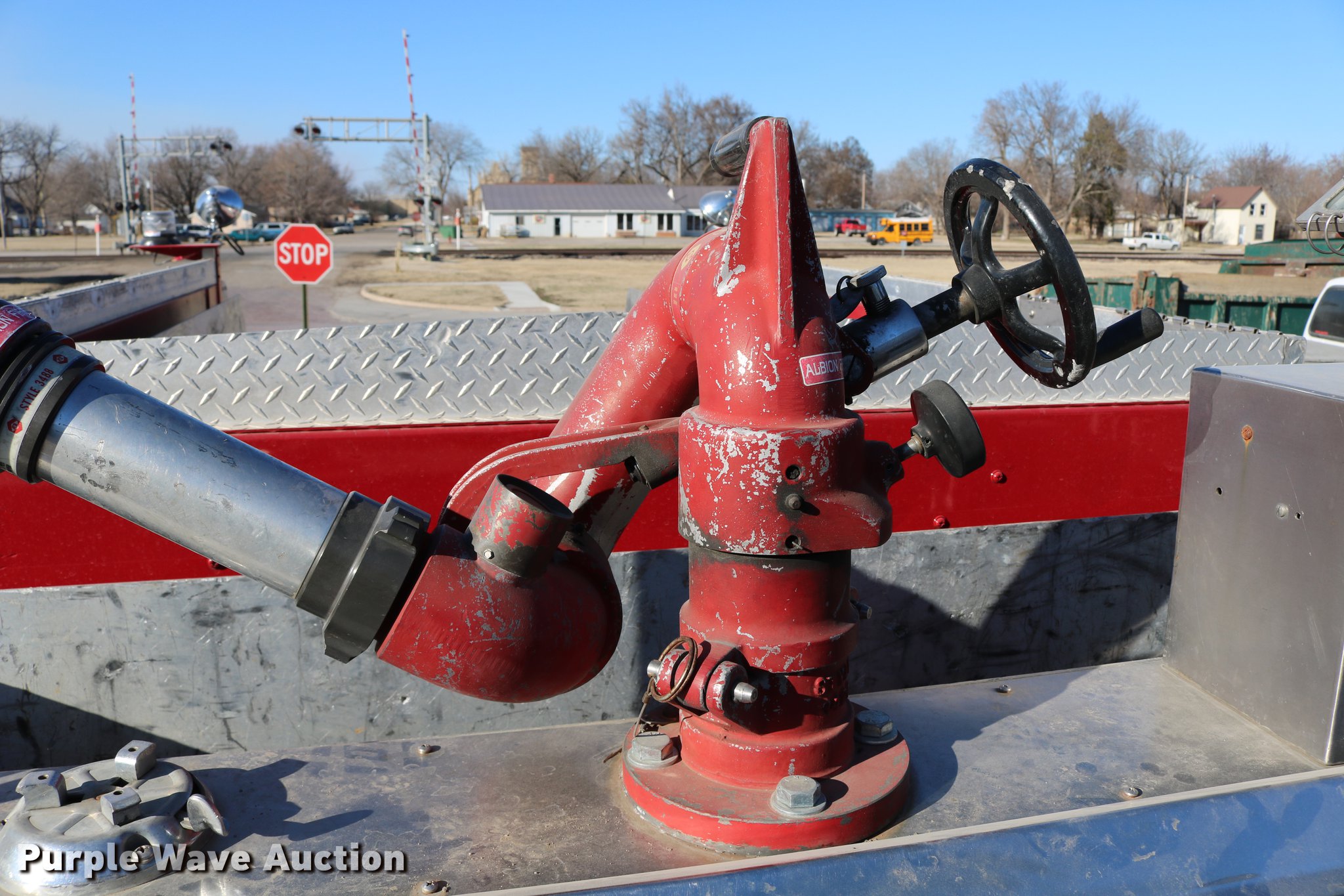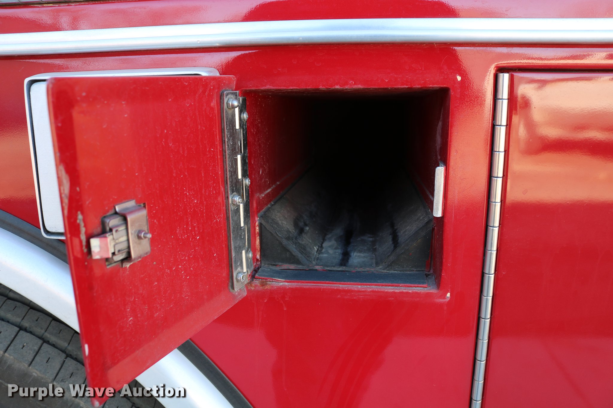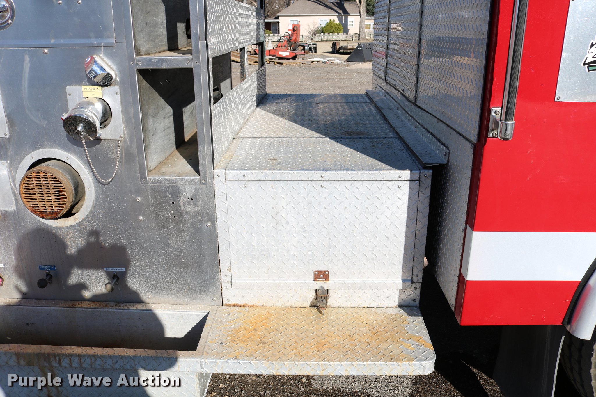 Purple Wave is selling a used Fire Truck or Emergency Vehicle in Kansas. This item is a 1993 KME Renegade Custom SFD fire truck with the following: 39,069 miles on odometer, 12,016 hours on meter, Cummins 6CTA8.3 six cylinder turbo diesel engine, 300 HP, Serial 447815147, Automatic transmission, Model MT-647, Single axle, Air suspension seat, Non-operational, Air horn, PTO, Hale pump, 1,504 gpm, Type QSMG150-23, Serial 62787, KME fire apparatus, 1,250 gpm water gun, 14' roof ladder, 24' ladder, Air brakes, 315/80R22.5 tires, GVWR 40,000 lbs, Annual certification completed in October 2017, Unit passed pump test, Emergency lights and sirens included, Two-way radio and deck gun tips not included, Dash electrical issues, Hard suction hose not included, PTO drive box needs to be replaced, makes noise, Impeller pump shaft will not keep a seal, Hose in bed not included