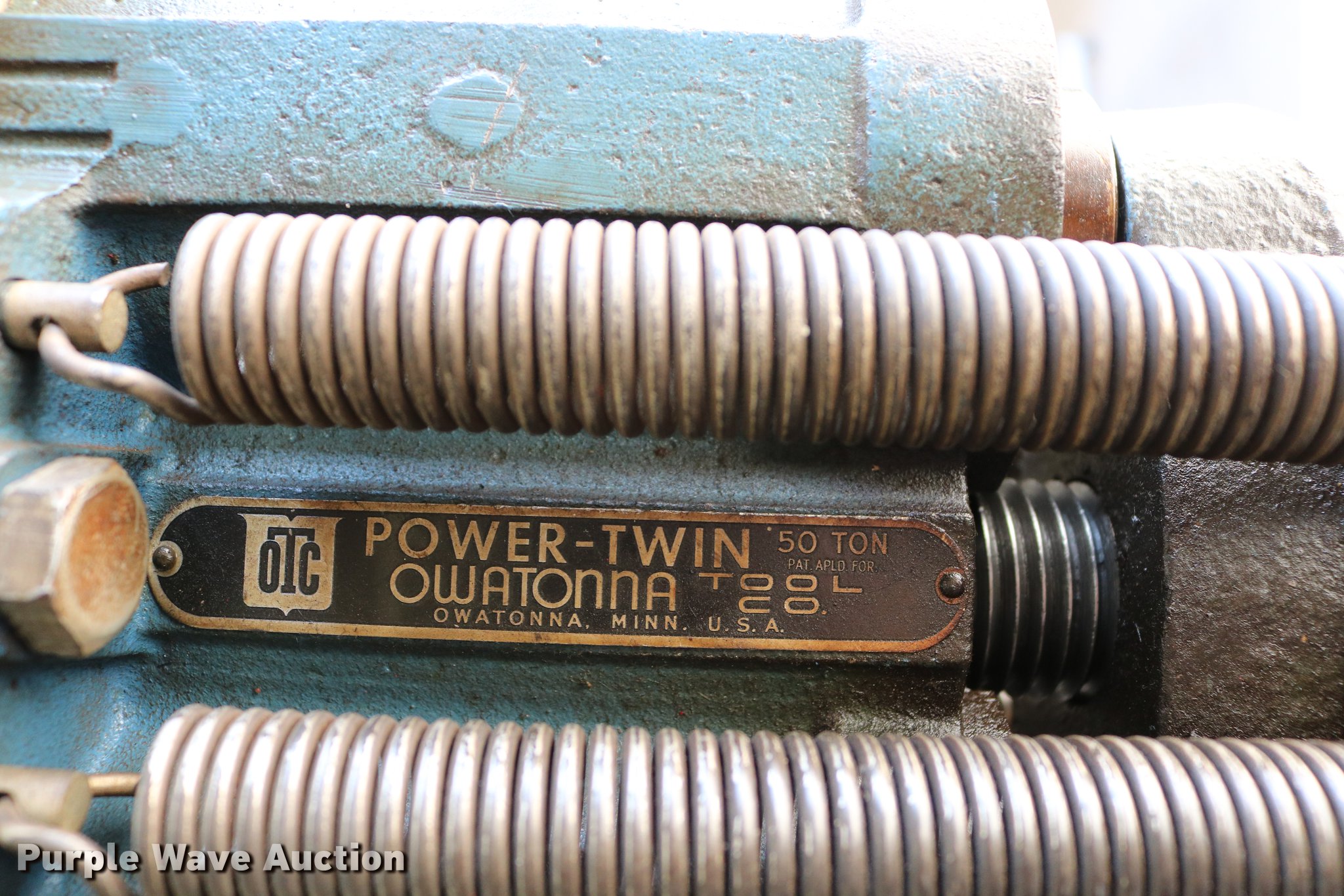 Purple Wave is selling a used Machine Shop Tools and Equip. in Kansas. This item is a OTC brake press with the following: 50 ton, Hydraulic operation, Manual cable lift table, Manual hand pump for hydraulics, 61" x 36" x 79" shipping dimensions