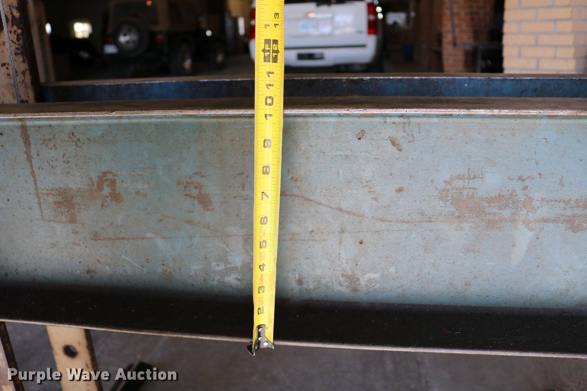 OTC brake press. 50 ton, Hydraulic operation, Manual cable lift table, Manual hand pump for hydraulics, 61" x 36" x 79" shipping dimensions. North Central Kansas Technical College. 3033 US-24. Beloit, KS 67420
