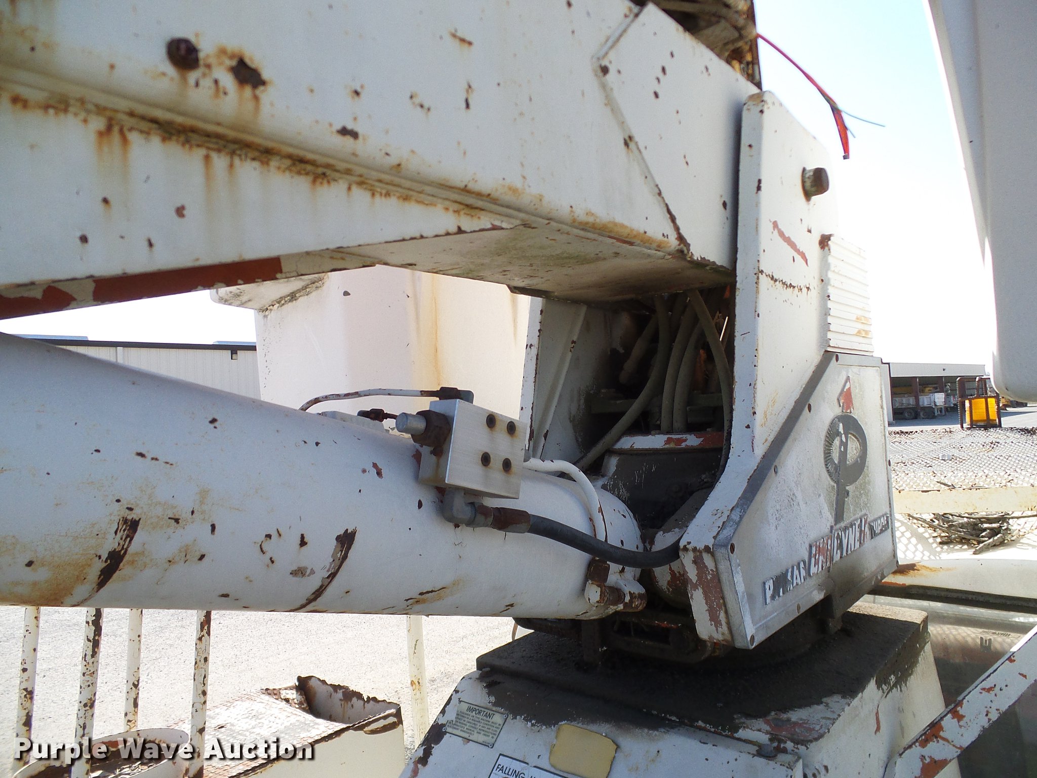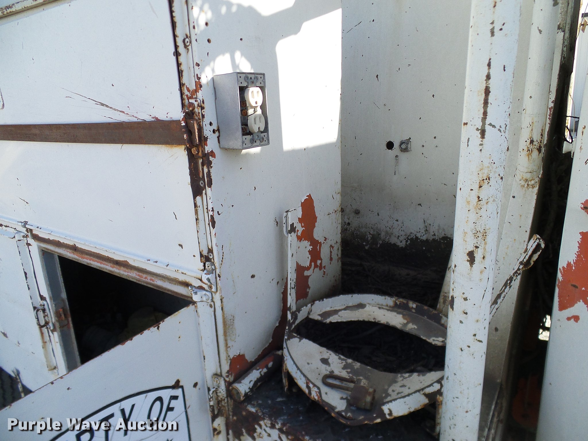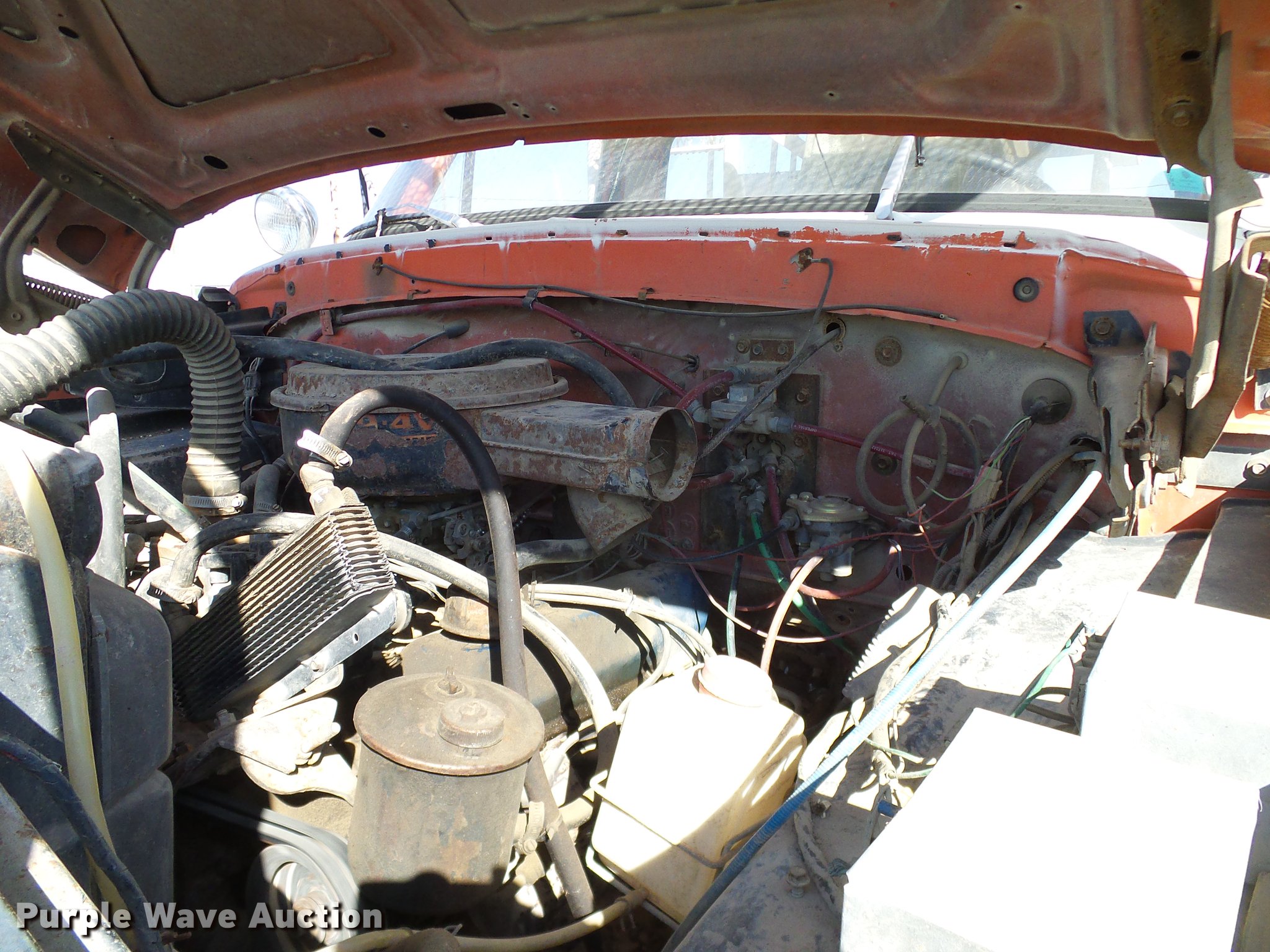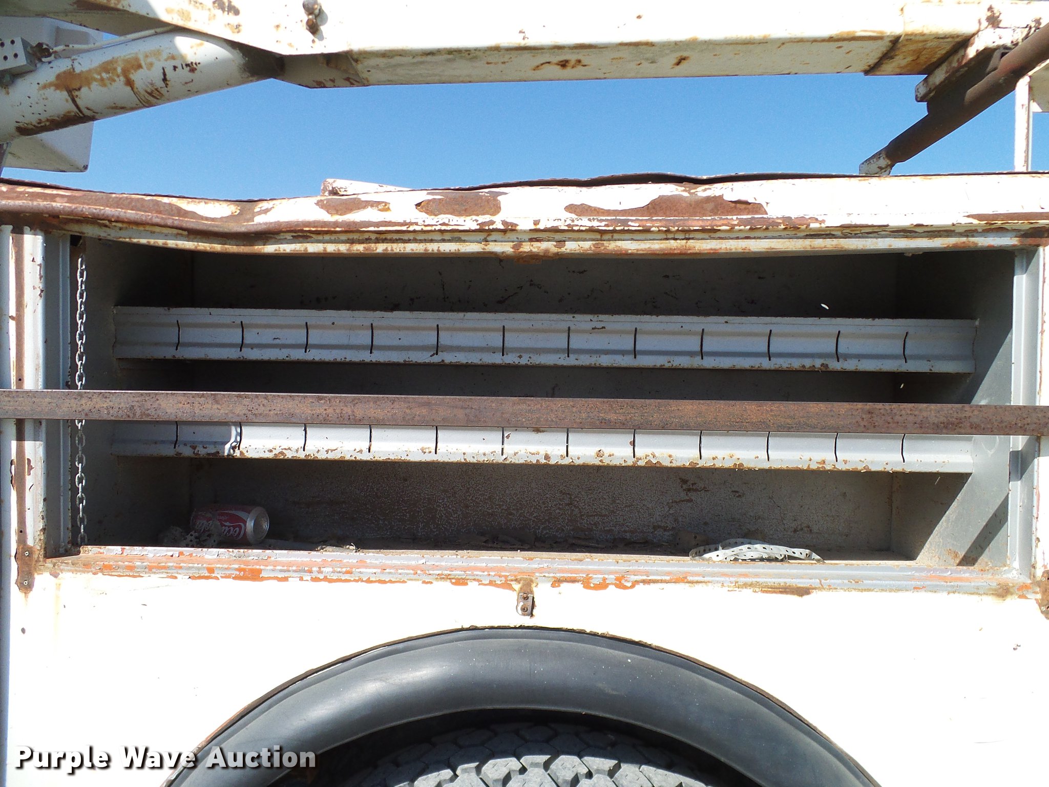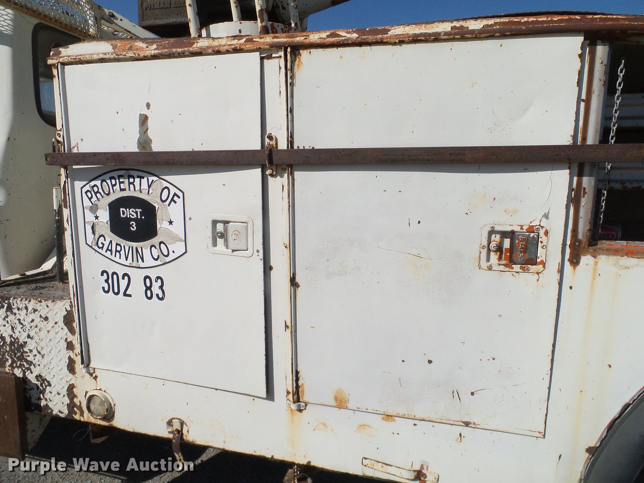 1979 Ford F800 bucket truck. 57,984 miles on odometer, Eight cylinder gas engine, Five speed manual transmission, Two speed rear end, Single axle, Heat, Suspension seat, PTO, IHL utility bed 14'L, Shelving, Pitman M546A boom 500 lbs max. lift capacity, 46' max. lift height, Man basket, Ground and platform controls, Boom rotation, Articulating and insulated boom, (4) outriggers, Serial 20H-036-102, Single fuel tank, 171" wheelbase, Spring suspension, Air brakes, 10.00R20 tires, Windshield cracked, Driver's door damaged, will not open fully, Unit# 302 83. Oklahoma title. F82CVFE7931. Garvin County District #3. 50270 E County Road 1520. Stratford, OK 74872