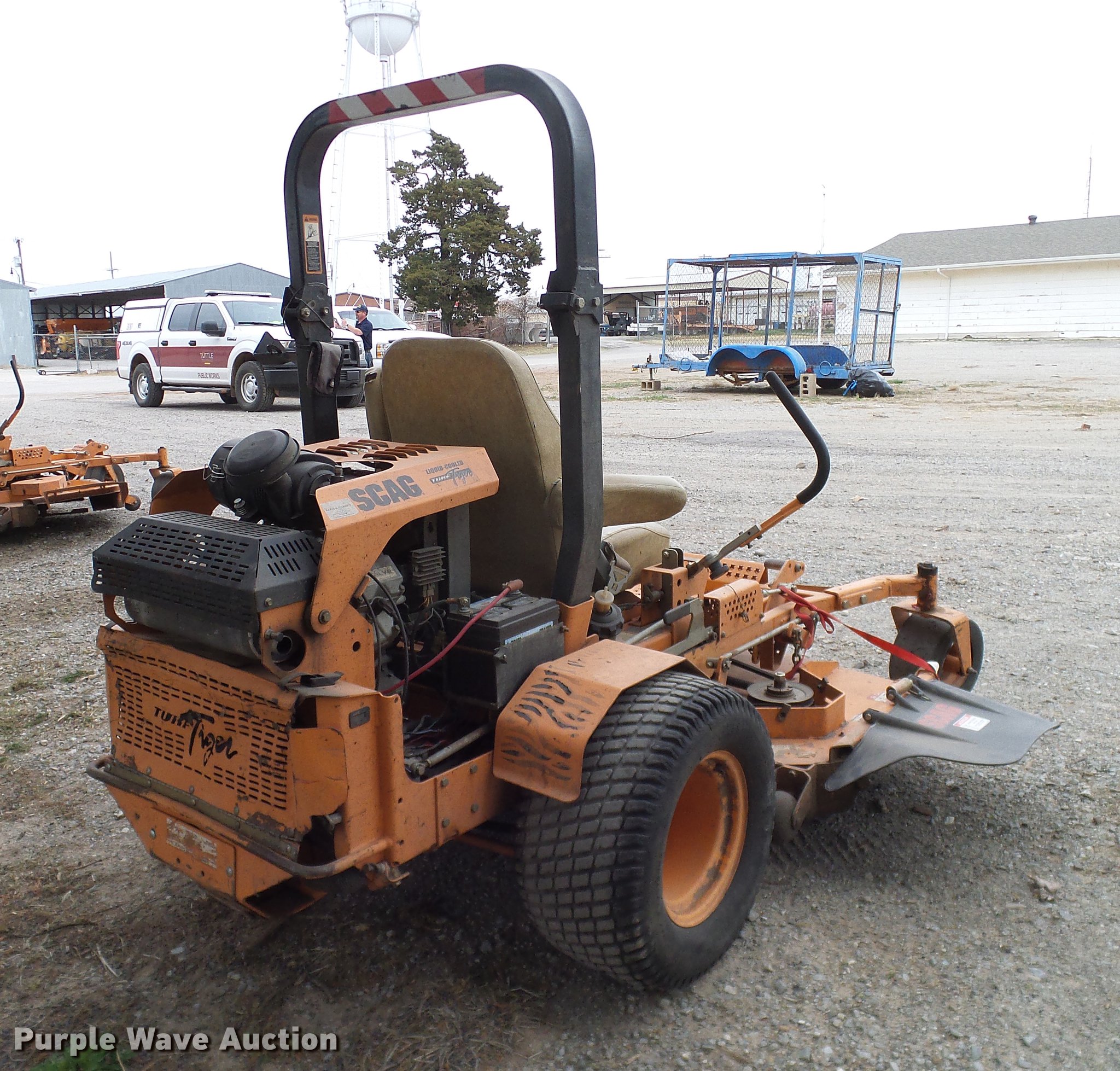 Purple Wave is selling a used Lawn Mower in Oklahoma. This item is a 2009 Scag Turf Tiger 61 ZTR lawn mower with the following: Model STT61V-27KA, 1,535 hours on meter, 61" cut, Kawasaki DF750D two cylinder gas engine, 27 HP, Liquid cooled, Hydrostatic transmission, 13x6.50-6 front tires, 24x12.00-12 rear tires, Serial E4200469