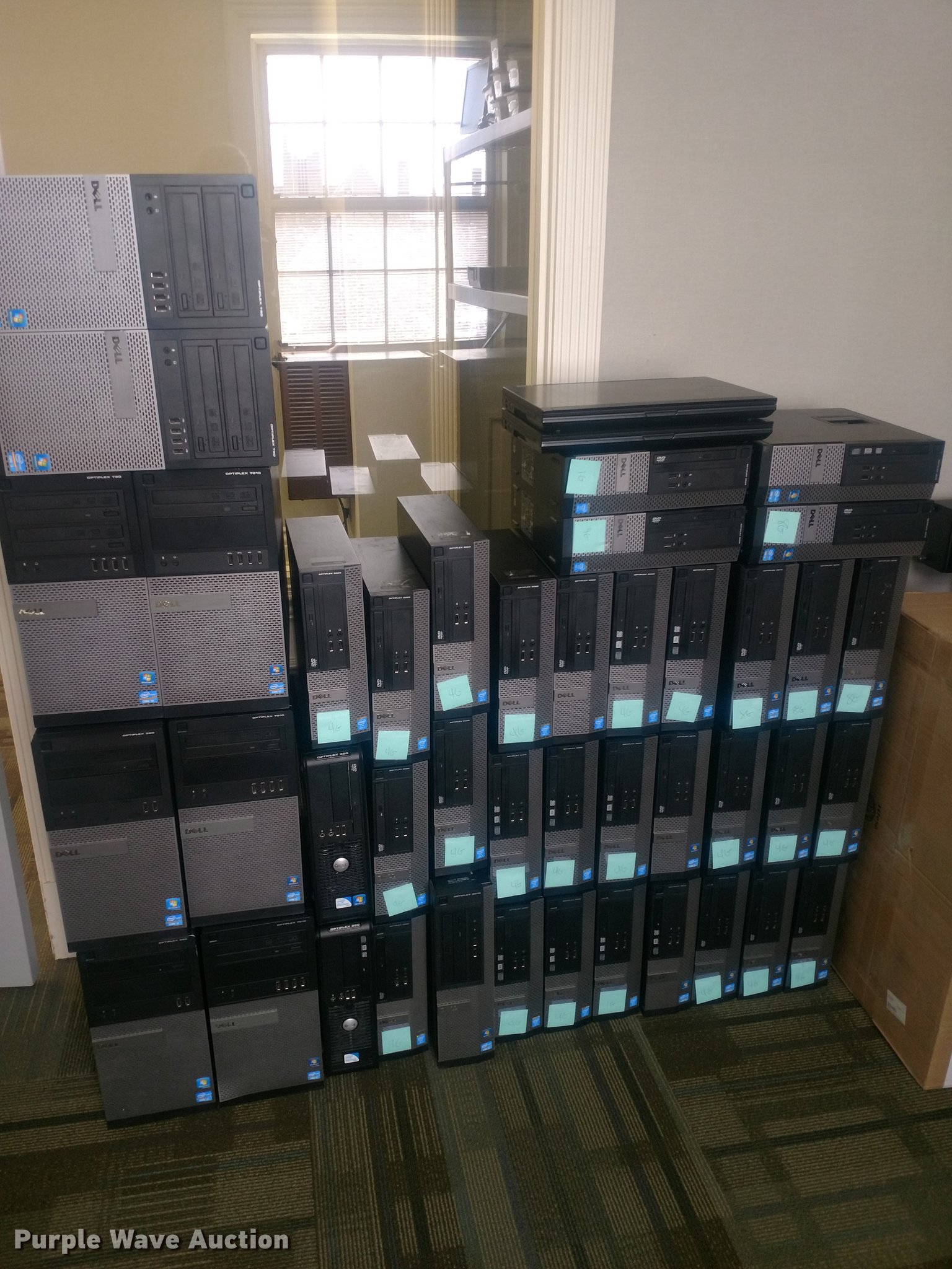 Purple Wave is selling a used Computers in Kansas. This item is a (43) Dell computers with the following: (2) Optiplex 390, (14) Optiplex 3010, (2) Latitude E6500, (18) Optiplex 3020, (3) Optiplex 7010, (3) Optiplex 790, (2) Optiplex 380, Hard drives have been wiped
