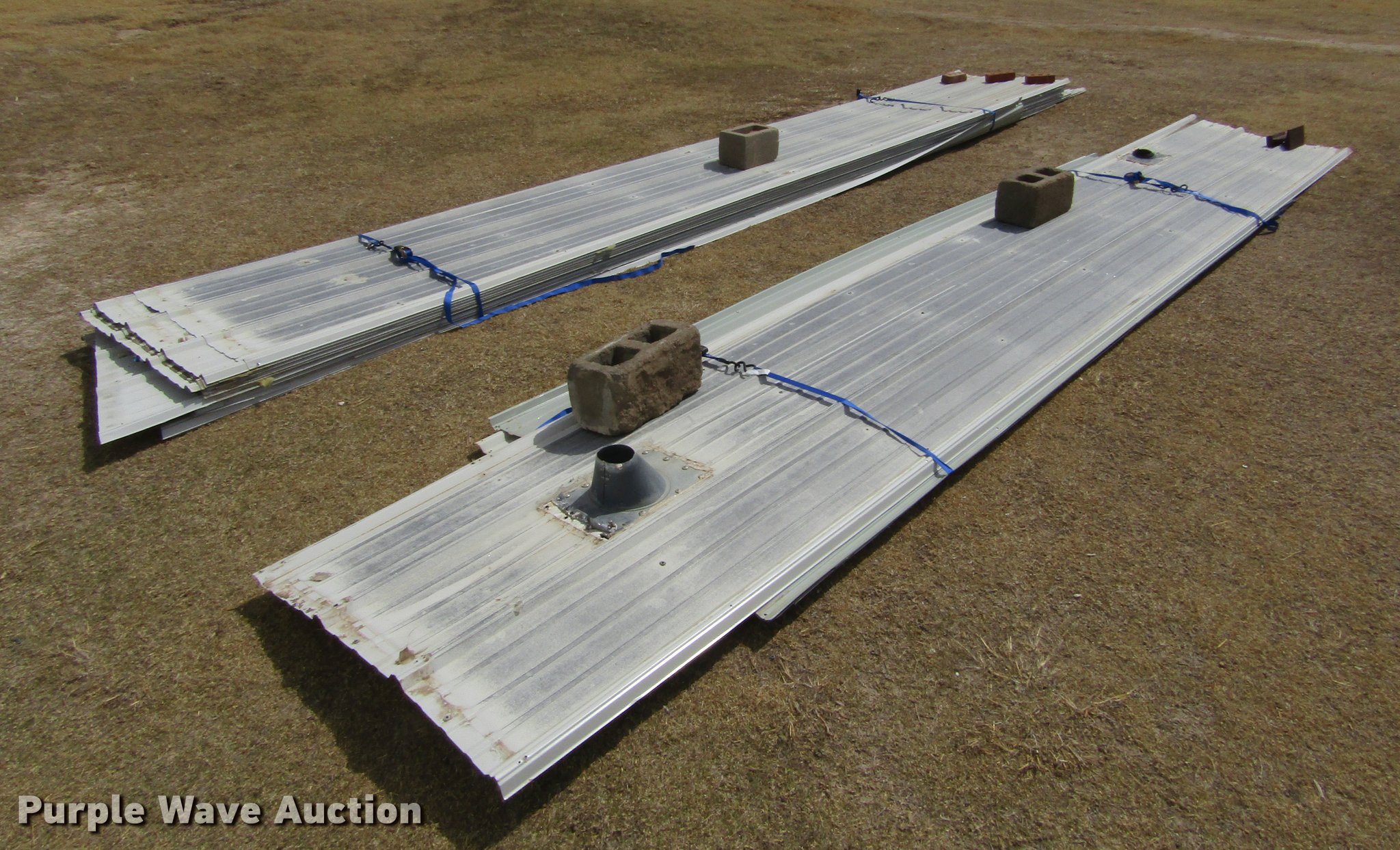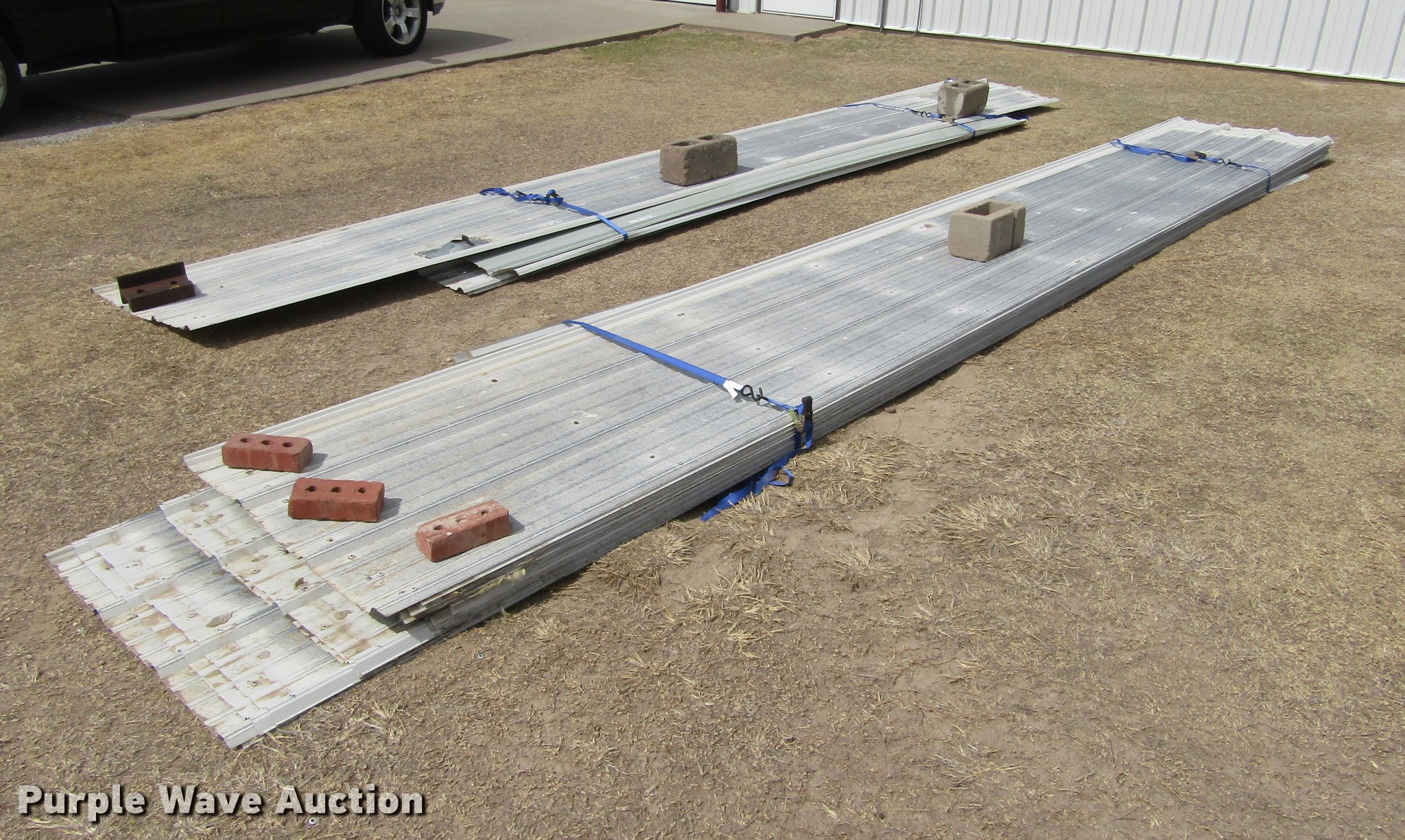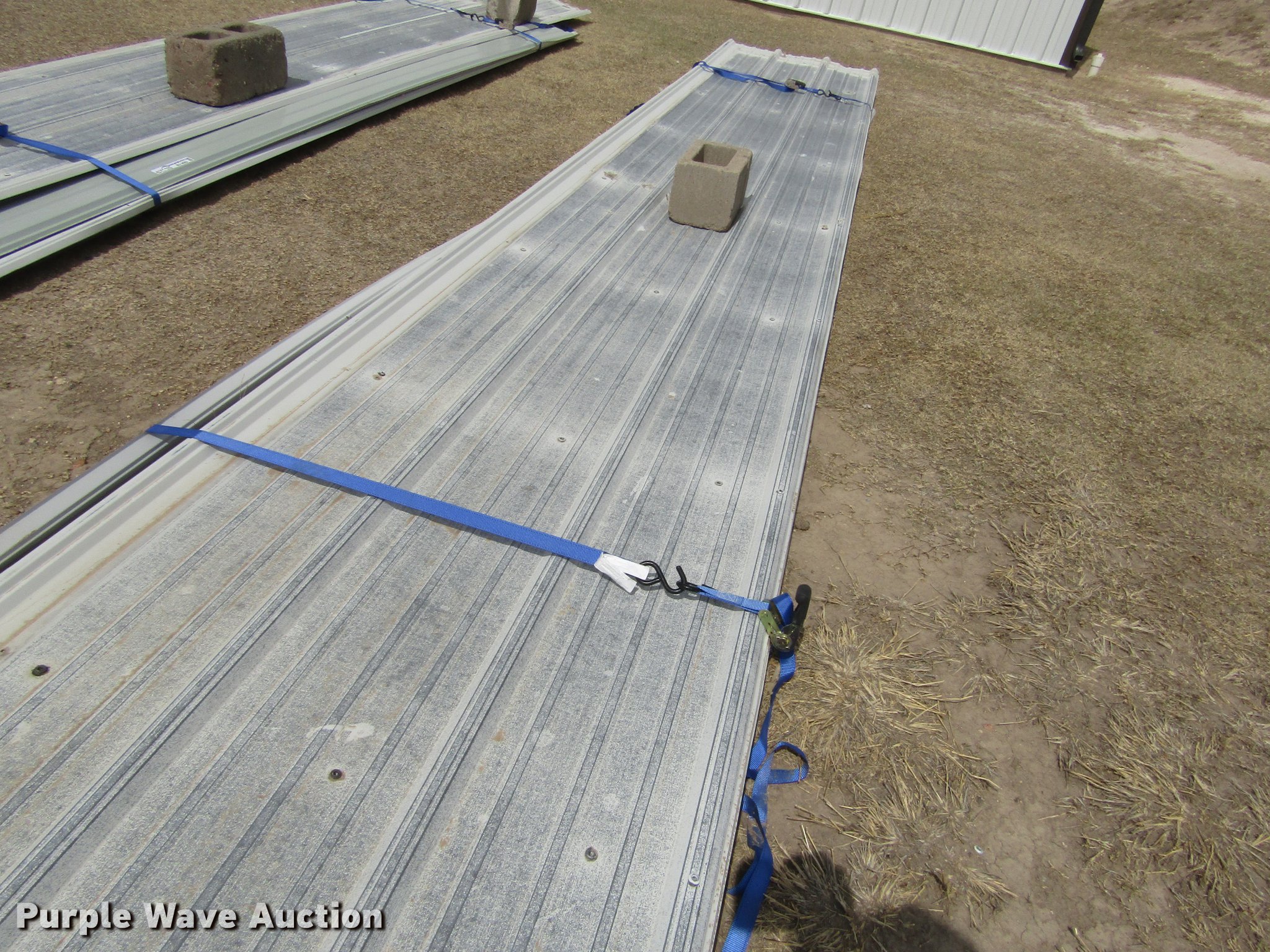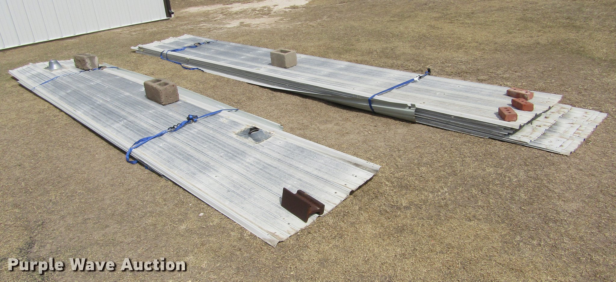 Purple Wave is selling a used Building Materials in Kansas. This item is a Sheets of metal siding/roofing with the following: Approx. 38"W, Approx. 26 sheets, 21'L, Approx. 8 sheets, 14'5"L x