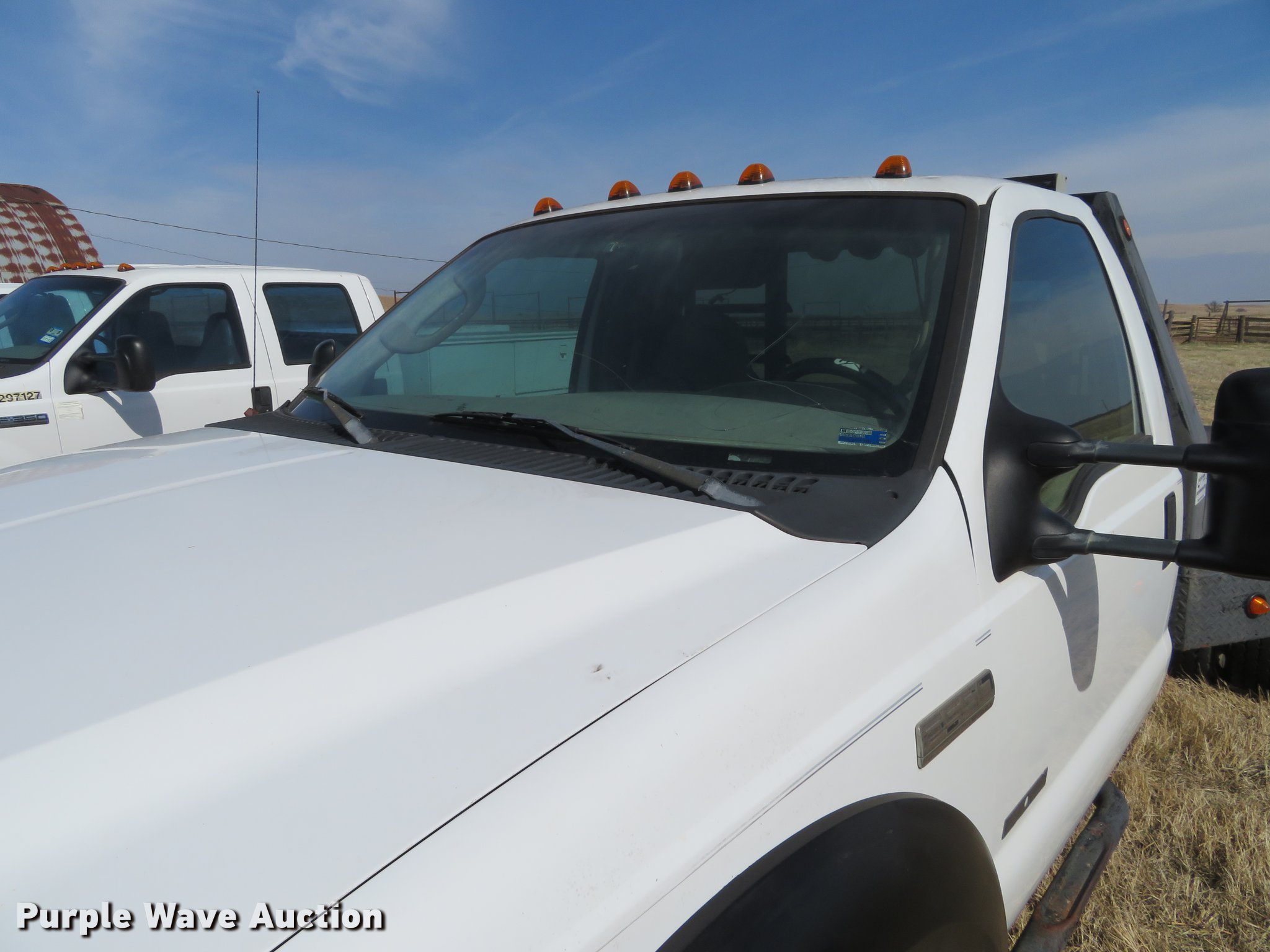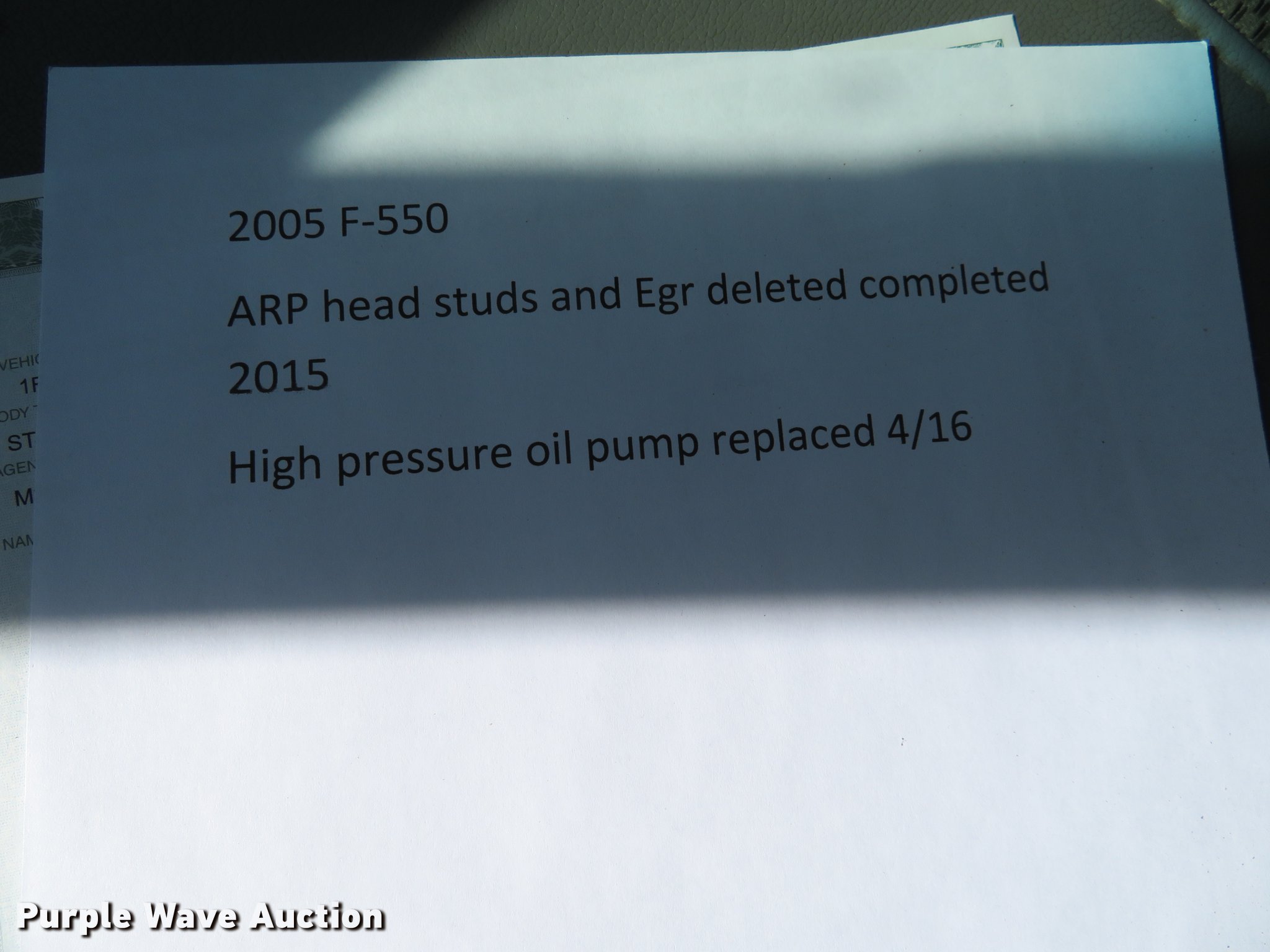 Purple Wave is selling a used Flat Bed Truck in Oklahoma. This item is a 2005 Ford F550 flatbed truck with the following: 245,699 miles on odometer, 6.0L V8 OHV 32V turbo diesel engine, Automatic transmission, Four wheel drive, AC and heat, Cloth interior, Bradford Built flatbed, 225/70R19.5 tires, EGR delete