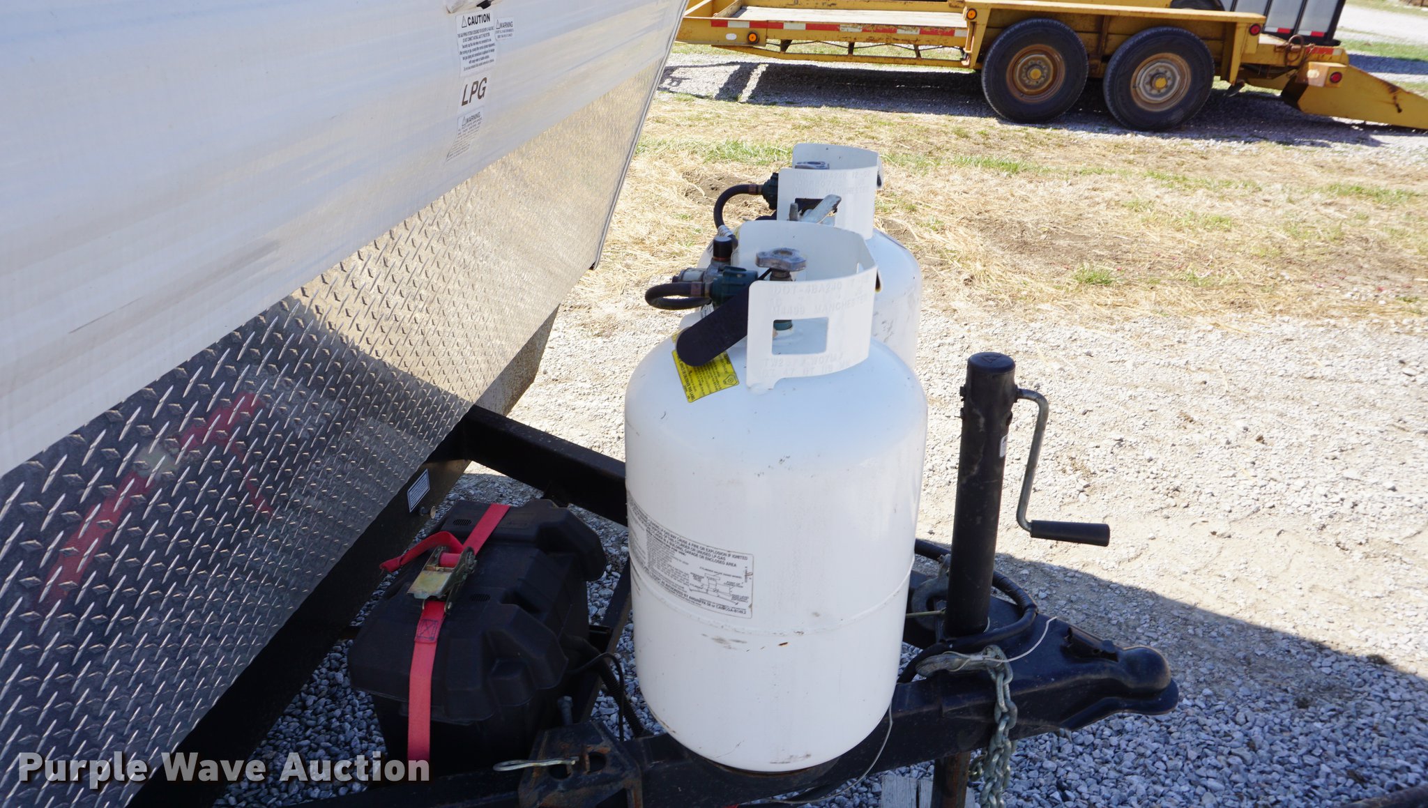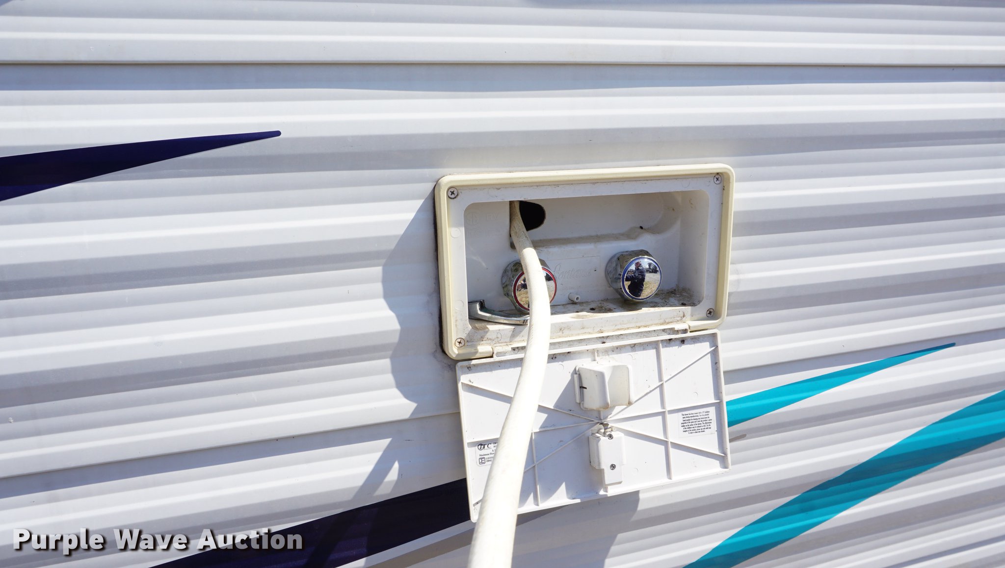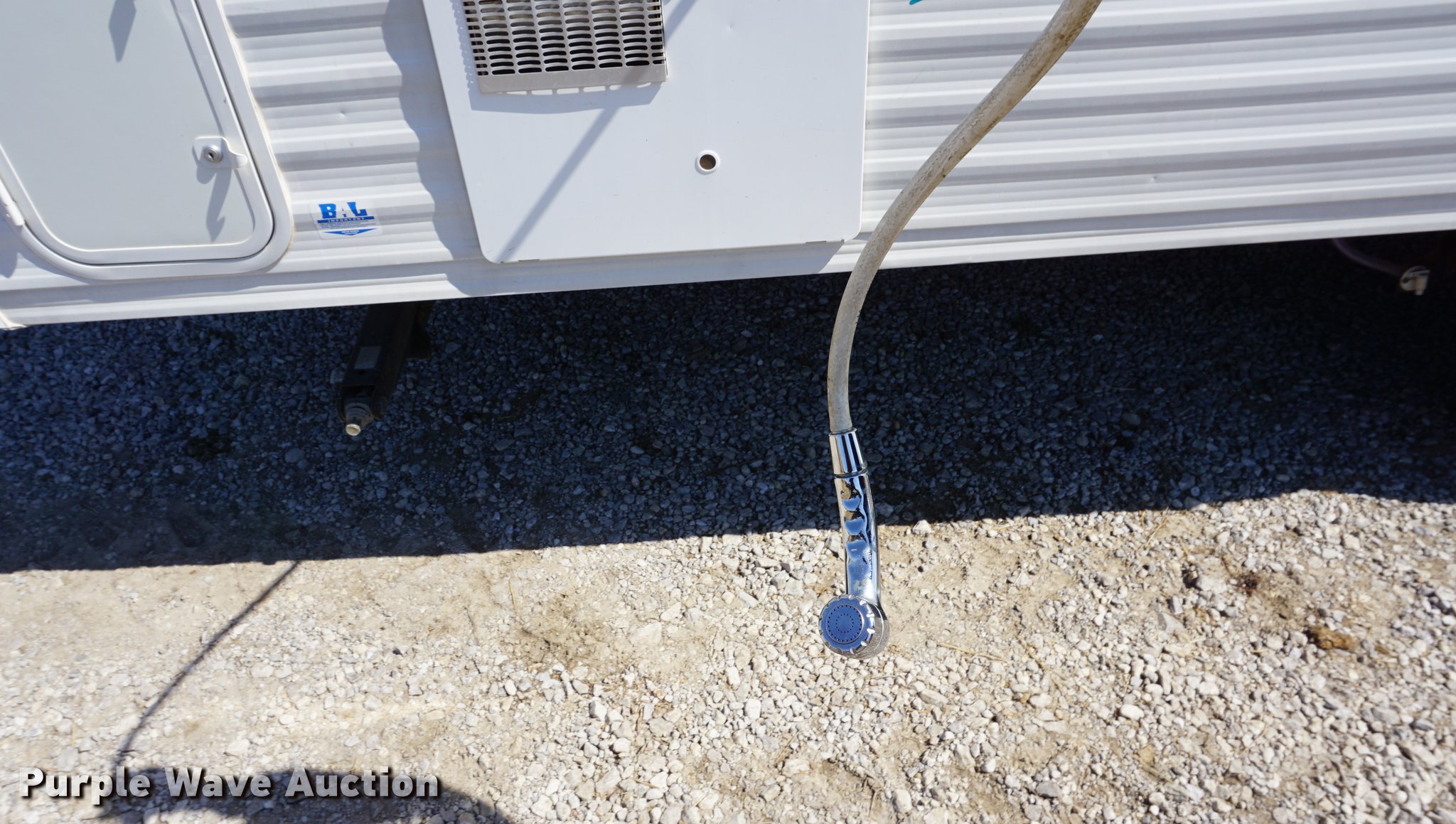 Purple Wave is selling a used RV in Kansas. This item is a 2003 National RV Splash camper with the following: 18'L, Awning, Four person sleeping capacity, Microwave, Three burner range/oven, Refrigerator/freezer, Shower, Toilet, AC and heat, AM/FM/CD, (2) propane tanks, Exterior shower, Handle broken, 2 5/16" ball hitch, Equalizer attachment, Tandem axle, 205/75R14 tires