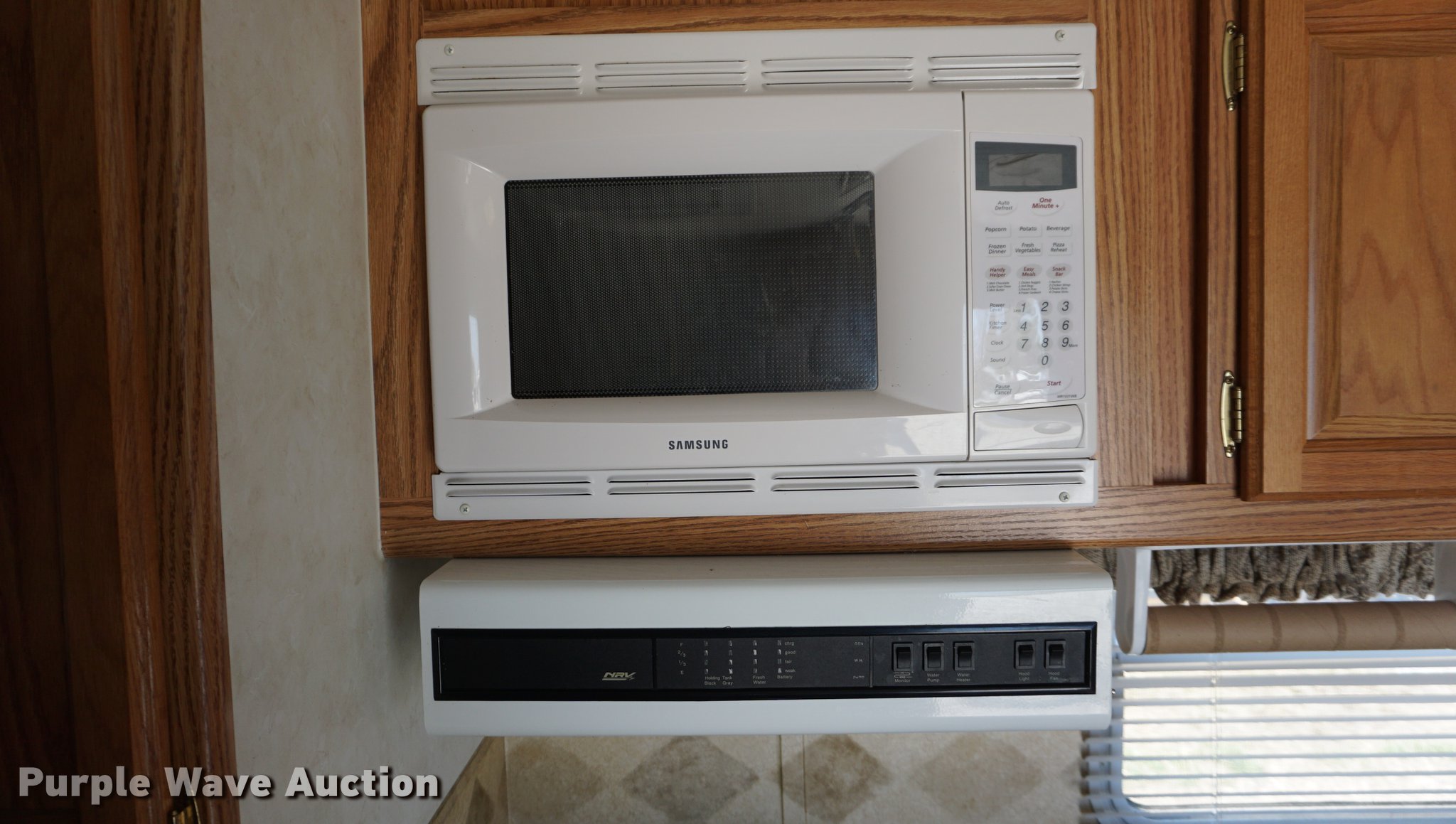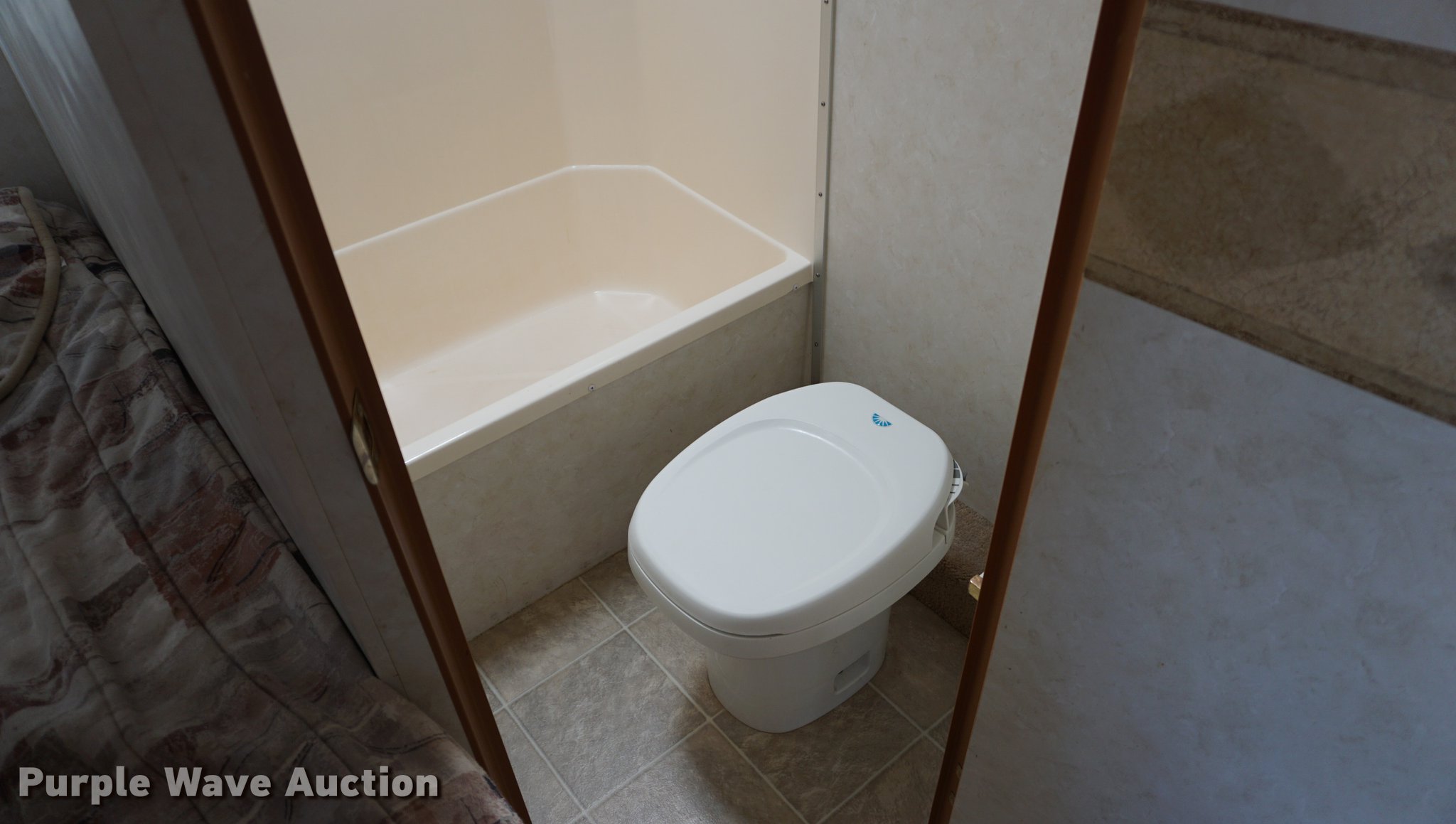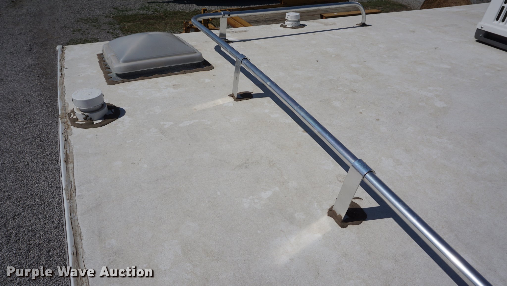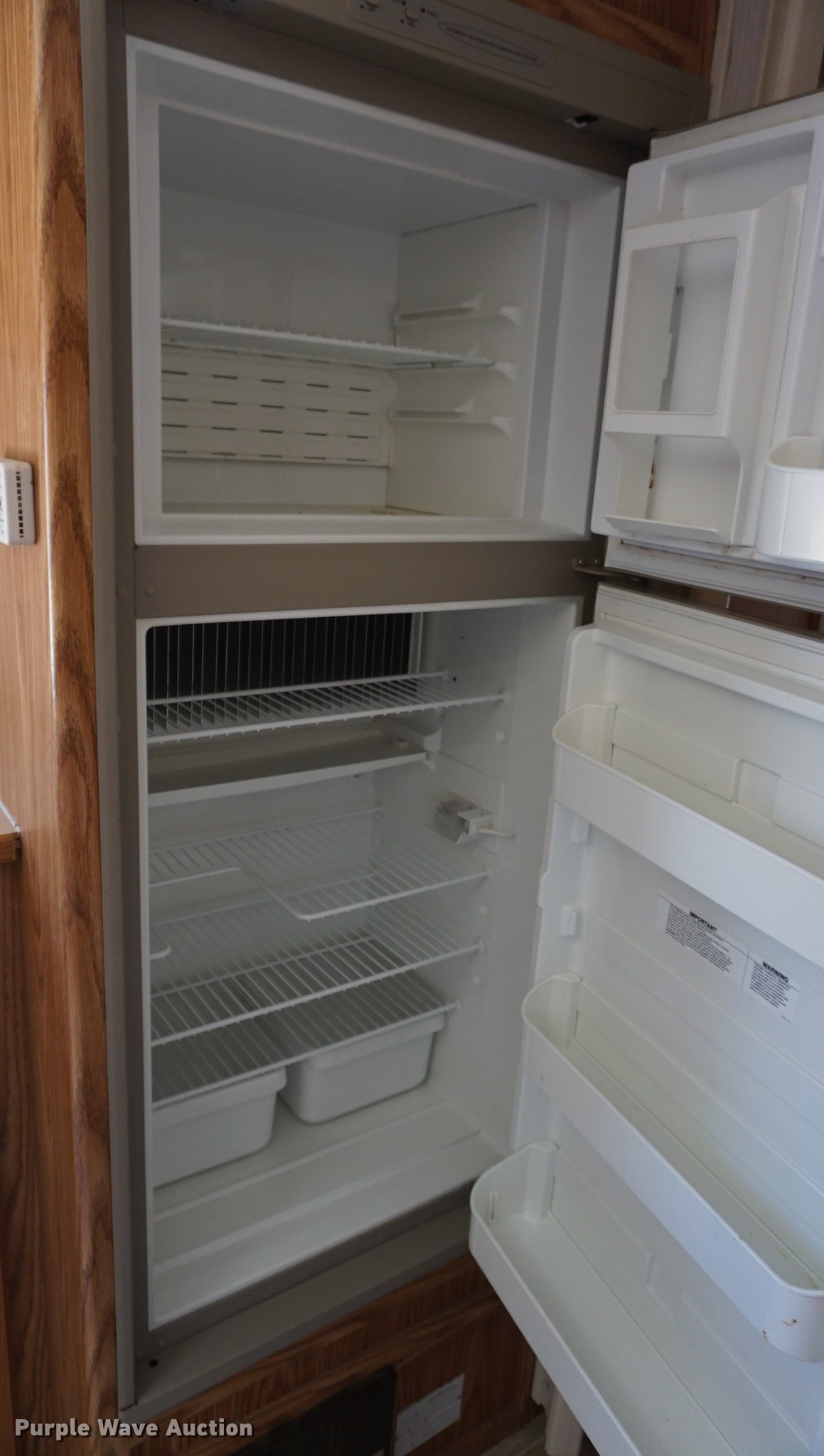 Purple Wave is selling a used RV in Kansas. This item is a 2003 National RV Splash camper with the following: 18'L, Awning, Four person sleeping capacity, Microwave, Three burner range/oven, Refrigerator/freezer, Shower, Toilet, AC and heat, AM/FM/CD, (2) propane tanks, Exterior shower, Handle broken, 2 5/16" ball hitch, Equalizer attachment, Tandem axle, 205/75R14 tires