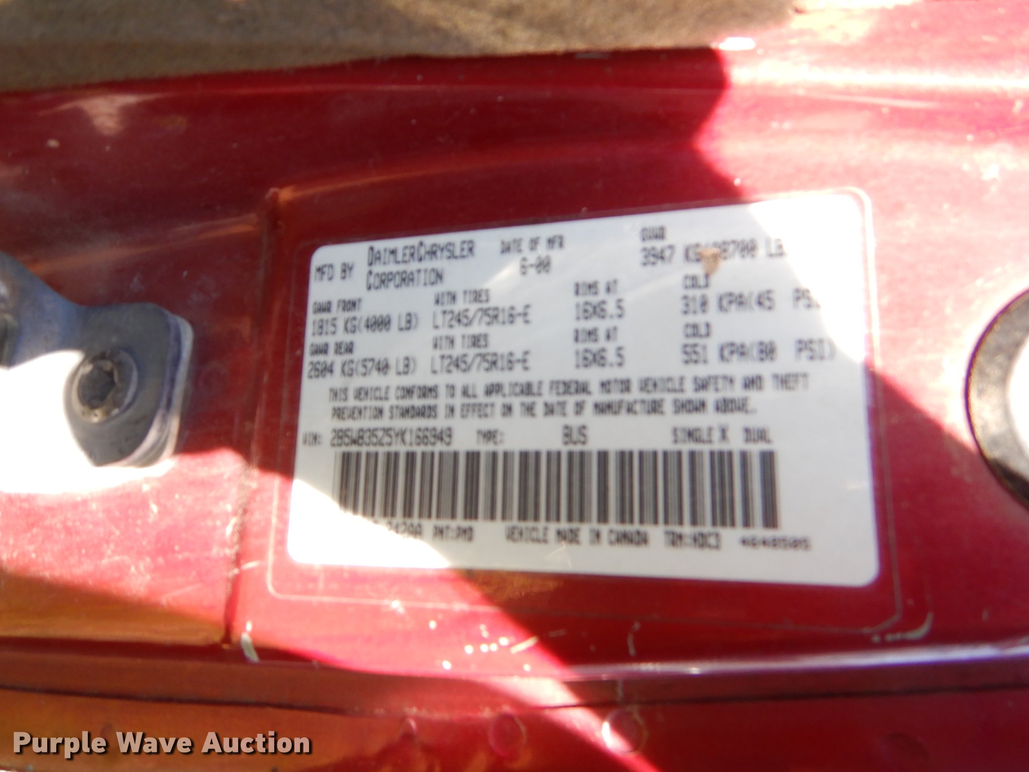 Purple Wave is selling a used 3/4 or 1 Ton Pickup or Van in Oklahoma. This item is a 2000 Dodge Ram Wagon B3500 Maxi van with the following: Unknown miles on odometer, 5.9L V8 OHV 16V gas engine, Automatic transmission, AC and ehat, Tilt, Crise, AM/FM, Manual windows and locks, Vinyl interior, 245/75R16 tires, Unknown operating condition, No key